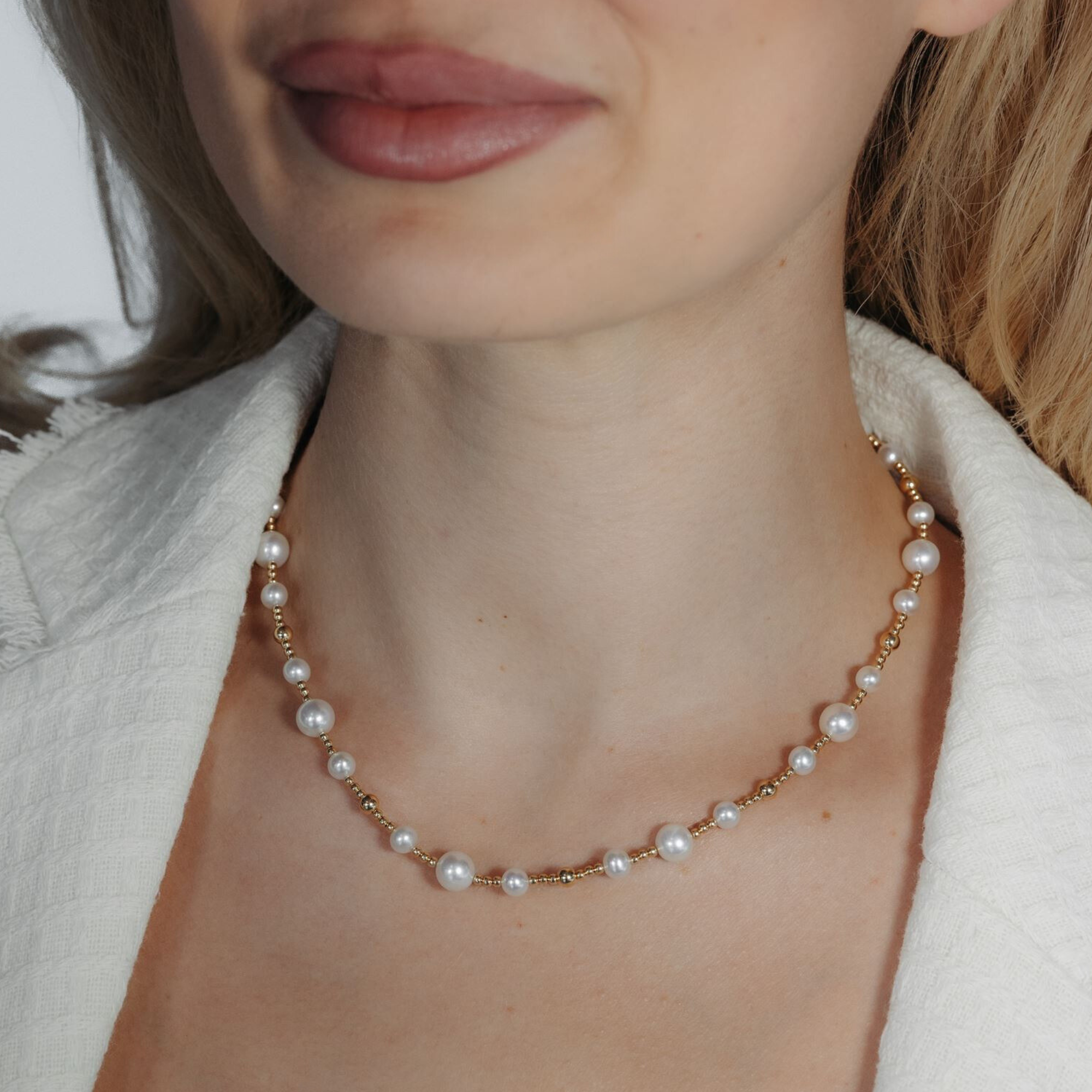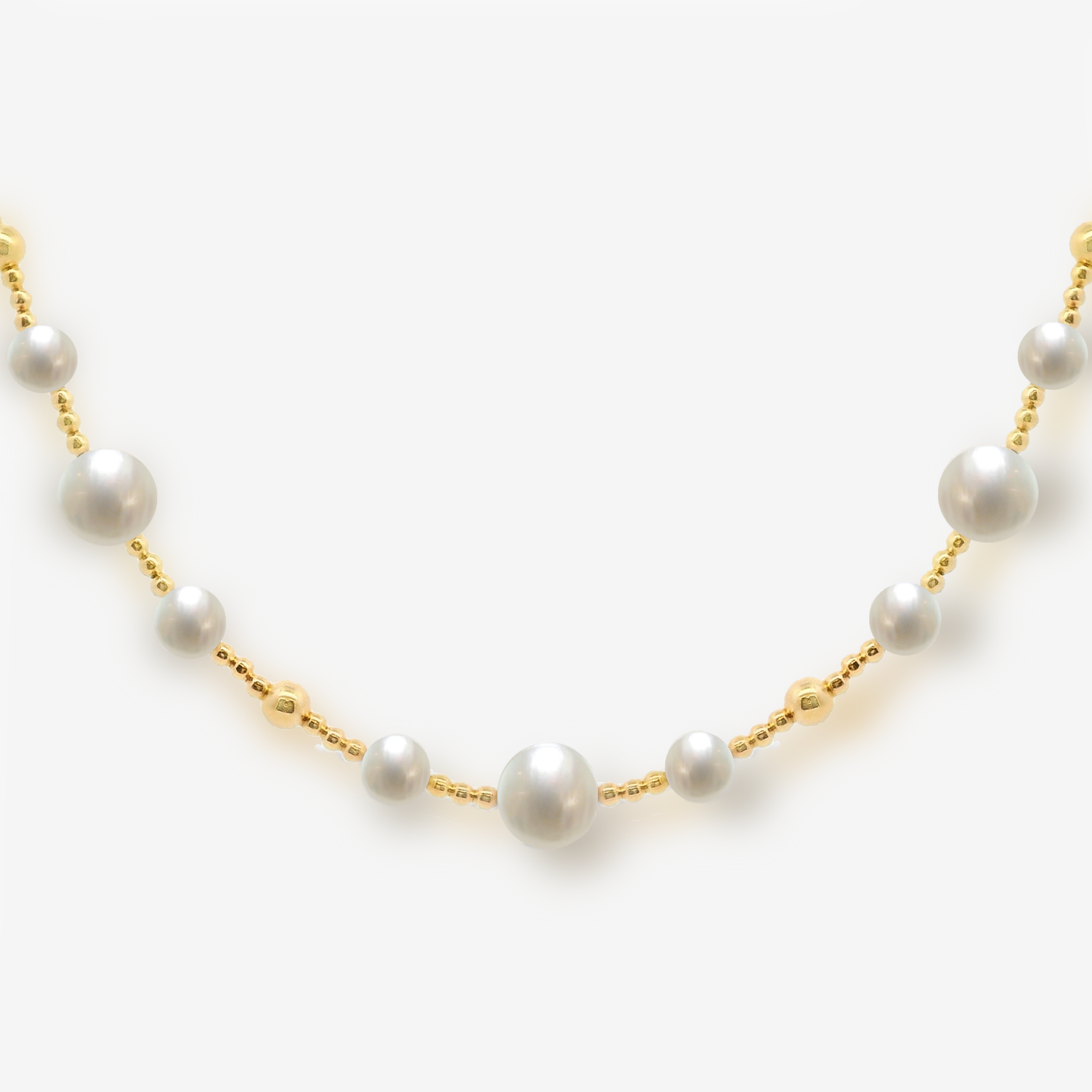 Bead It Multi-Size Pearl and Gold Bead Necklace