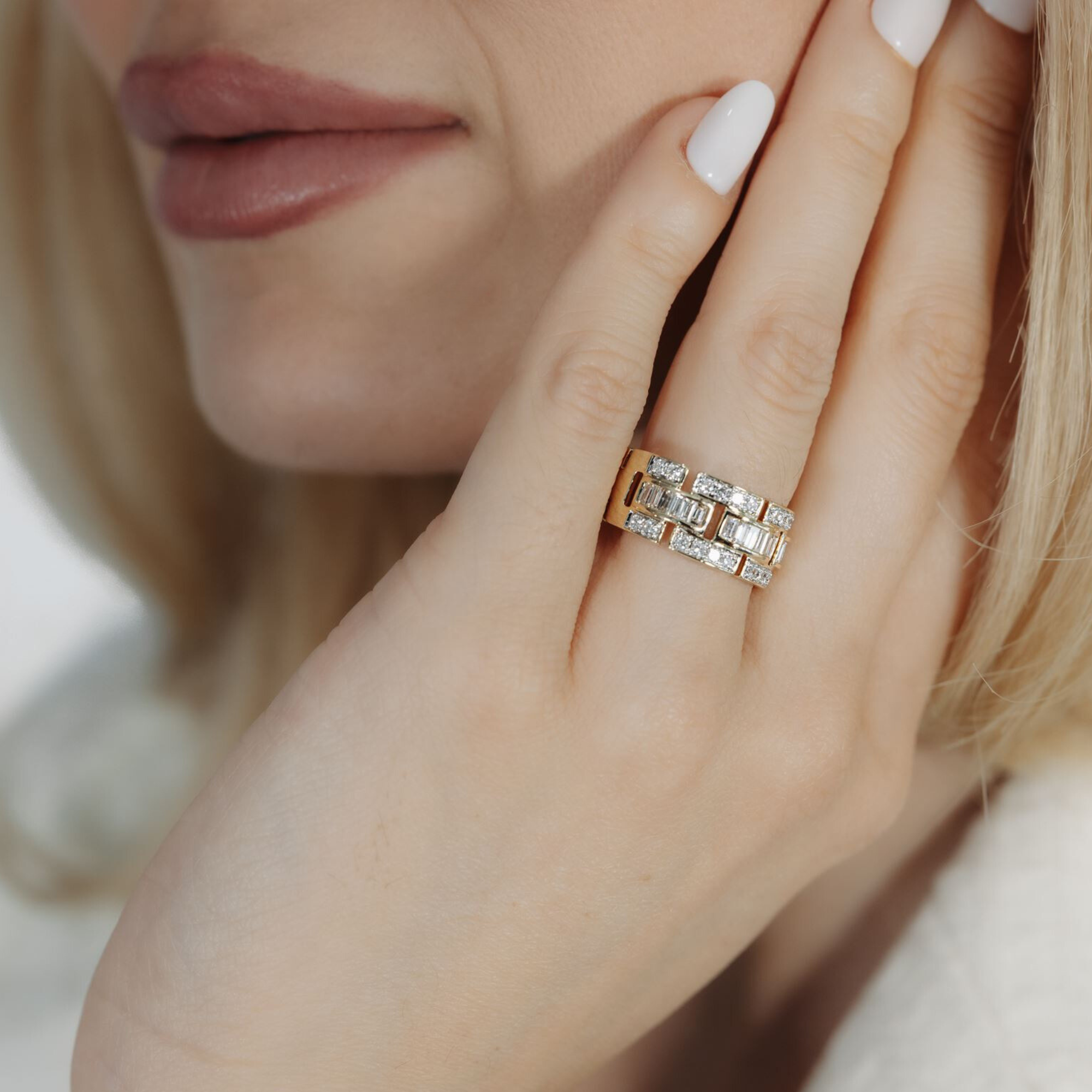 Brick Pattern Baguette & Round Diamond Ring