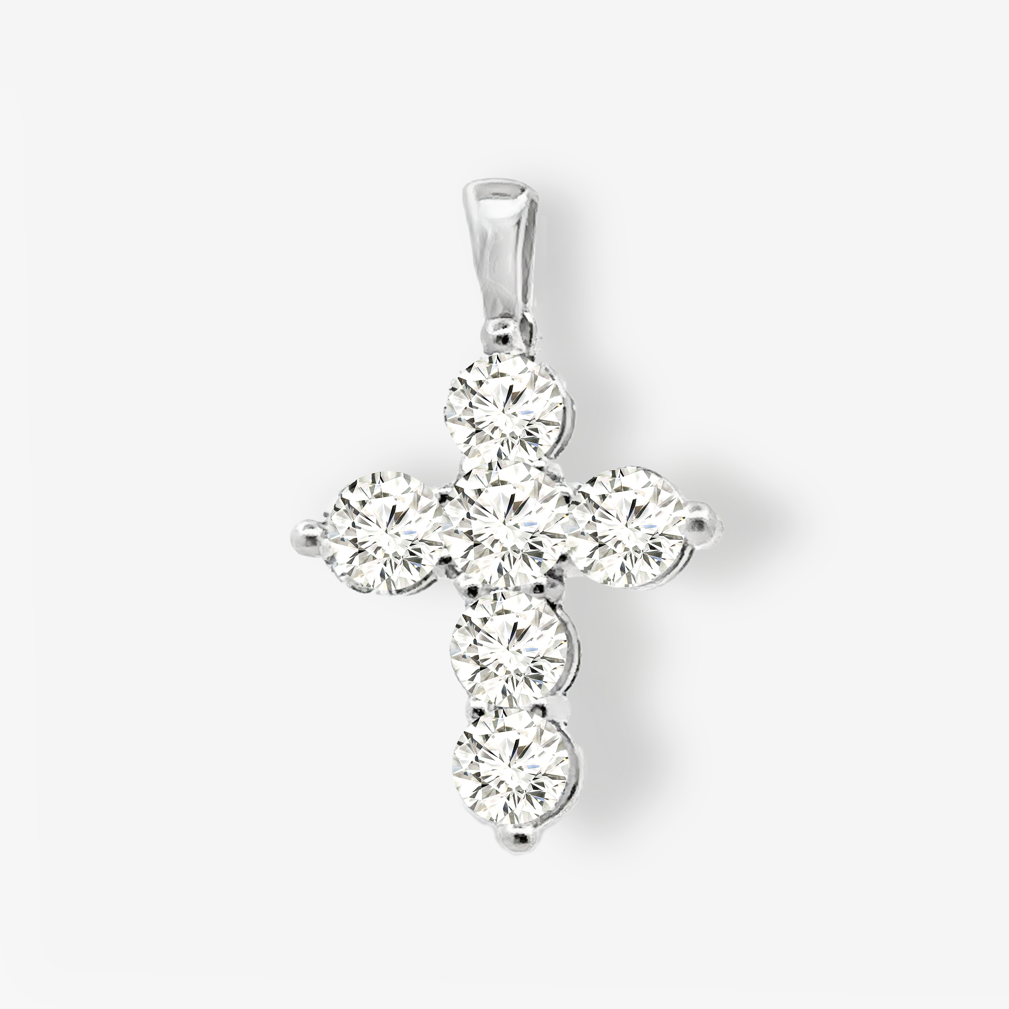 Classic Shared Prong 1.35CT Diamond Cross Pendant