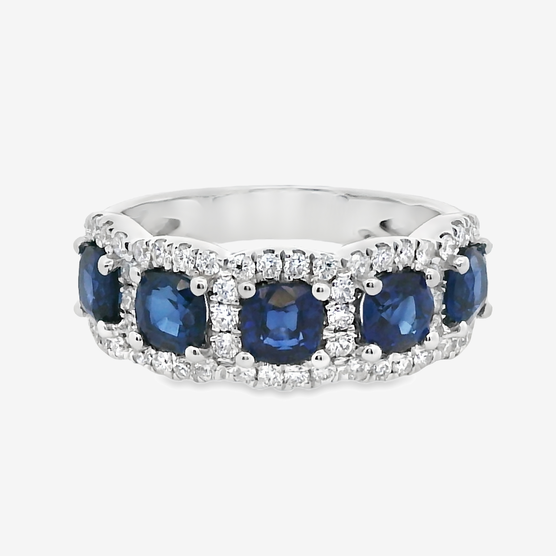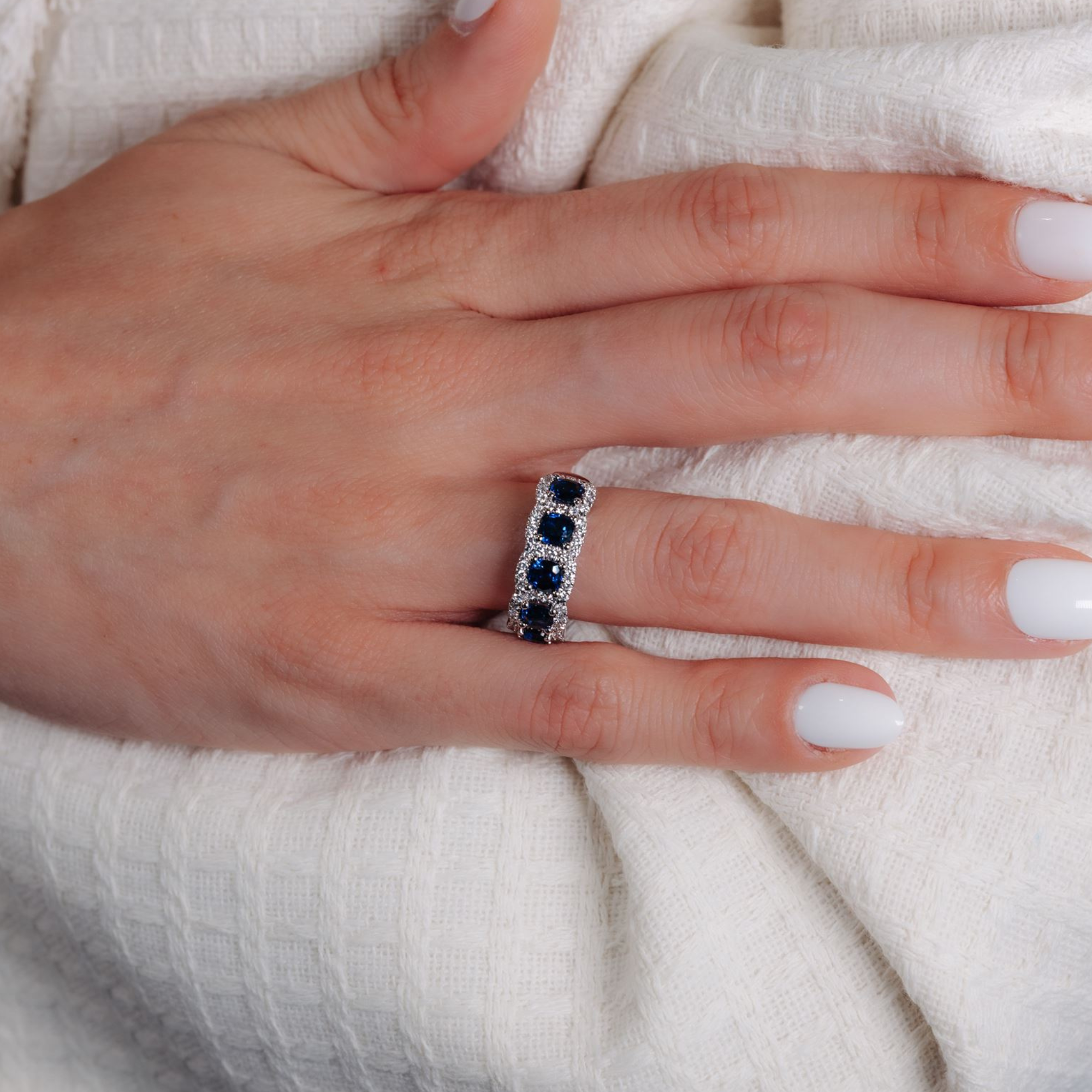 Cushion Cut Blue Sapphire & Diamond Medium Ring