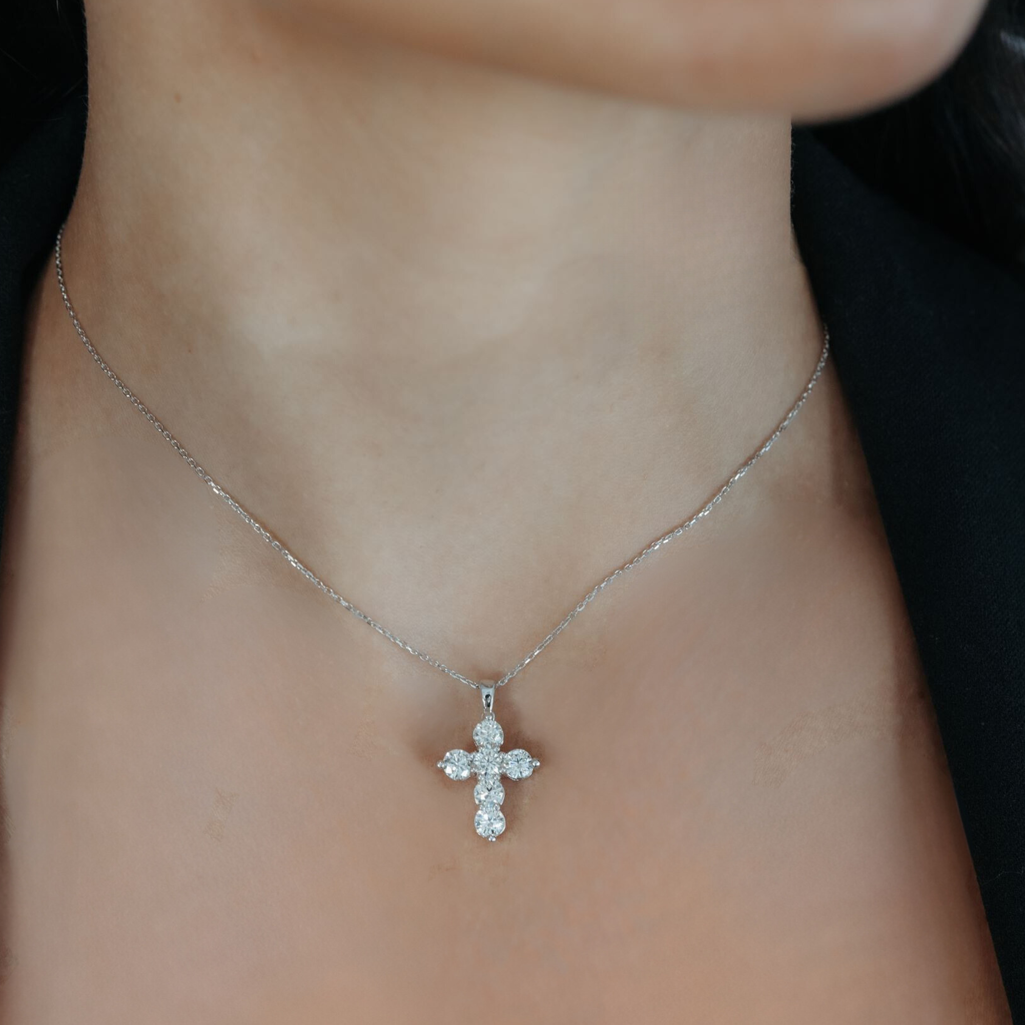 Classic Shared Prong 1.40ct Diamond Cross Necklace