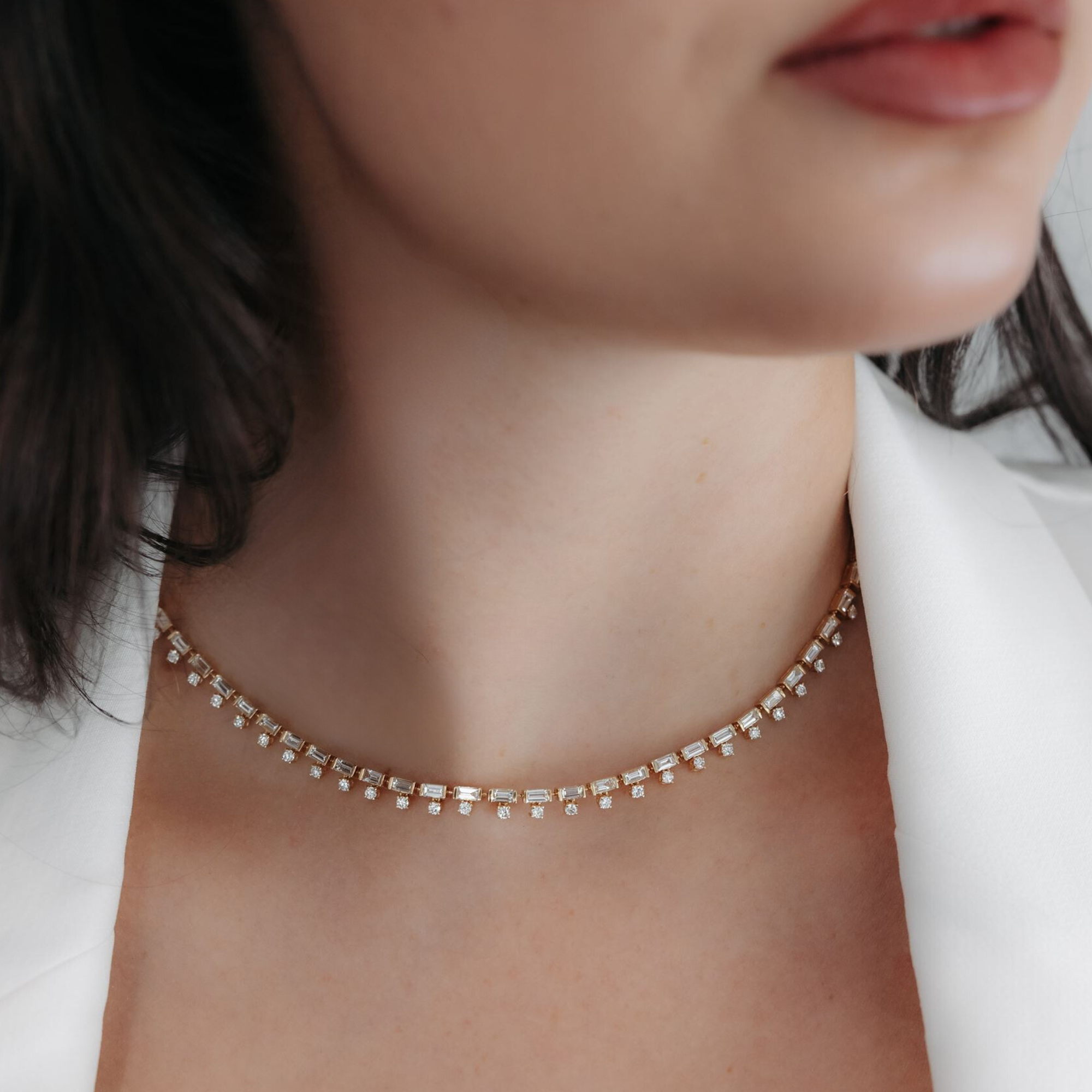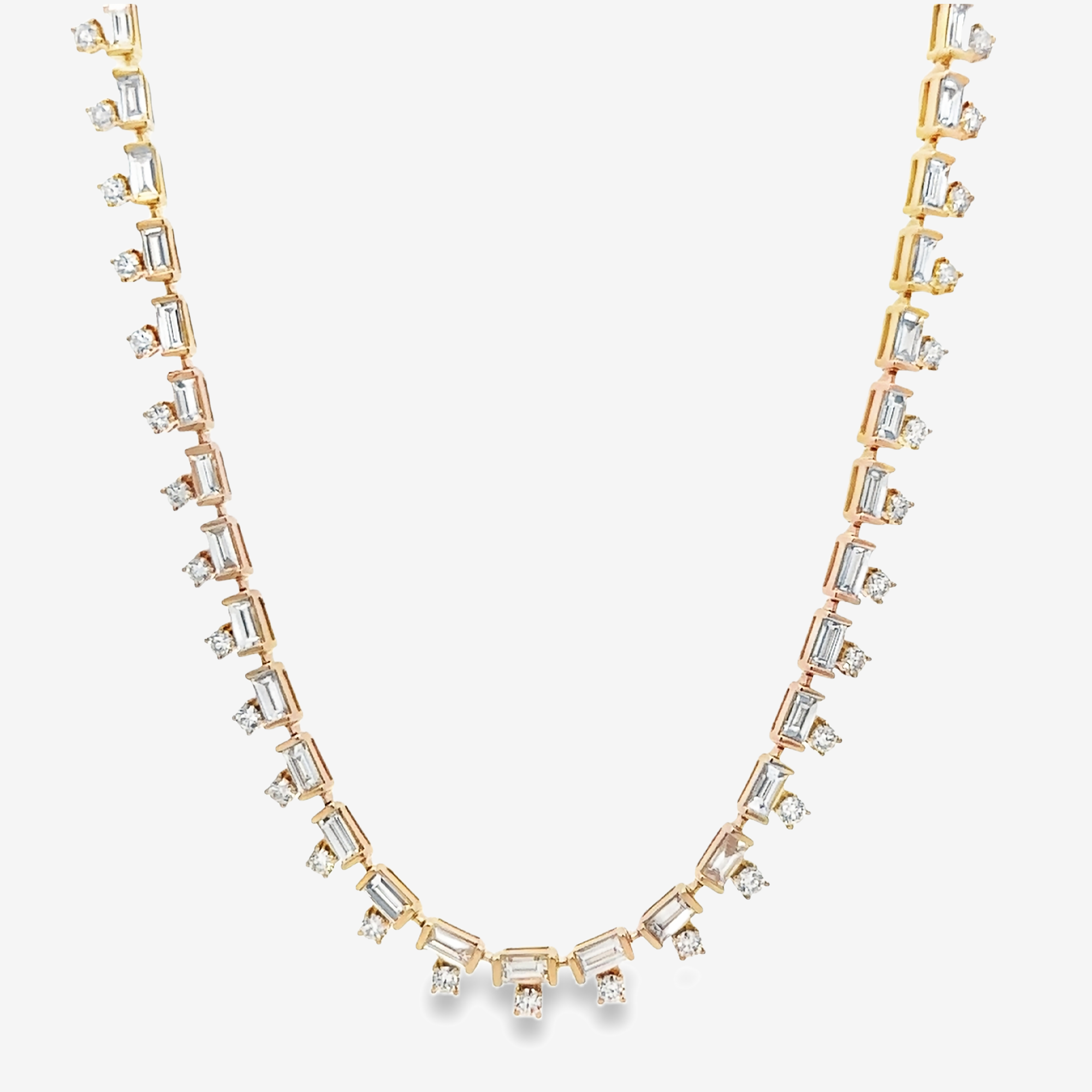 East West 0.40tw Baguette Cut Diamond Halo Necklace
