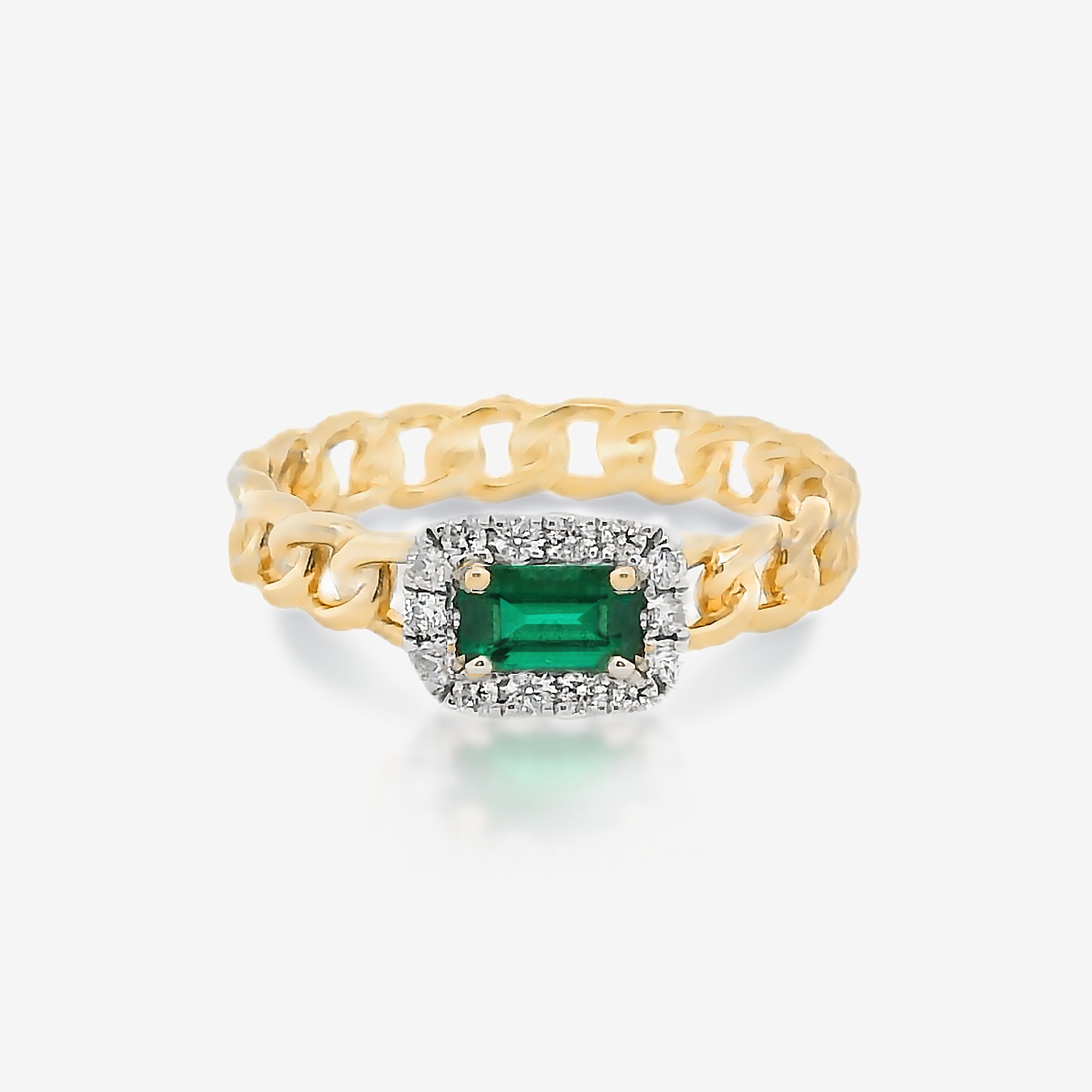 Emerald & Diamond Halo Flex Bangle Bracelet