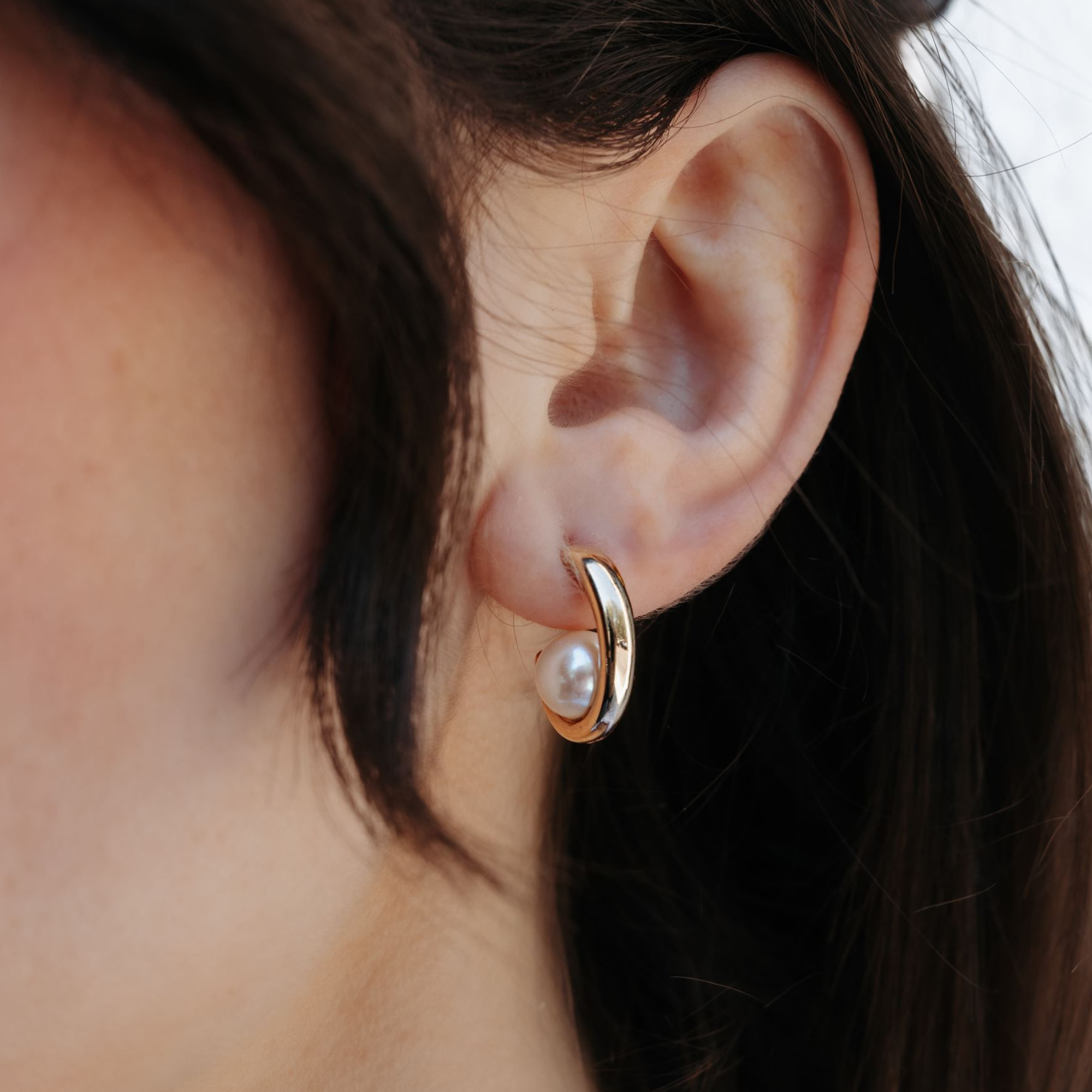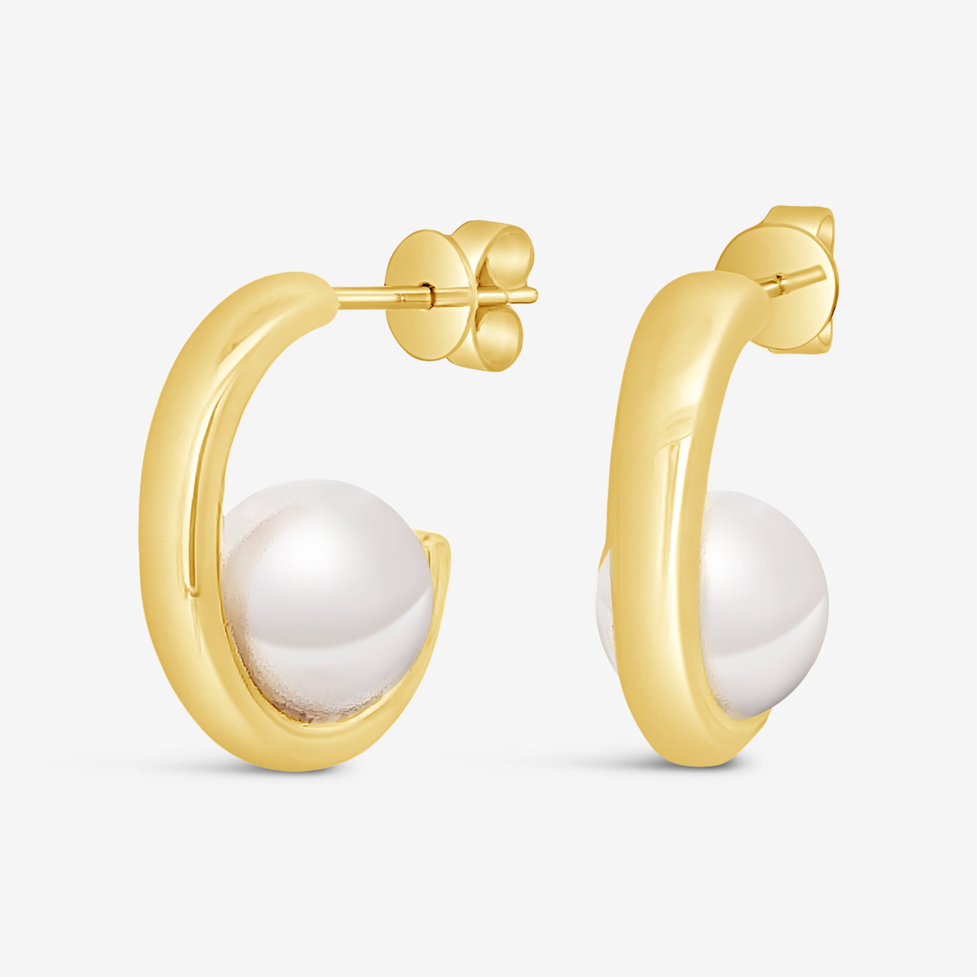 Floating Pearl Huggie Earrings