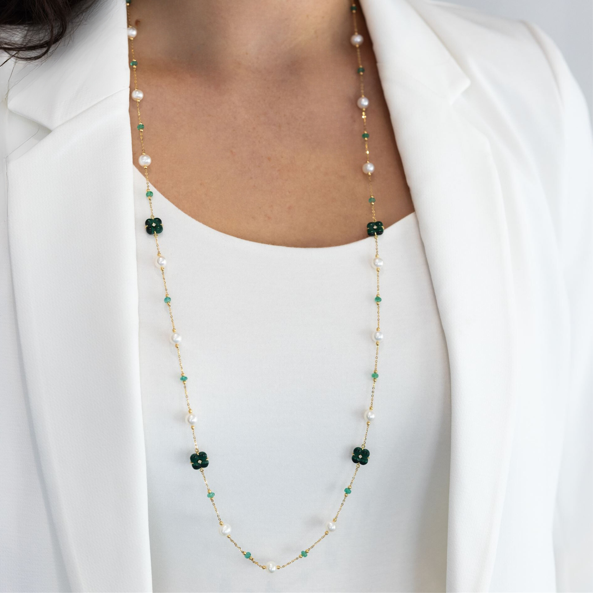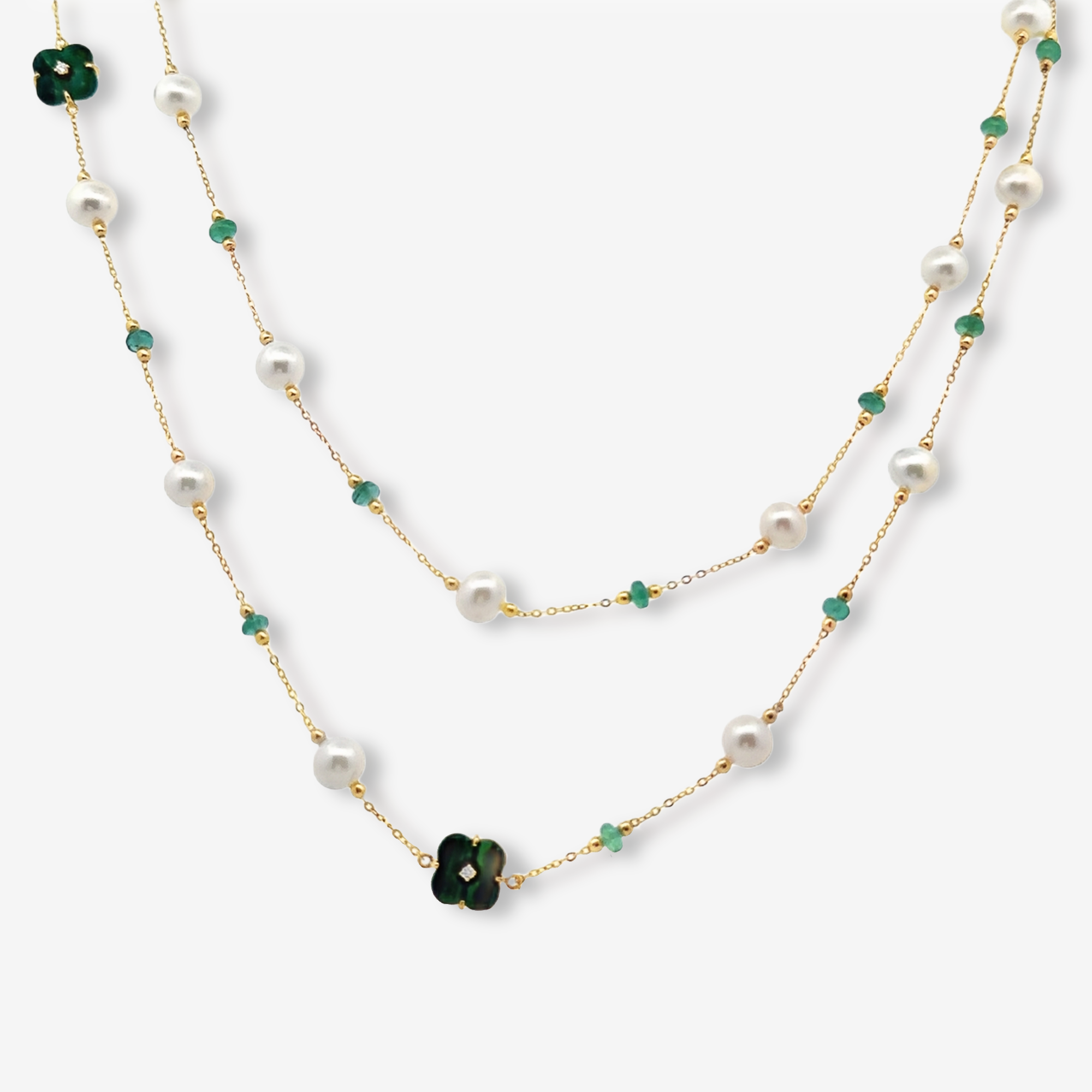 Floral Malachite & Pearl Station Necklace