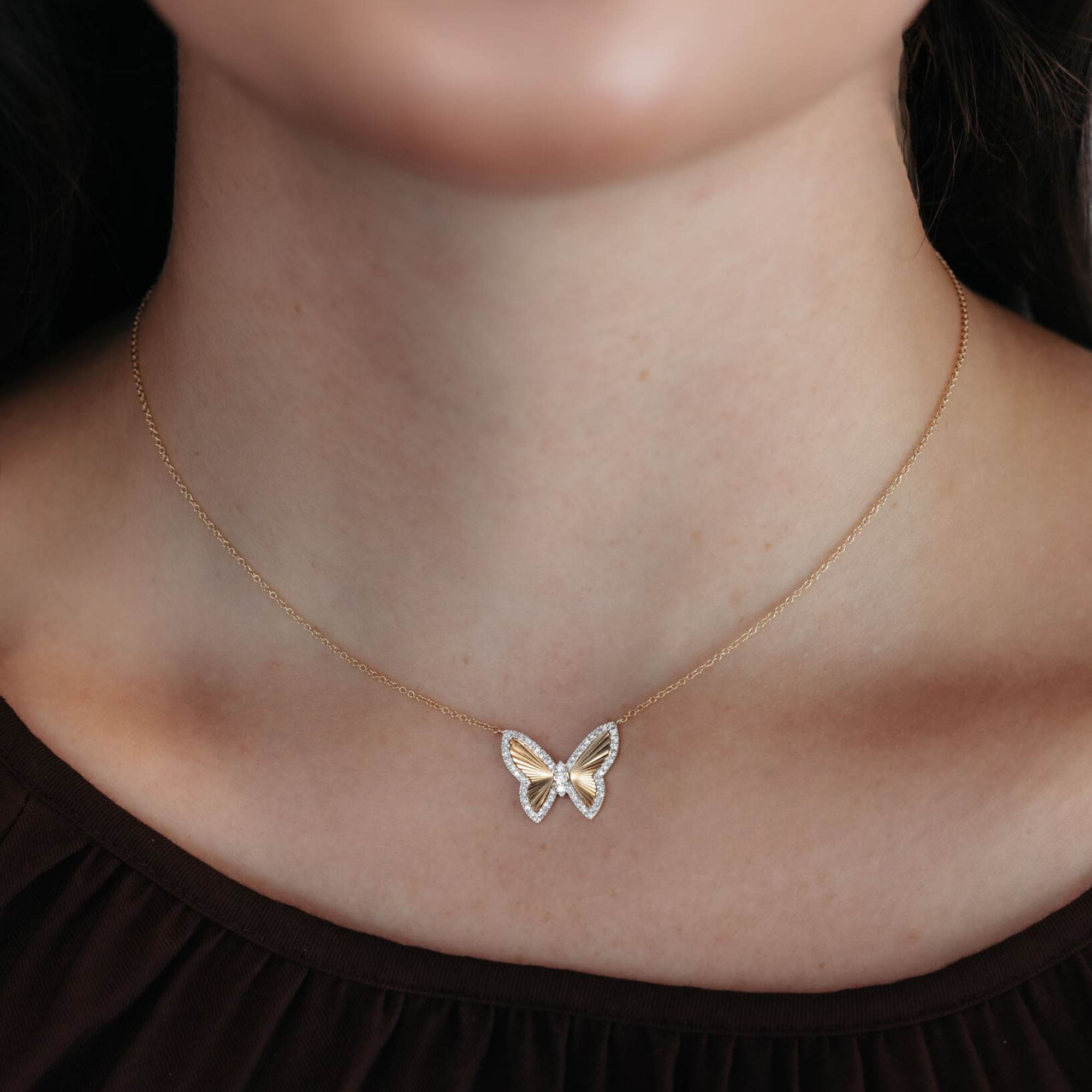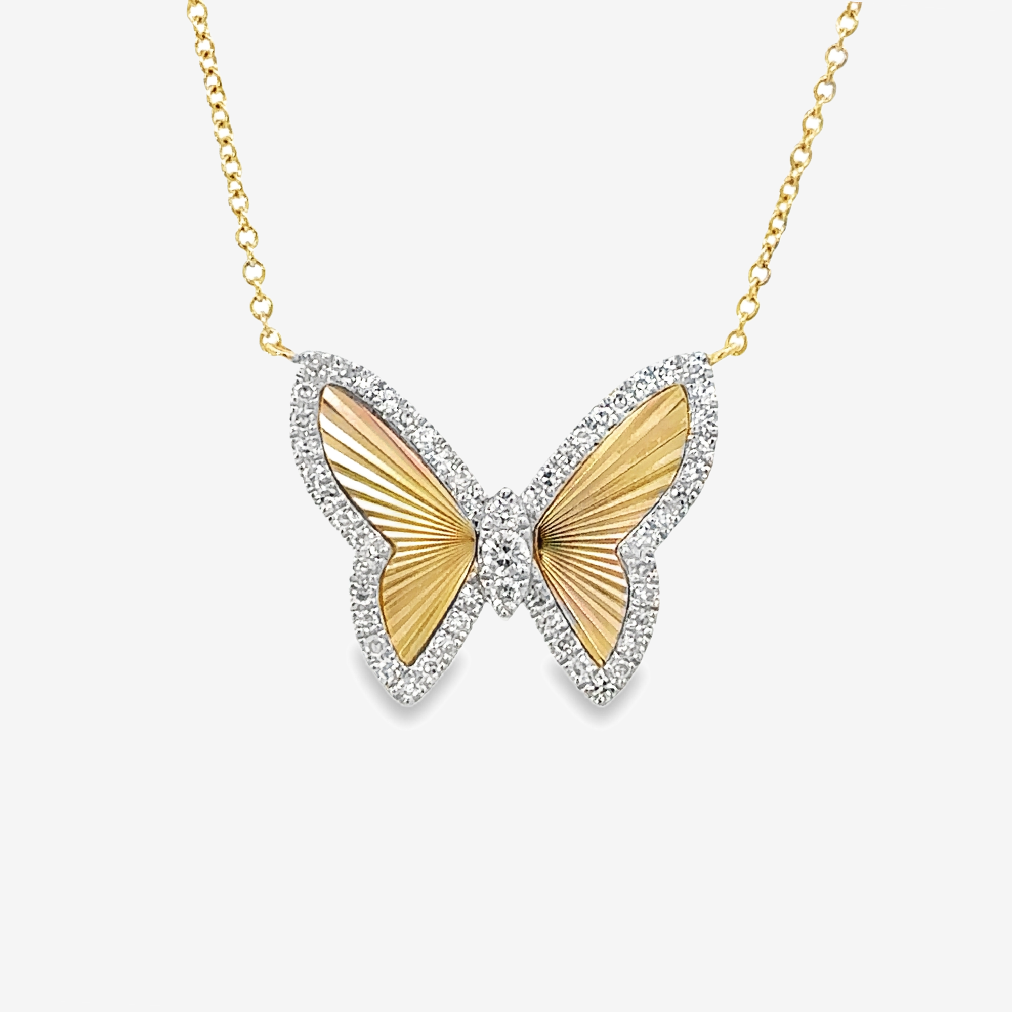 Fluted Diamond Butterfly Necklace