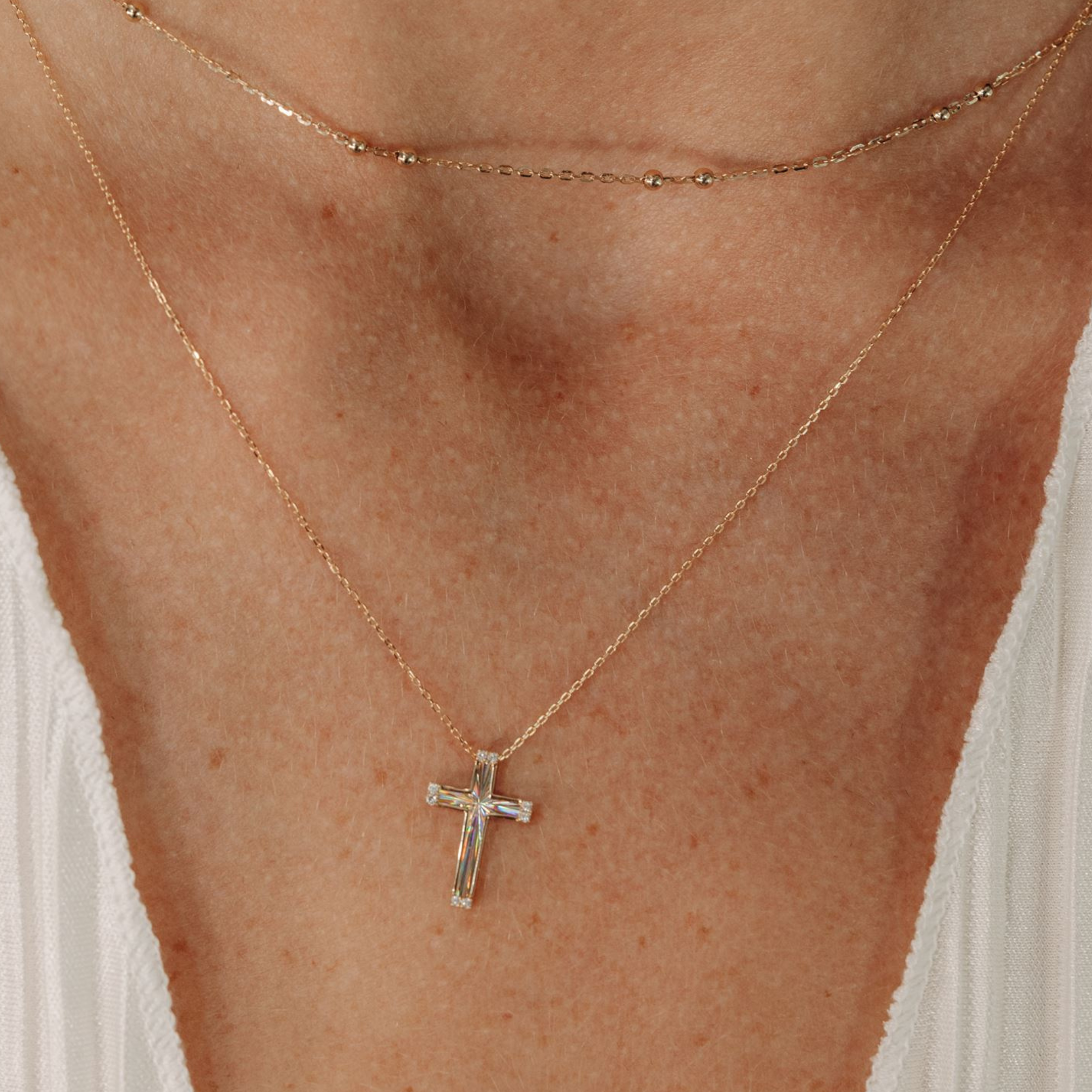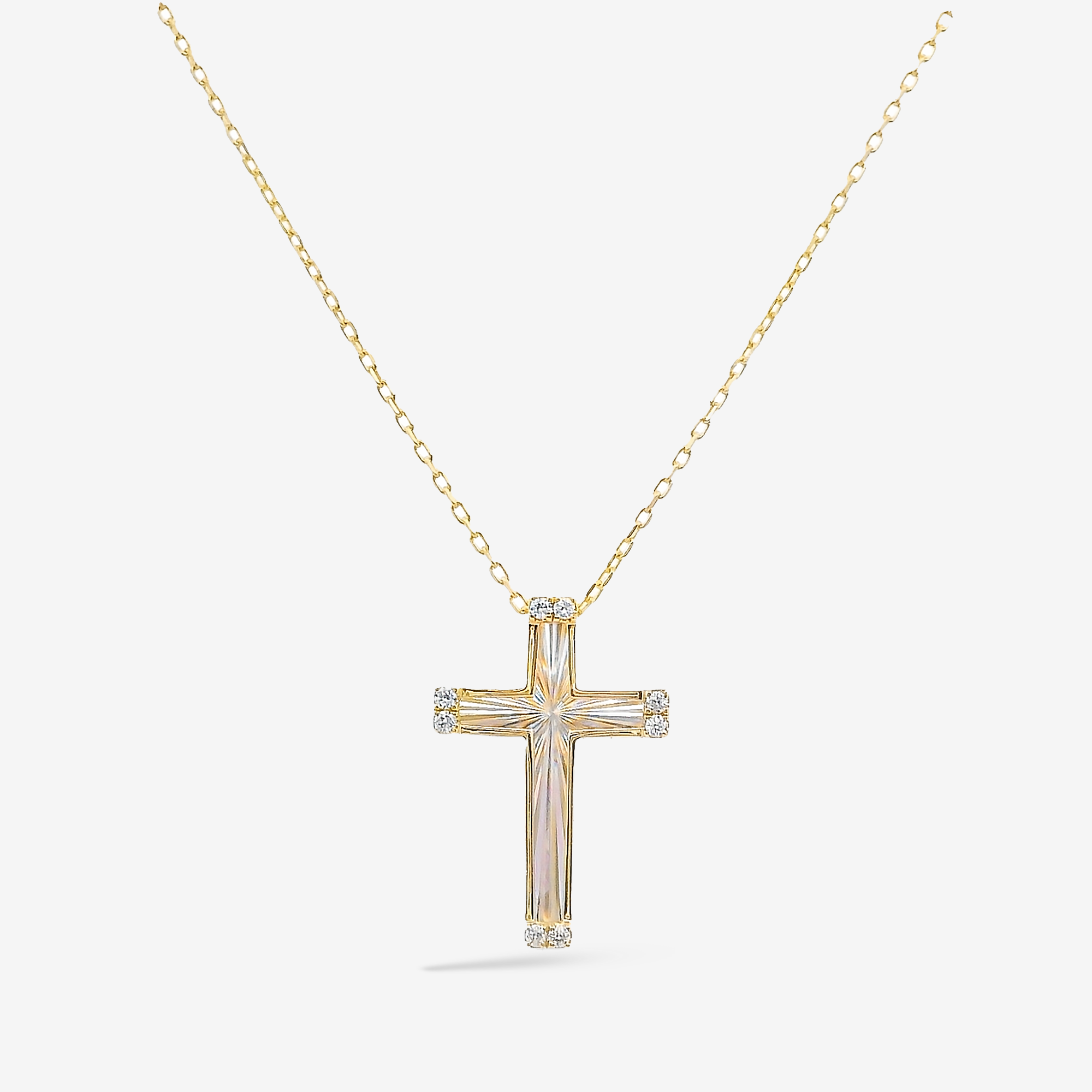 Fluted Diamond Cross Necklace