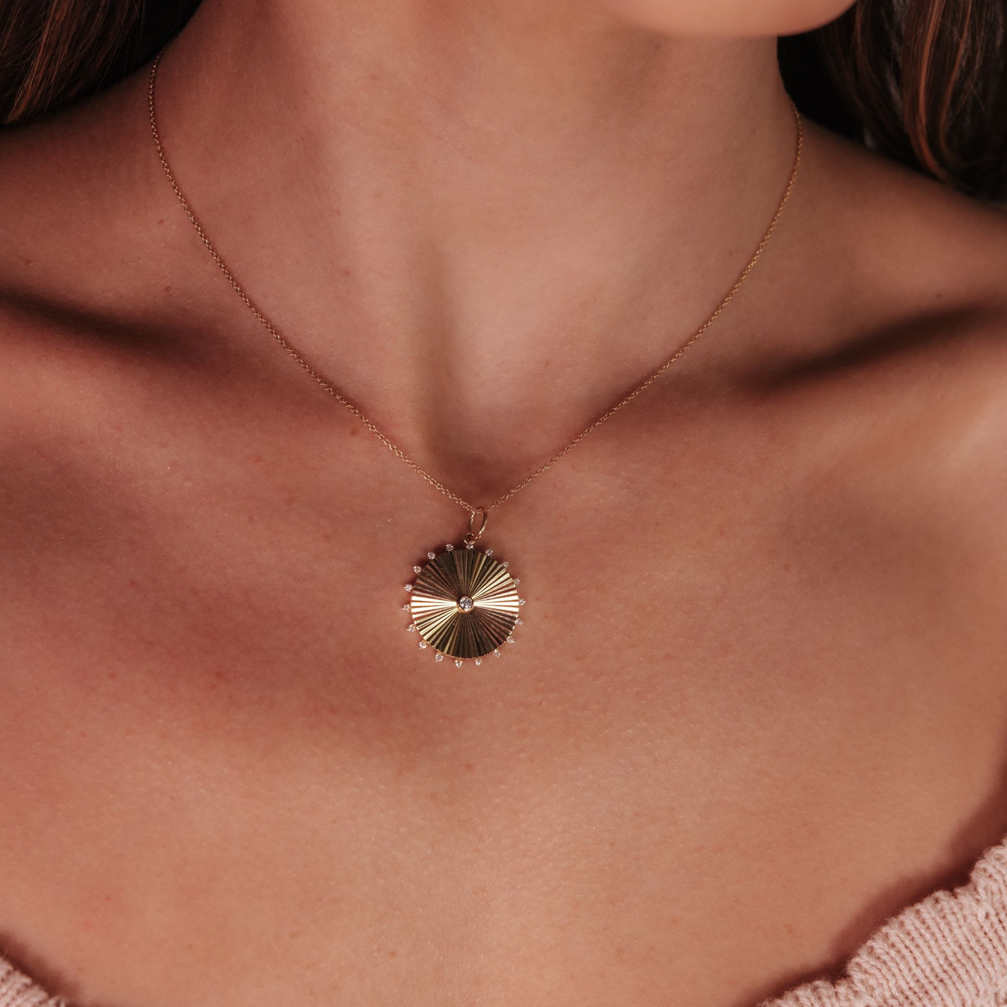 Fluted Bezel Diamond Disc Pendant