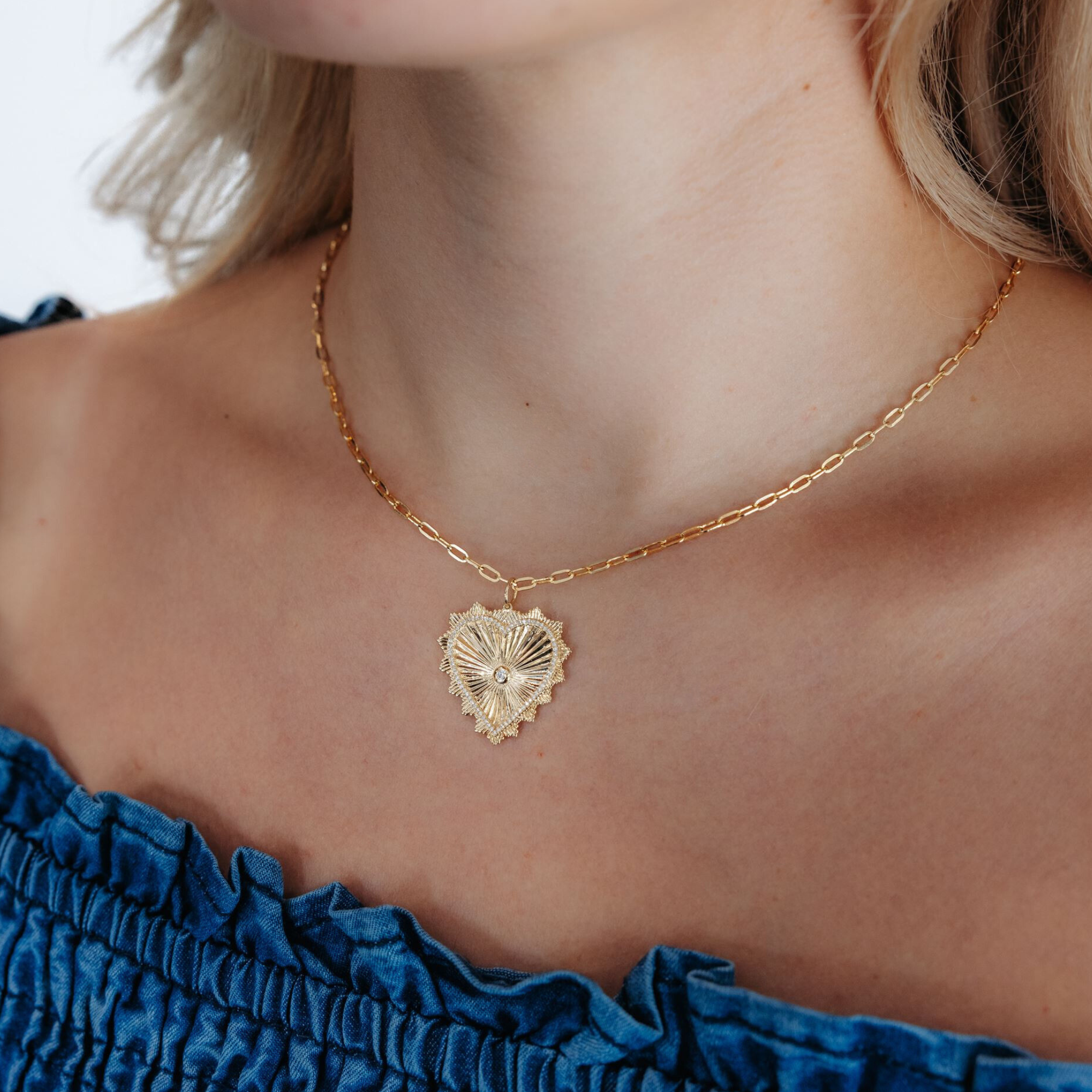 Fluted Diamond Heart Necklace