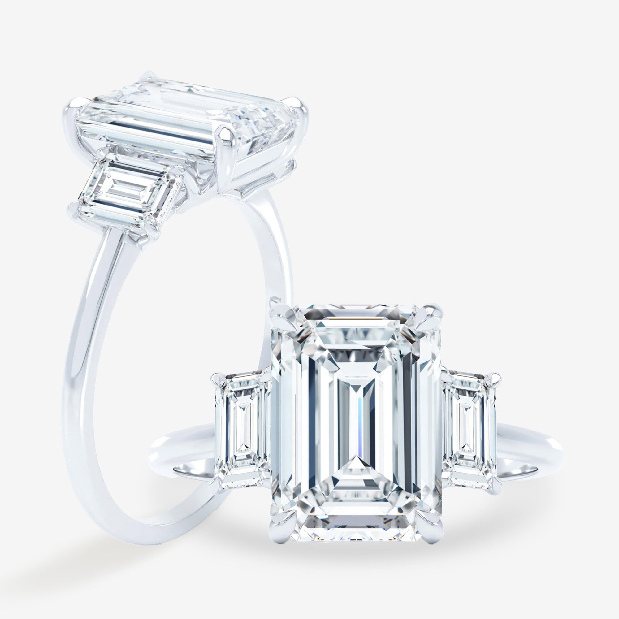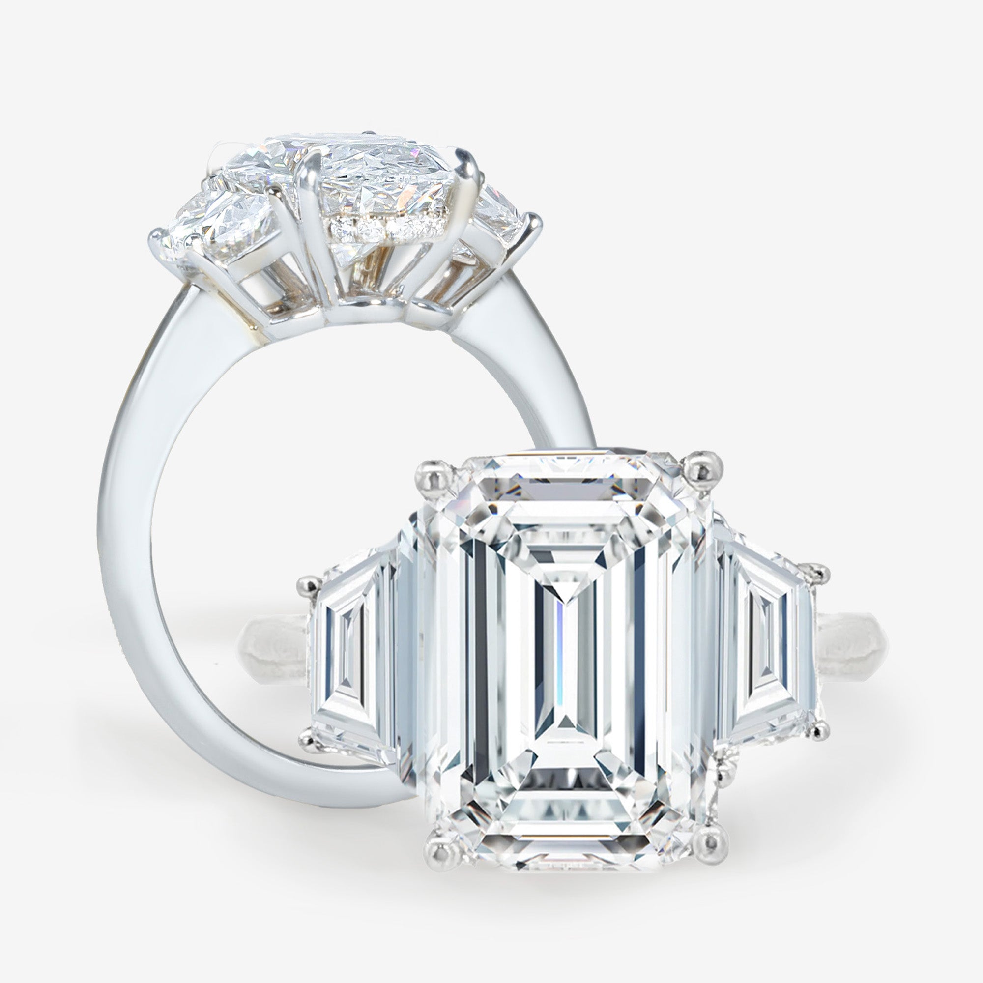 Iconic 3 Stone - Trapezoid Sides - Emerald Cut