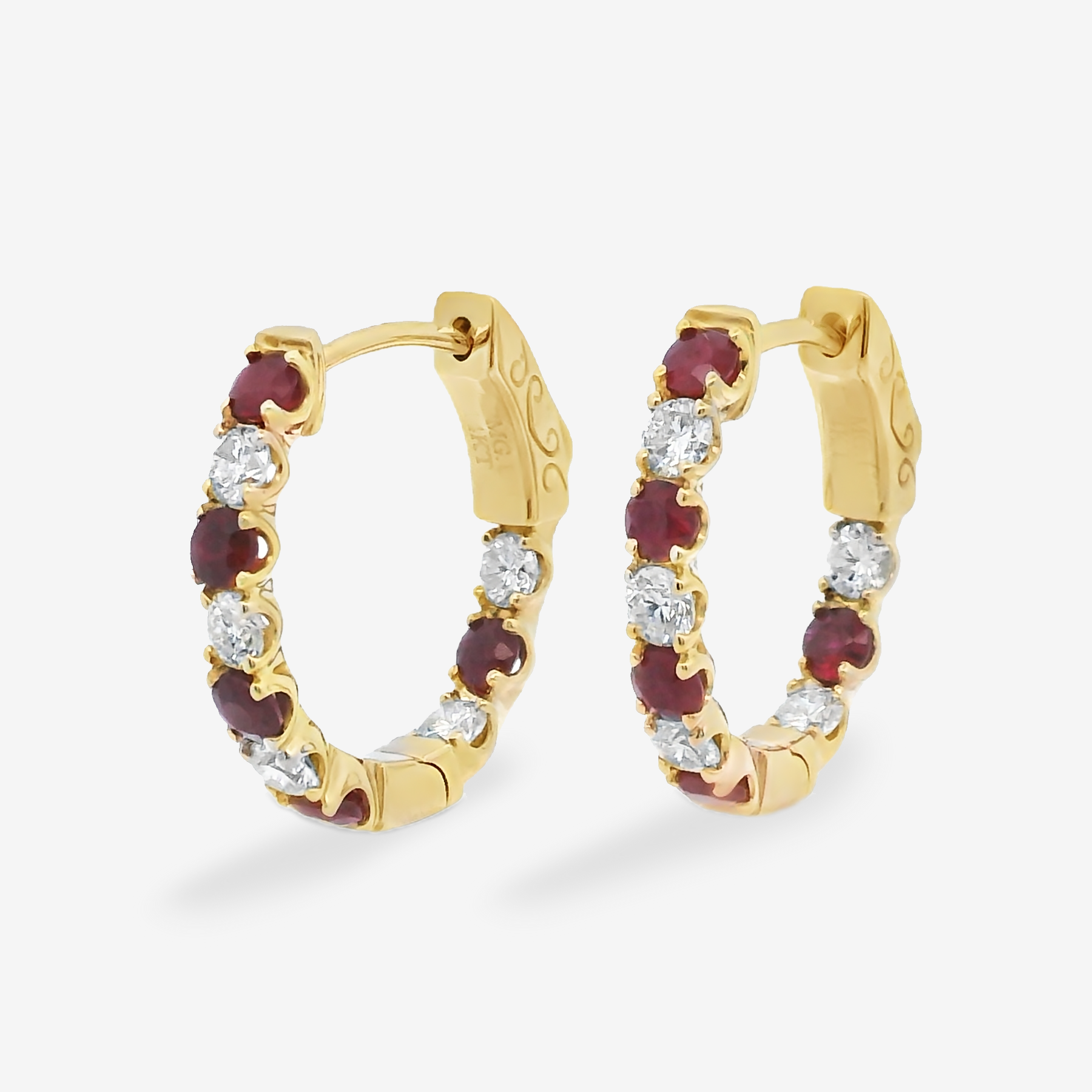 Inside & Out 0.95CT Ruby & Diamond Hoop Earrings