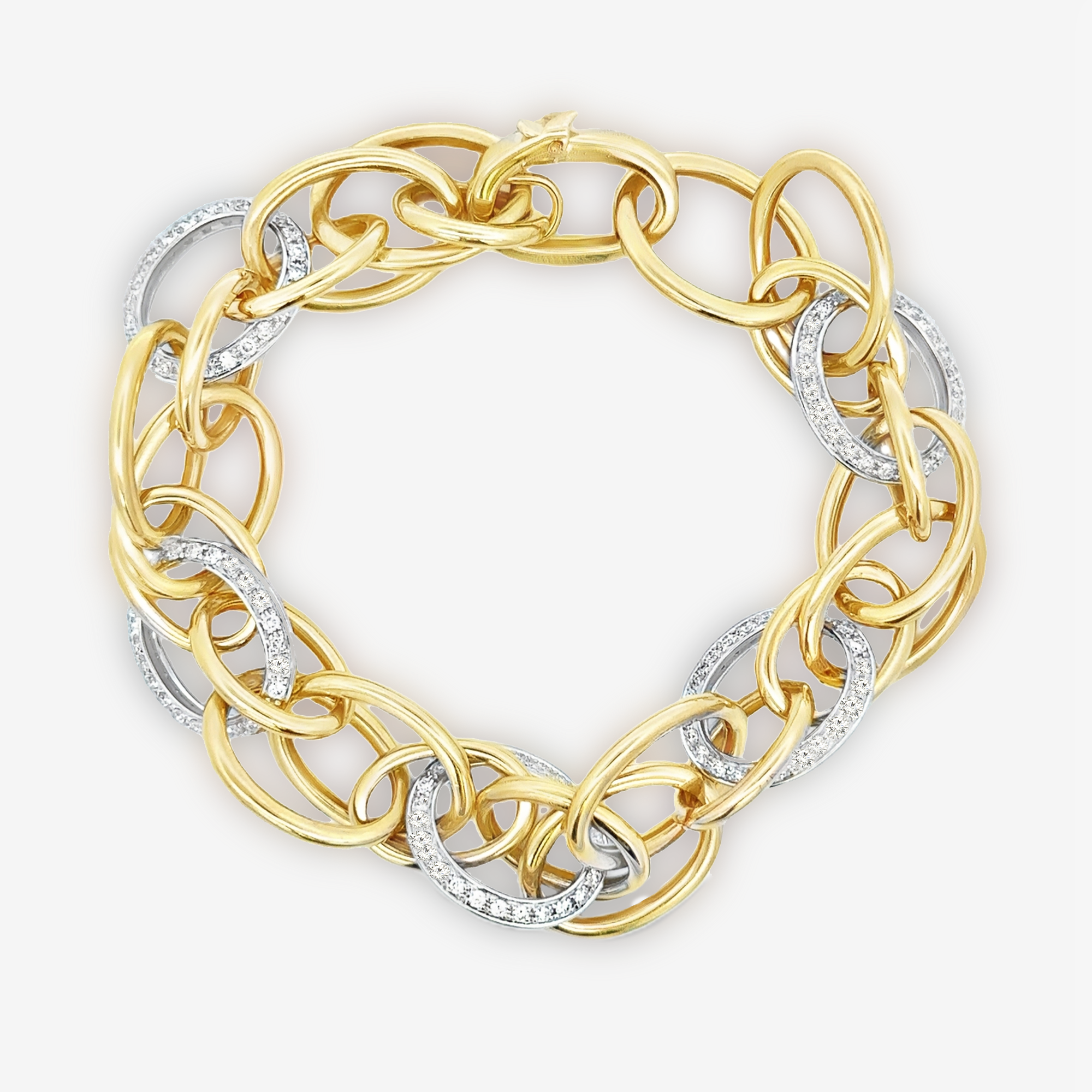 Interlocking Gold & Diamond Oval Link Bracelet