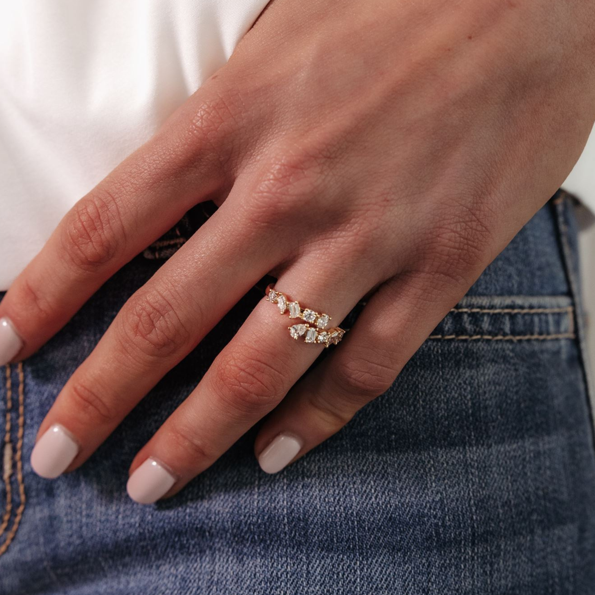 Multi Shaped Diamond Bypass Ring