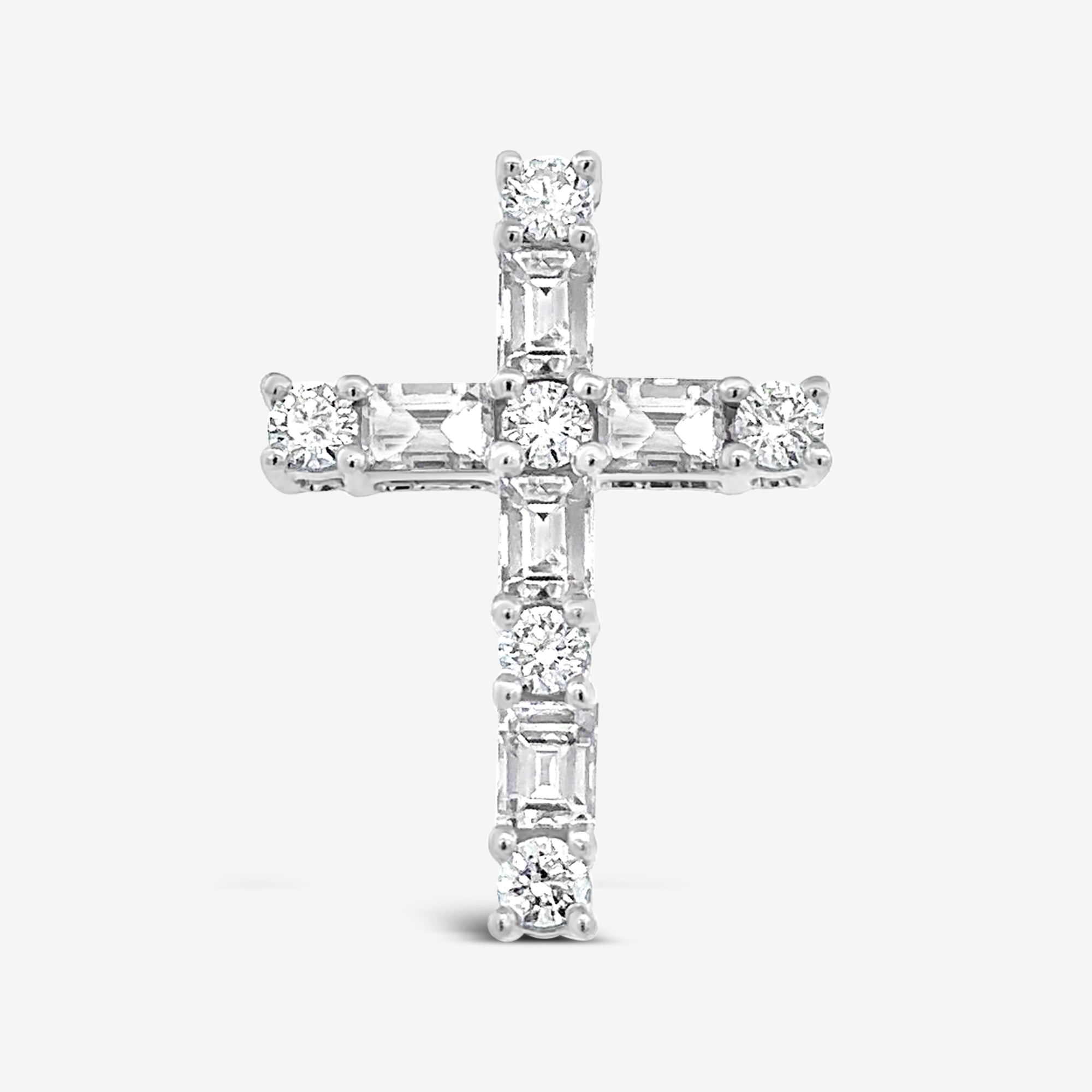 Prong Set Round & Baguette 0.70CT Diamond Cross Pendant