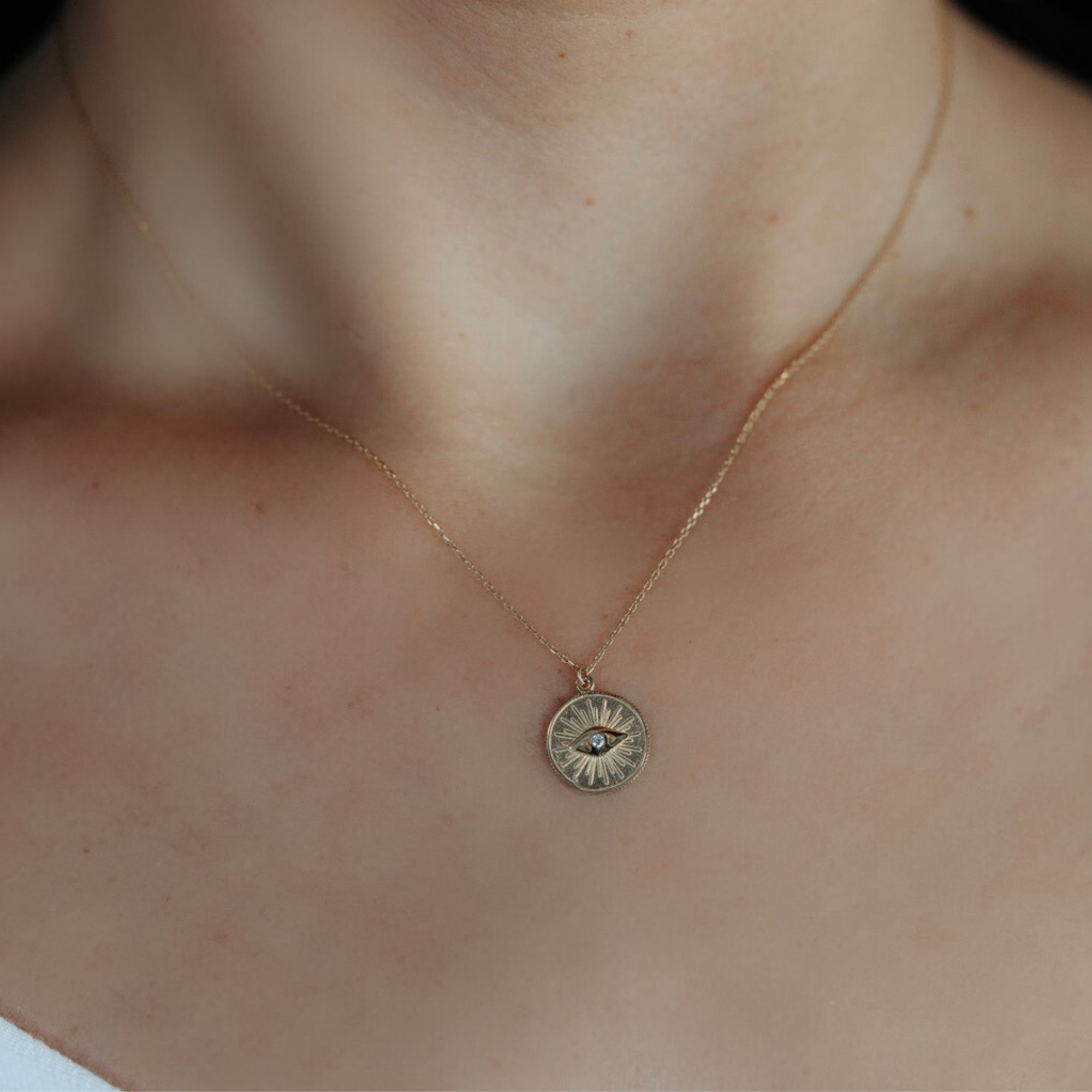 Rays of Gold & Diamond Evil Eye Necklace