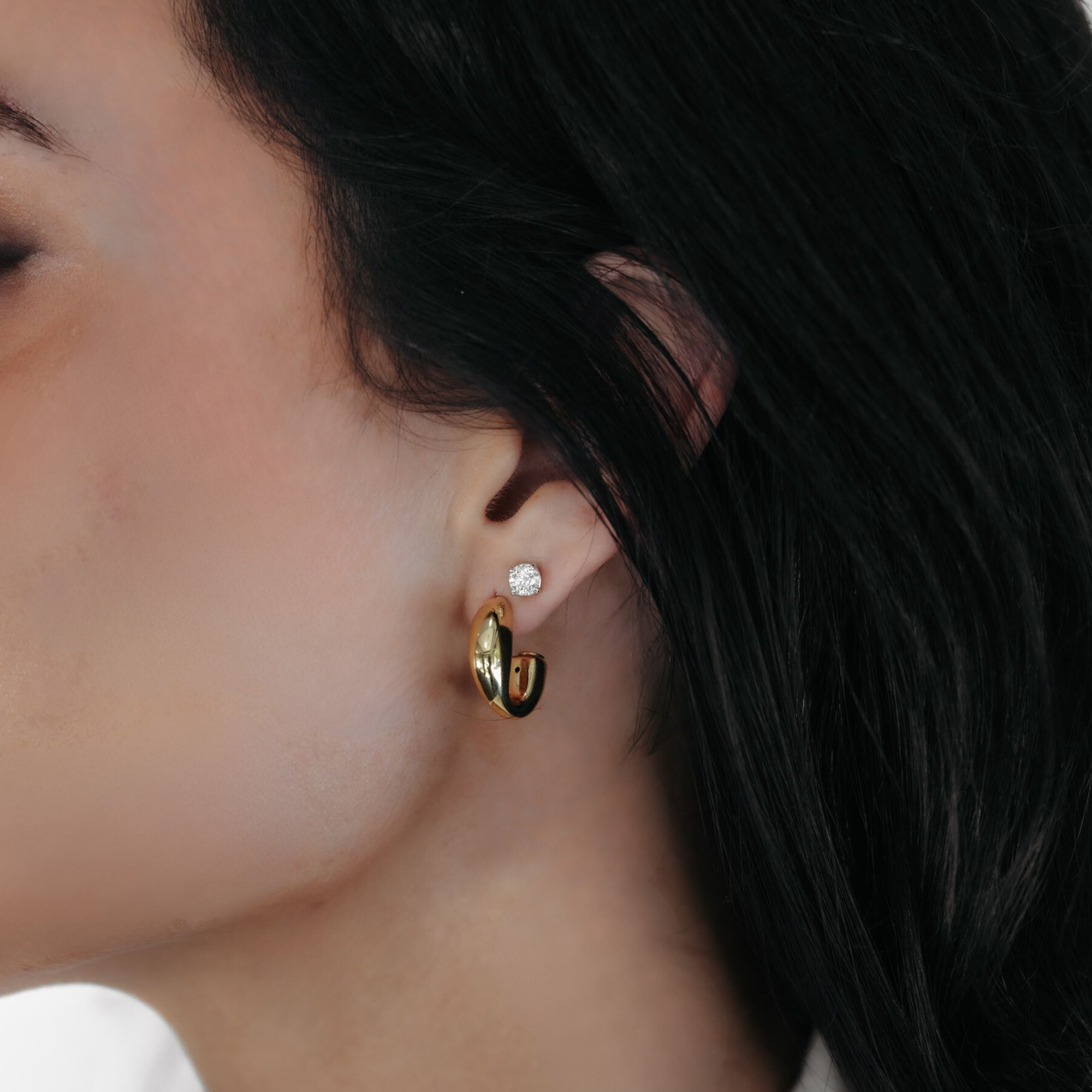 Puffed J Hoop Earrings