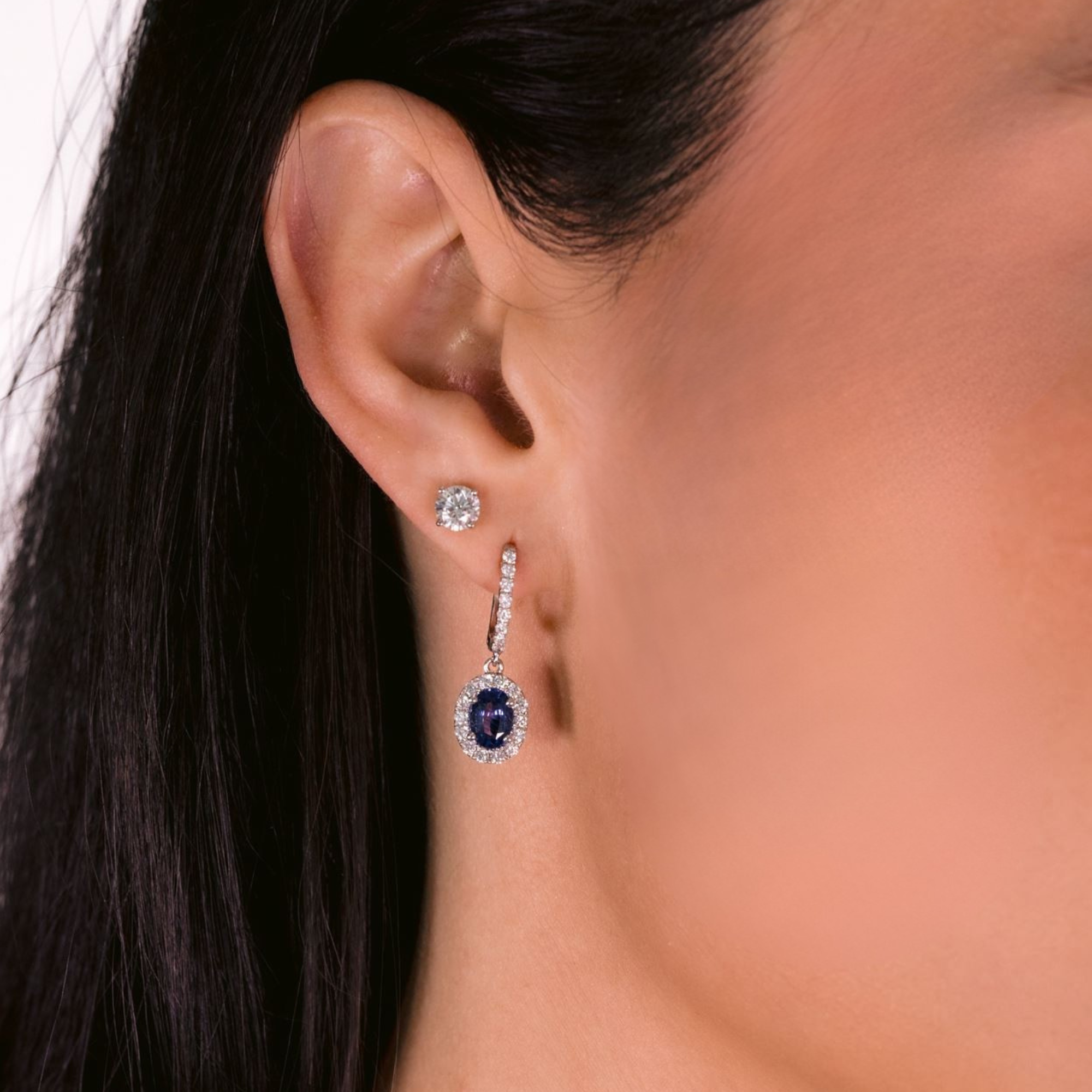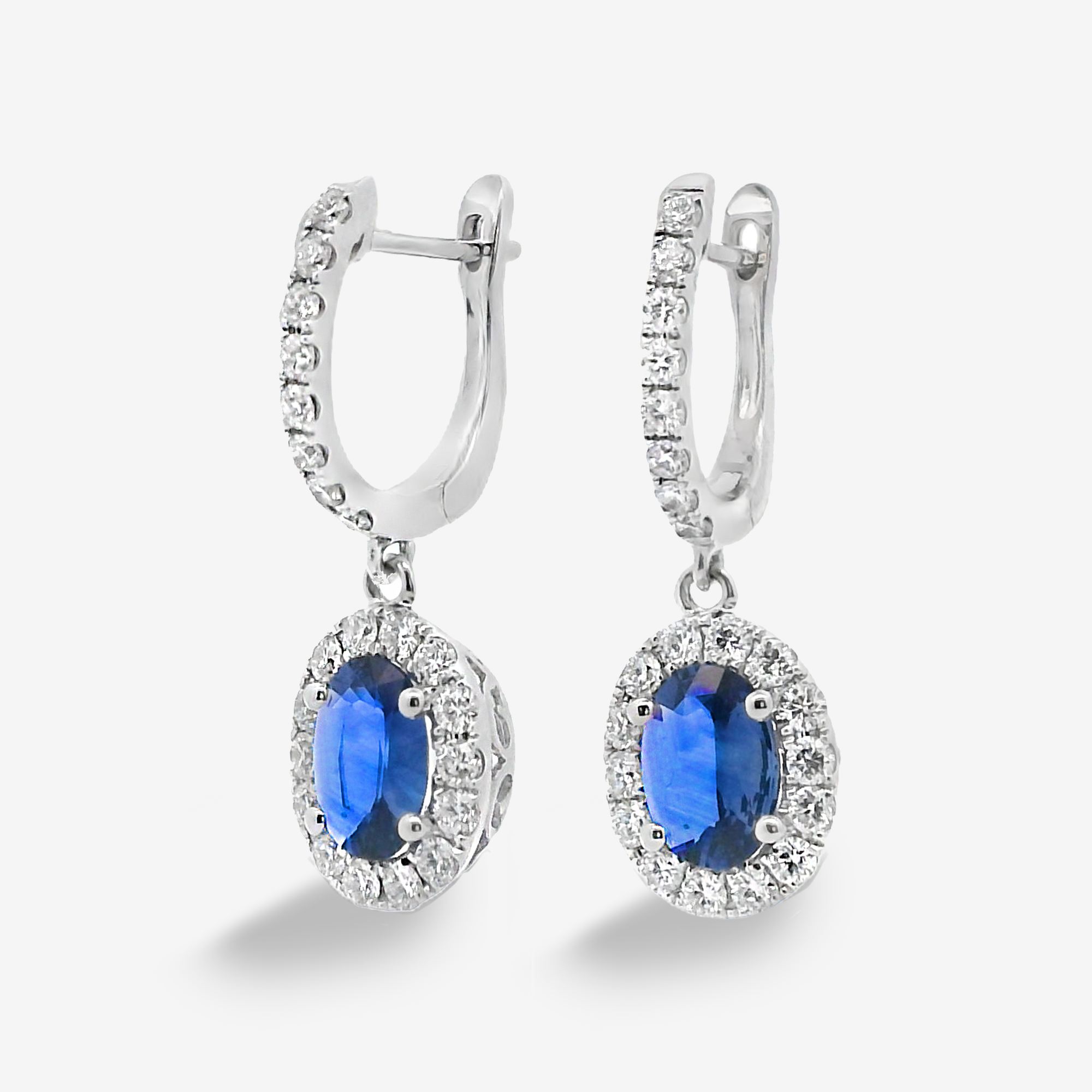 Sapphire & Diamond Oval Halo Dangle Earrings