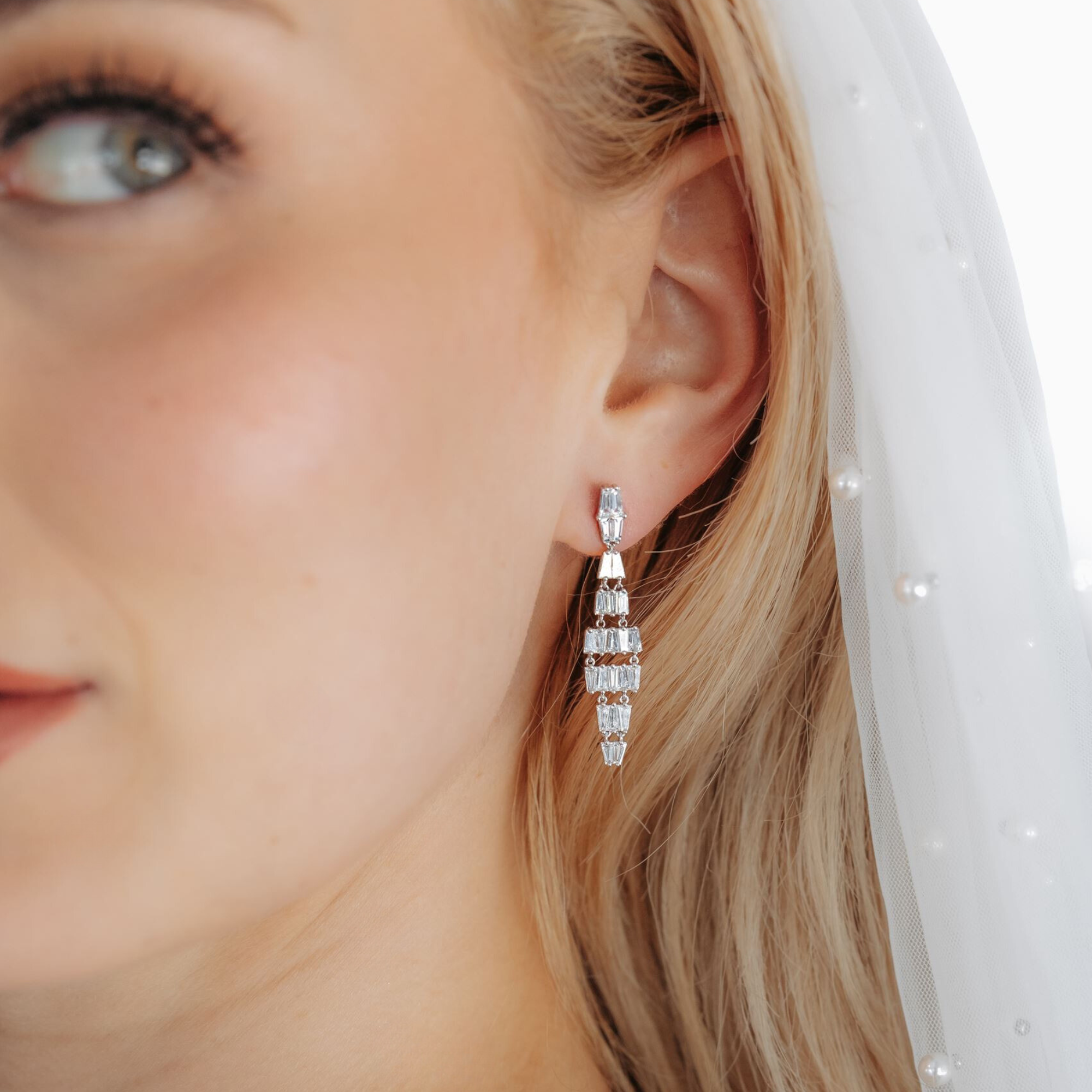 Triple Dangle Diamond & Paper Clip Links Earrings