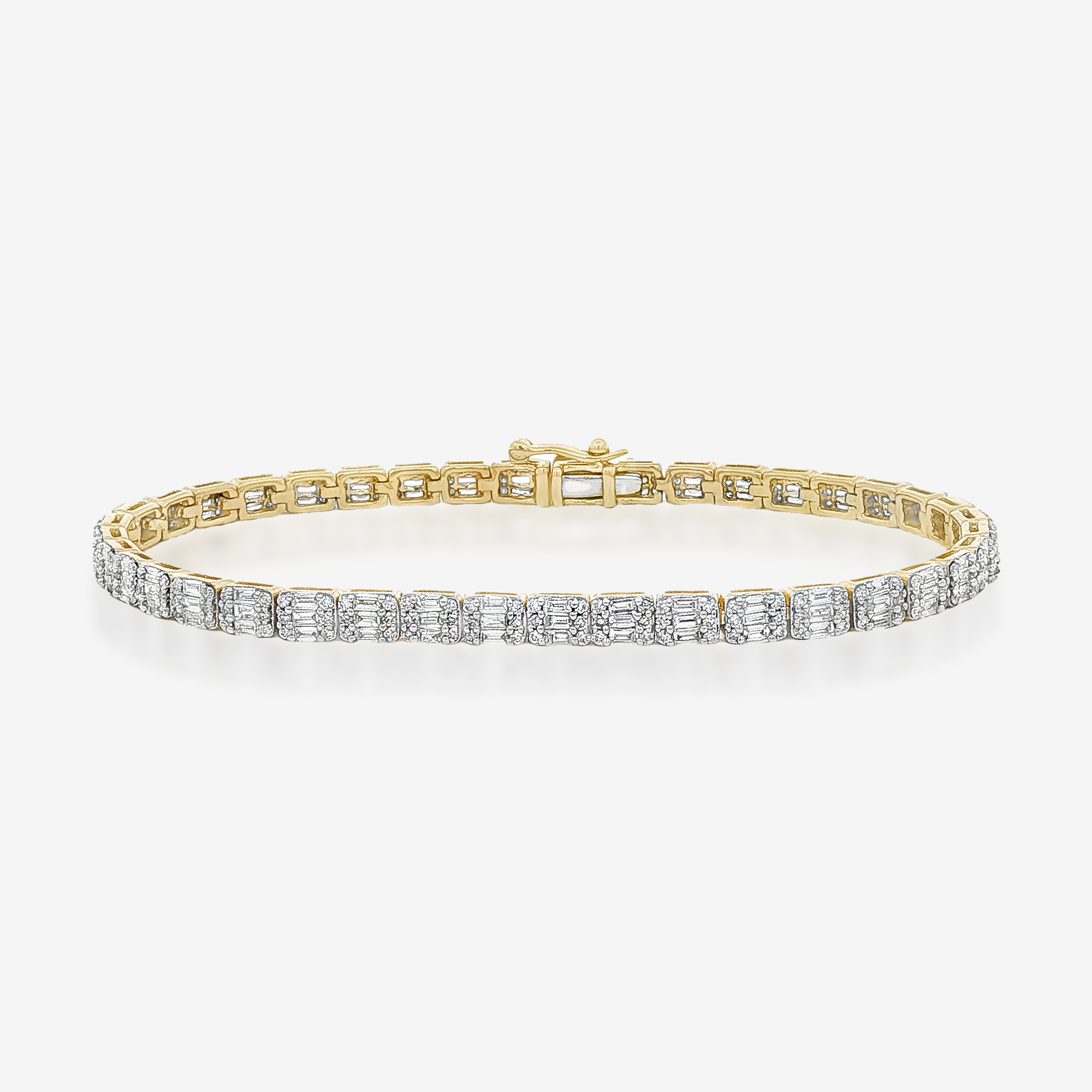 2.40CTW Baguette & Round Diamond Tennis Bracelet