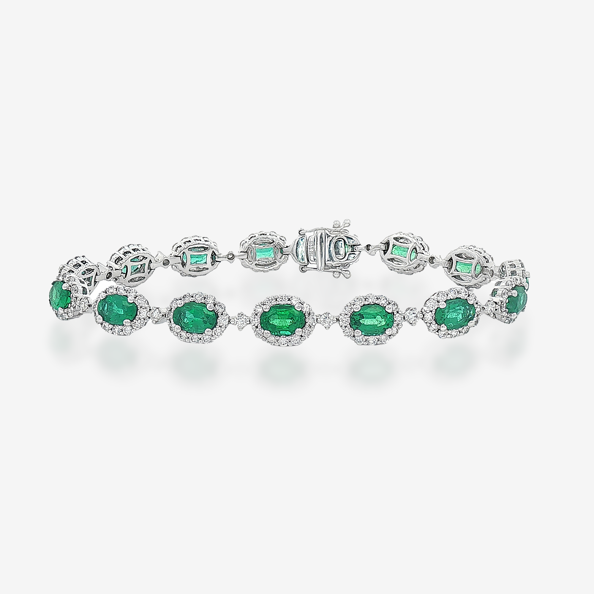 Oval Emerald & Diamond Flex Bangle Bracelet