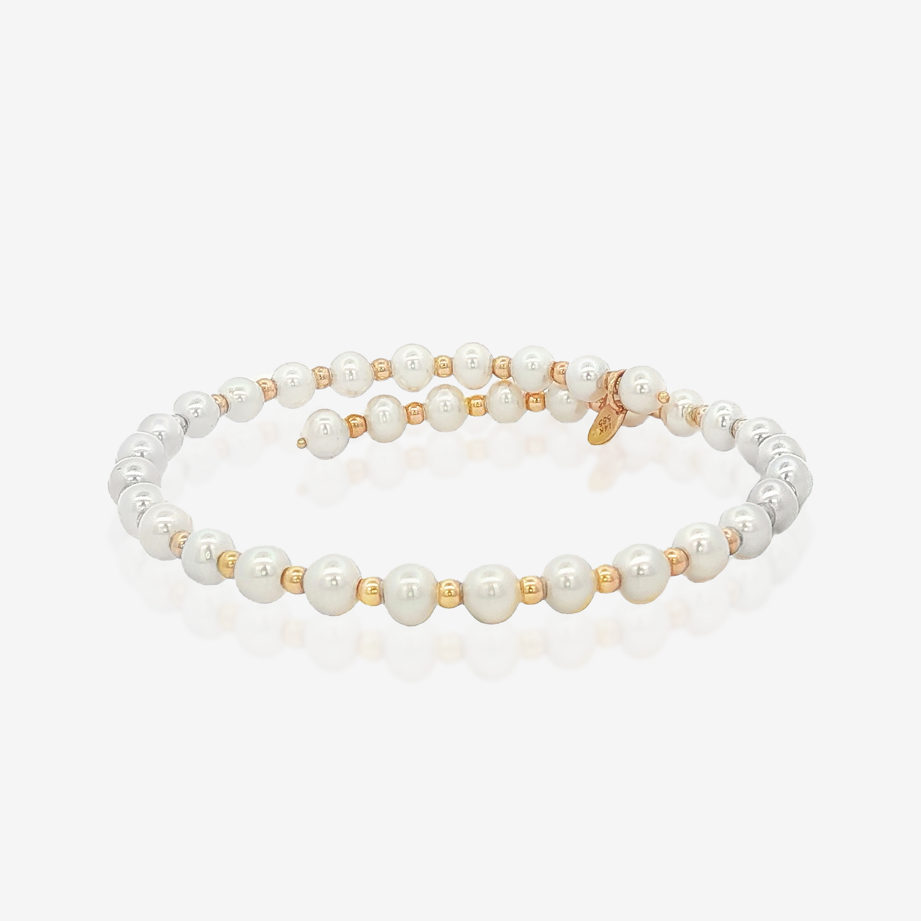 Get ready to have fun with your wrist! This flexible wrap bracelet from the Bead It Collection combines the timeless beauty of lustrous pearls with high polished white or yellow gold beads in an alternating pattern.