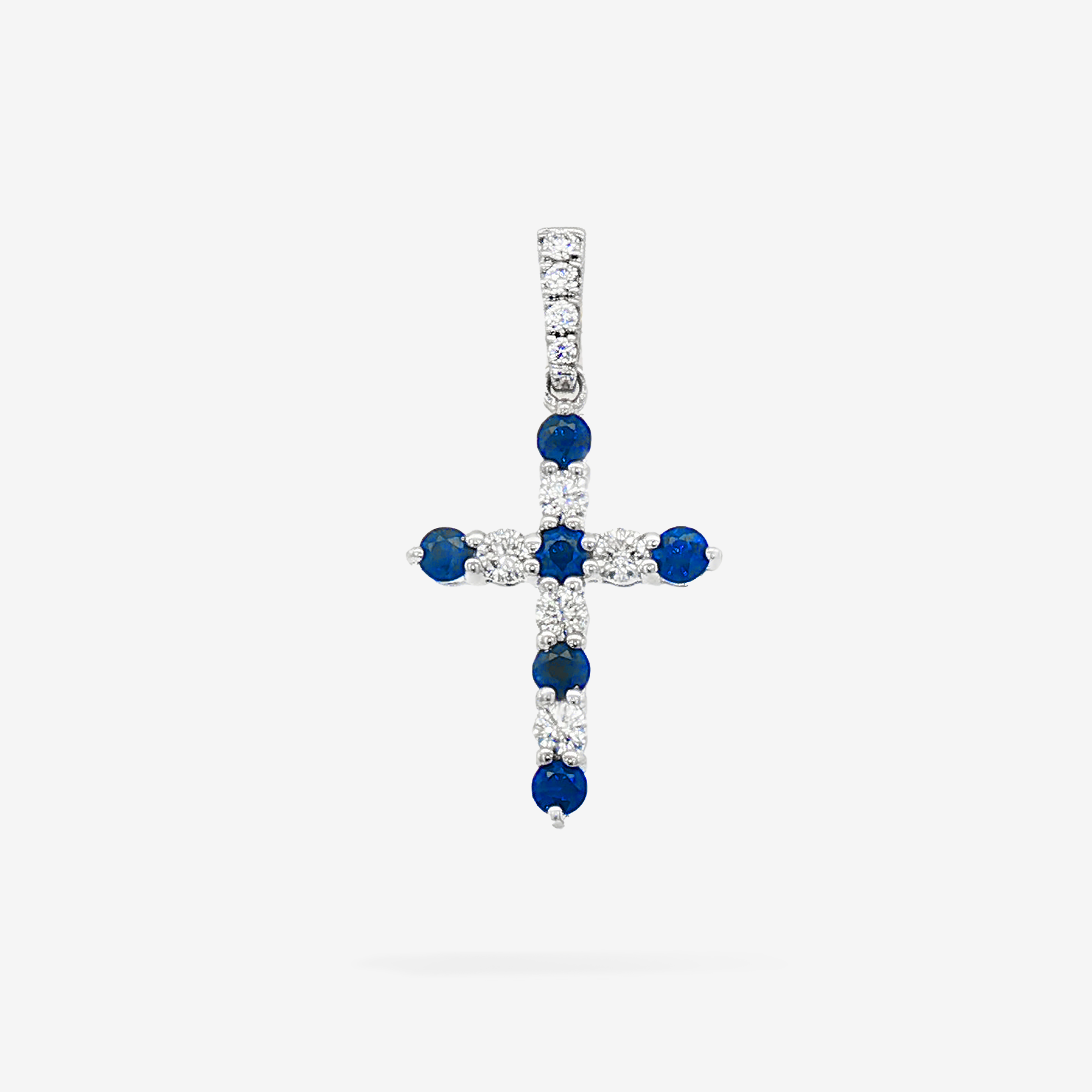 1/2 Inch Blue Sapphire & Diamond Cross Pendant