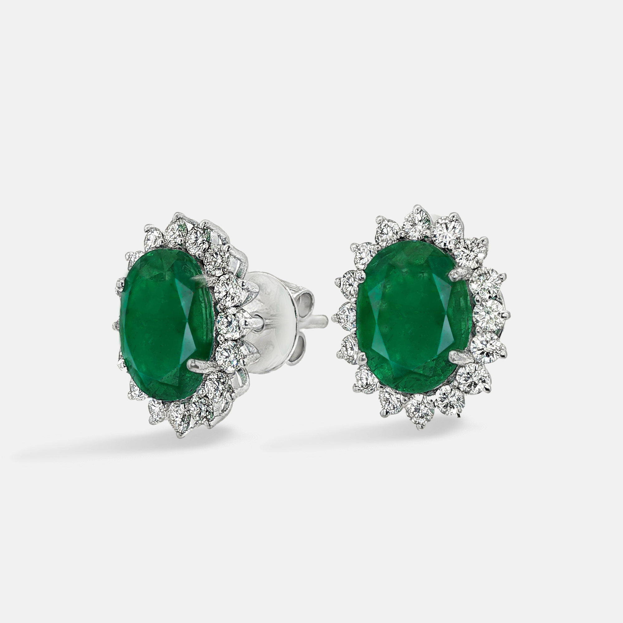 3.30CT Oval Emerald Diamond Halo Earrings