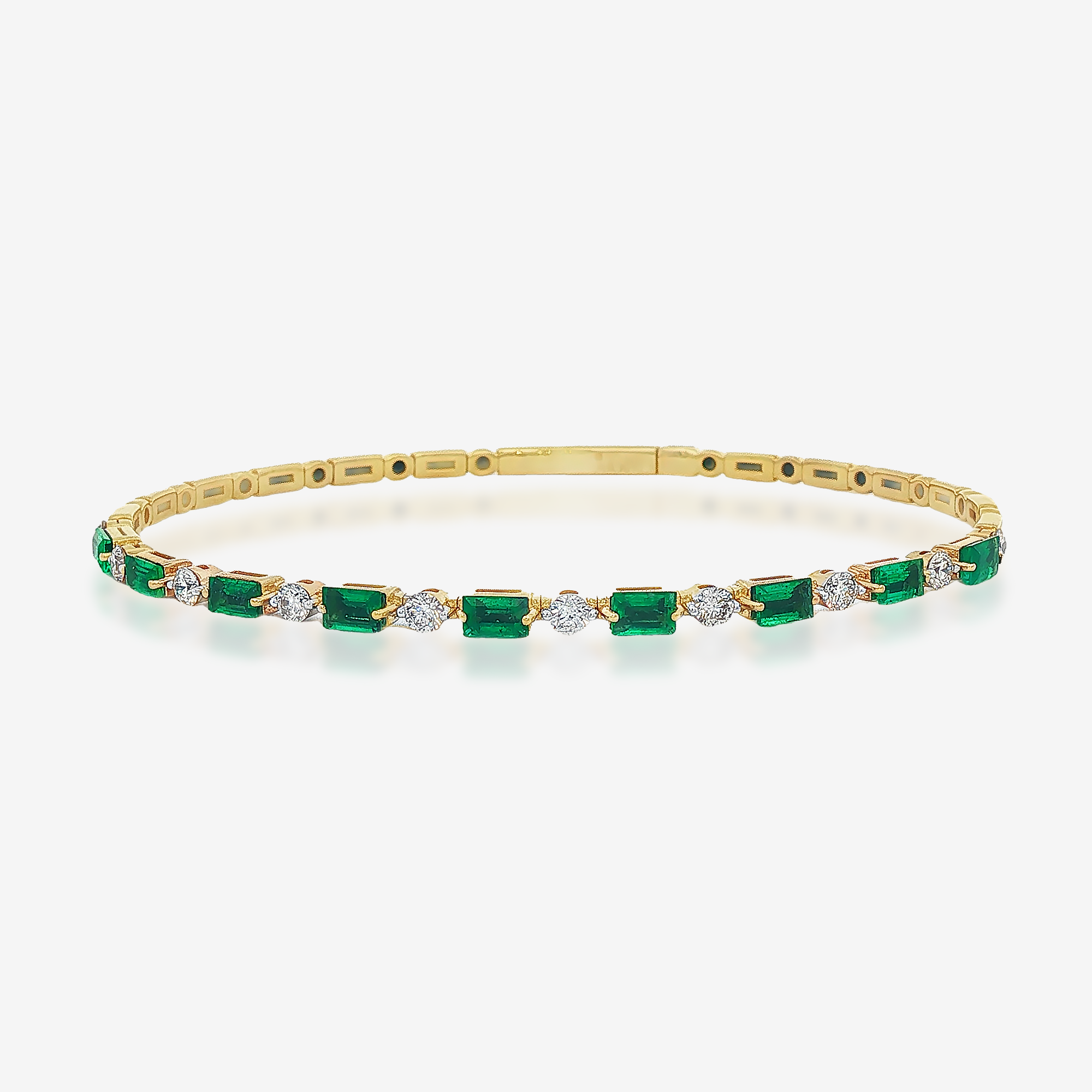 Emerald Cut Emerald & Diamond Flex Bangle Bracelet