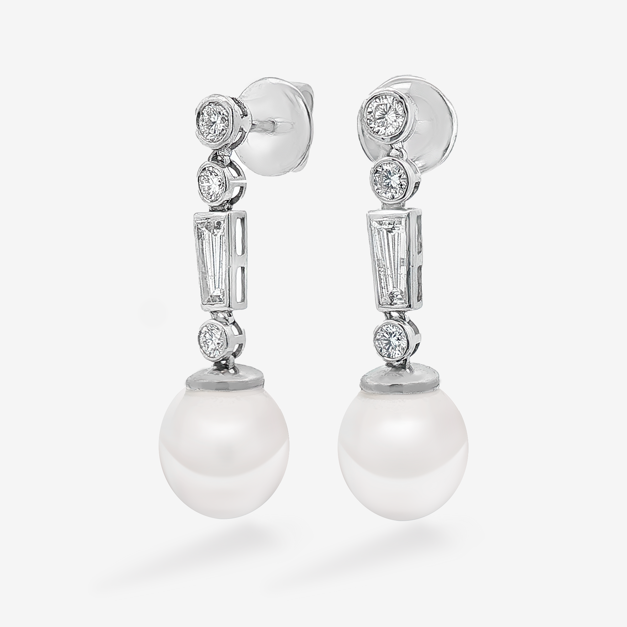 Emerald Cut Sapphire & Diamond Dangle Earring