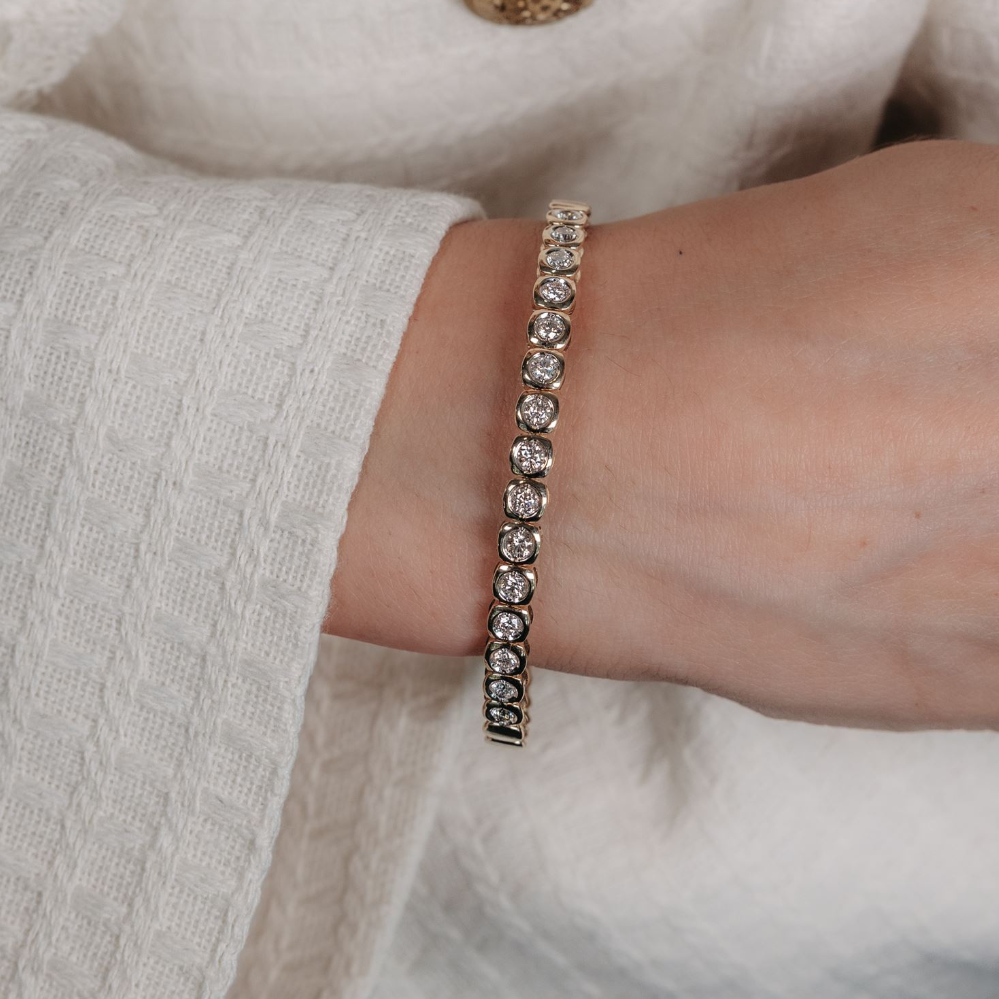 French Set Classic 1.55CT Halfway Diamond 3.4MM Bangle Bracelet