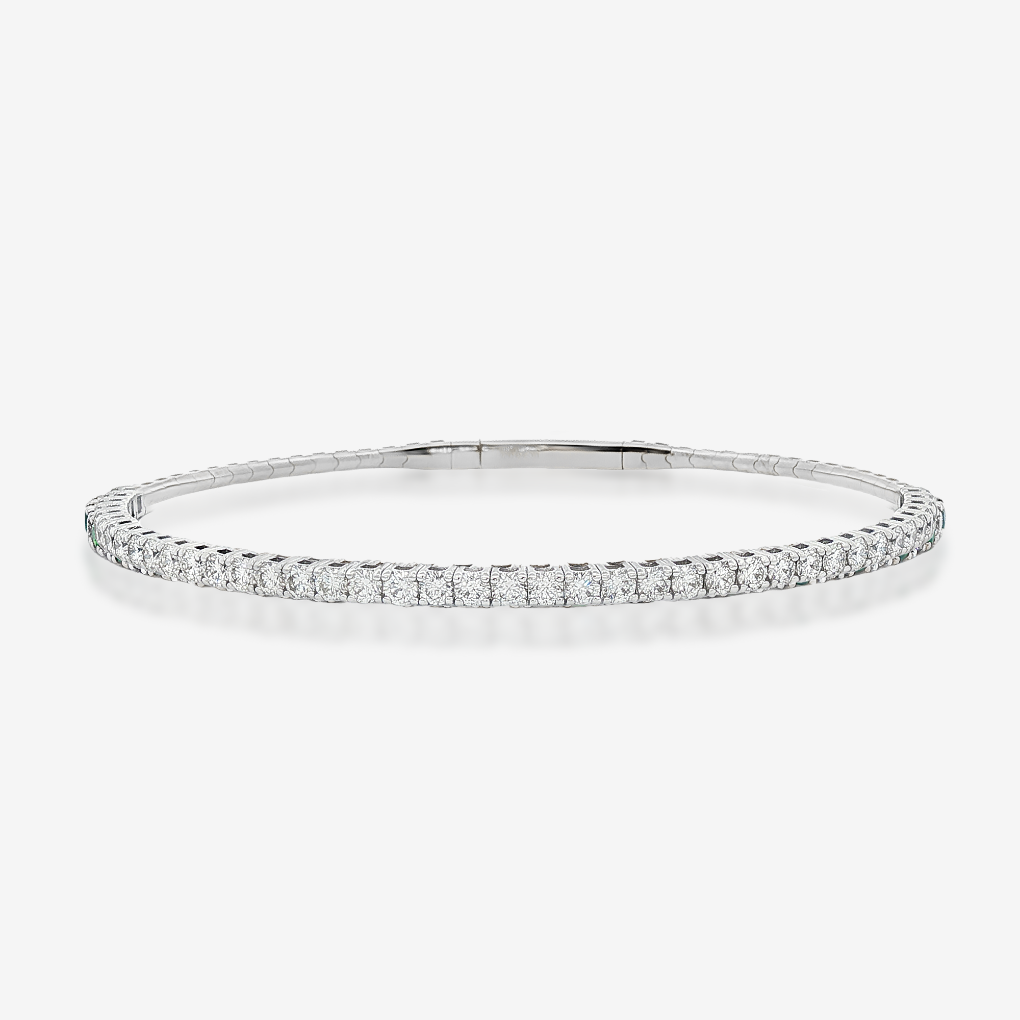 1/2 Way Emerald & Round Cut Diamond Flex Bangle Bracelet