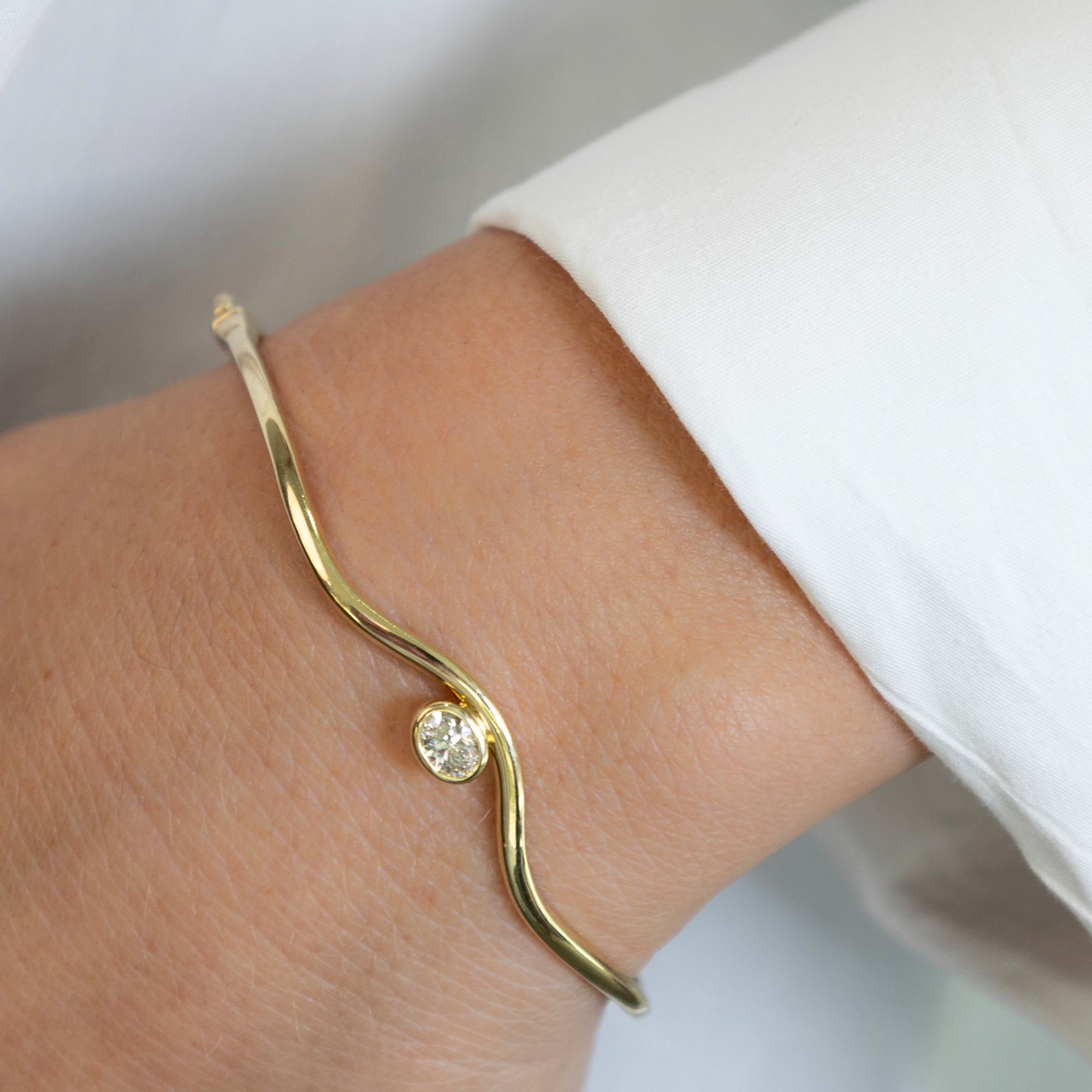 0.30CT Oval Solitaire Diamond Wave Bangle Bracelet