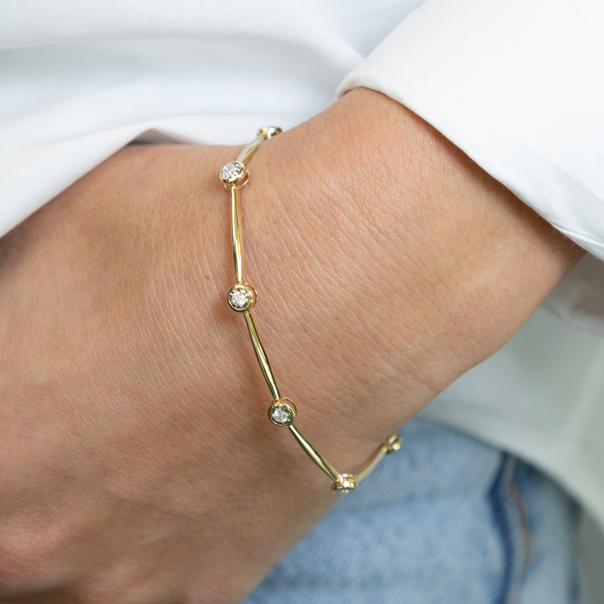 0.25CT Gold Stud & Diamond Flex Bangle Bracelet