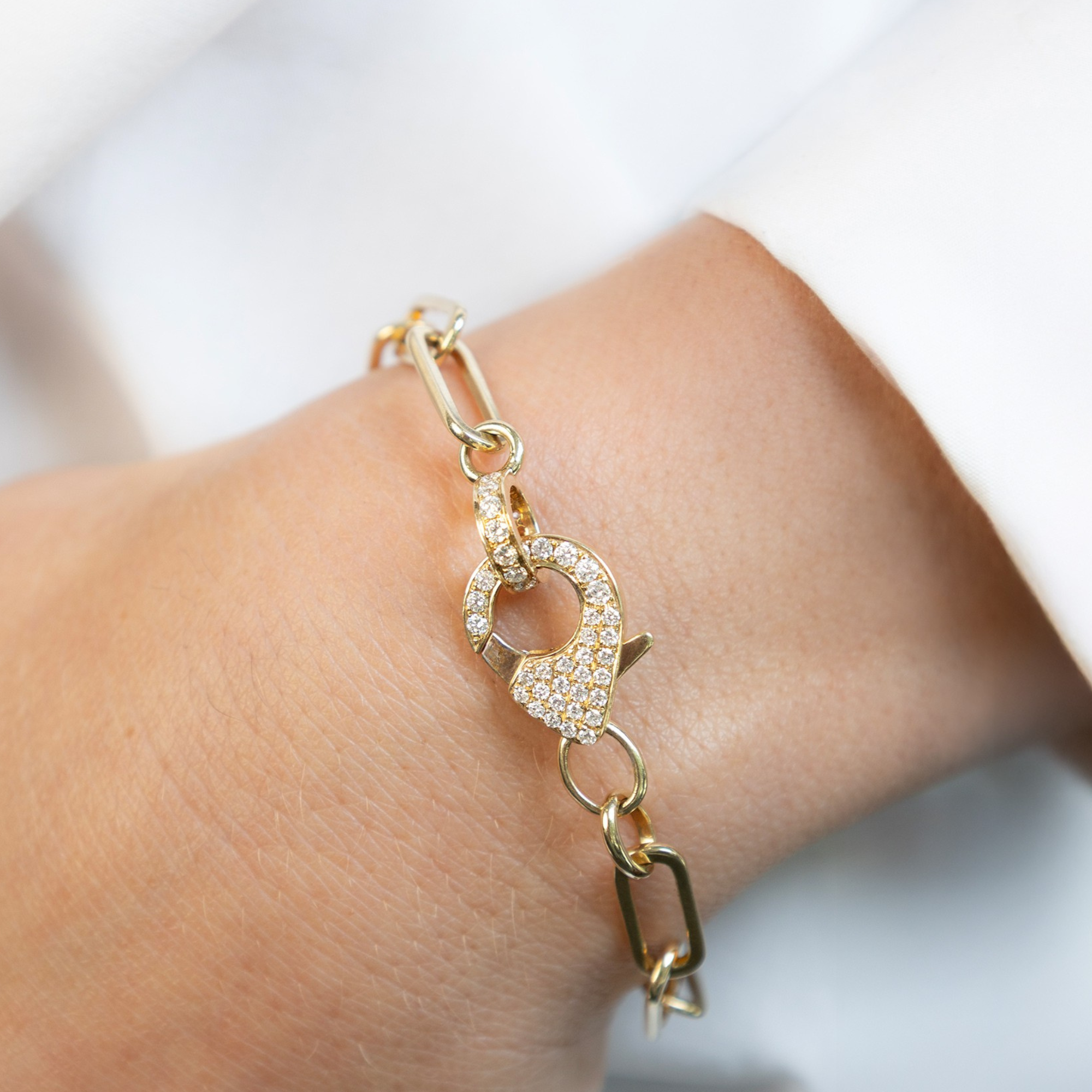 Pave' Diamond Clasp Paperclip Link Bracelet