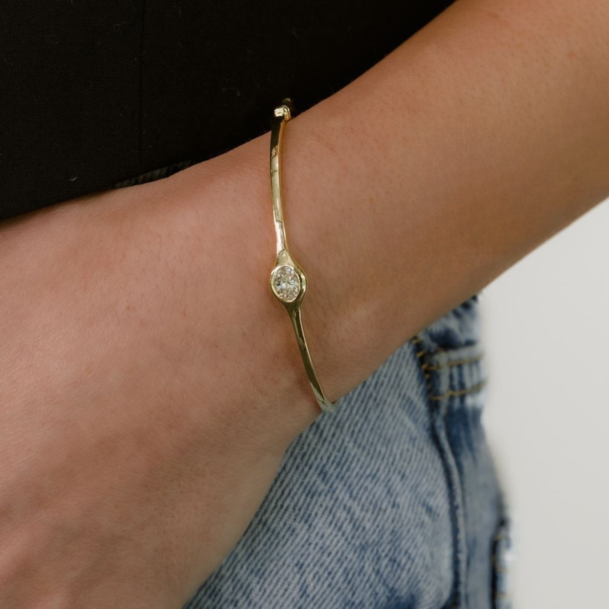 0.50CT Oval Solitaire Diamond Bangle Bracelet