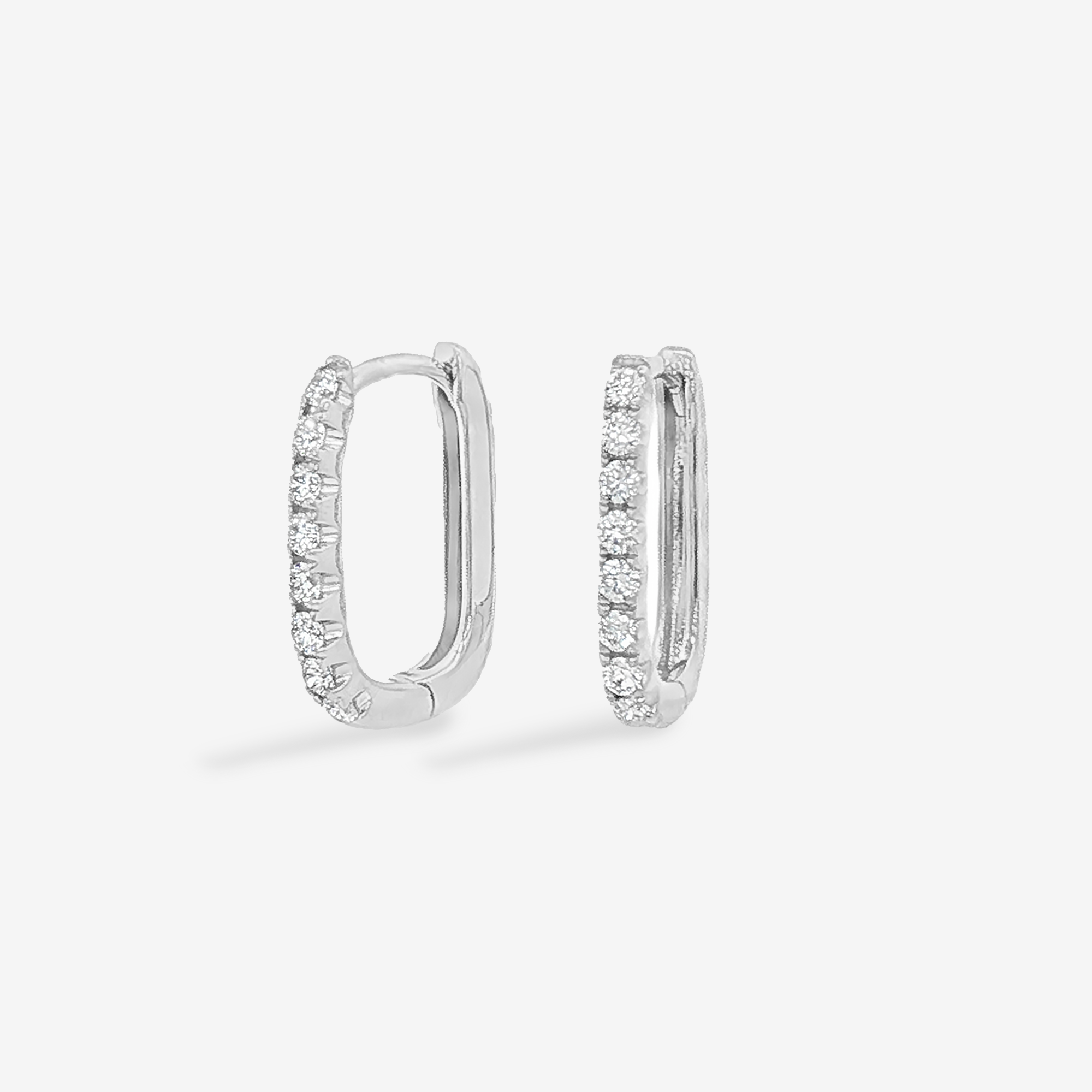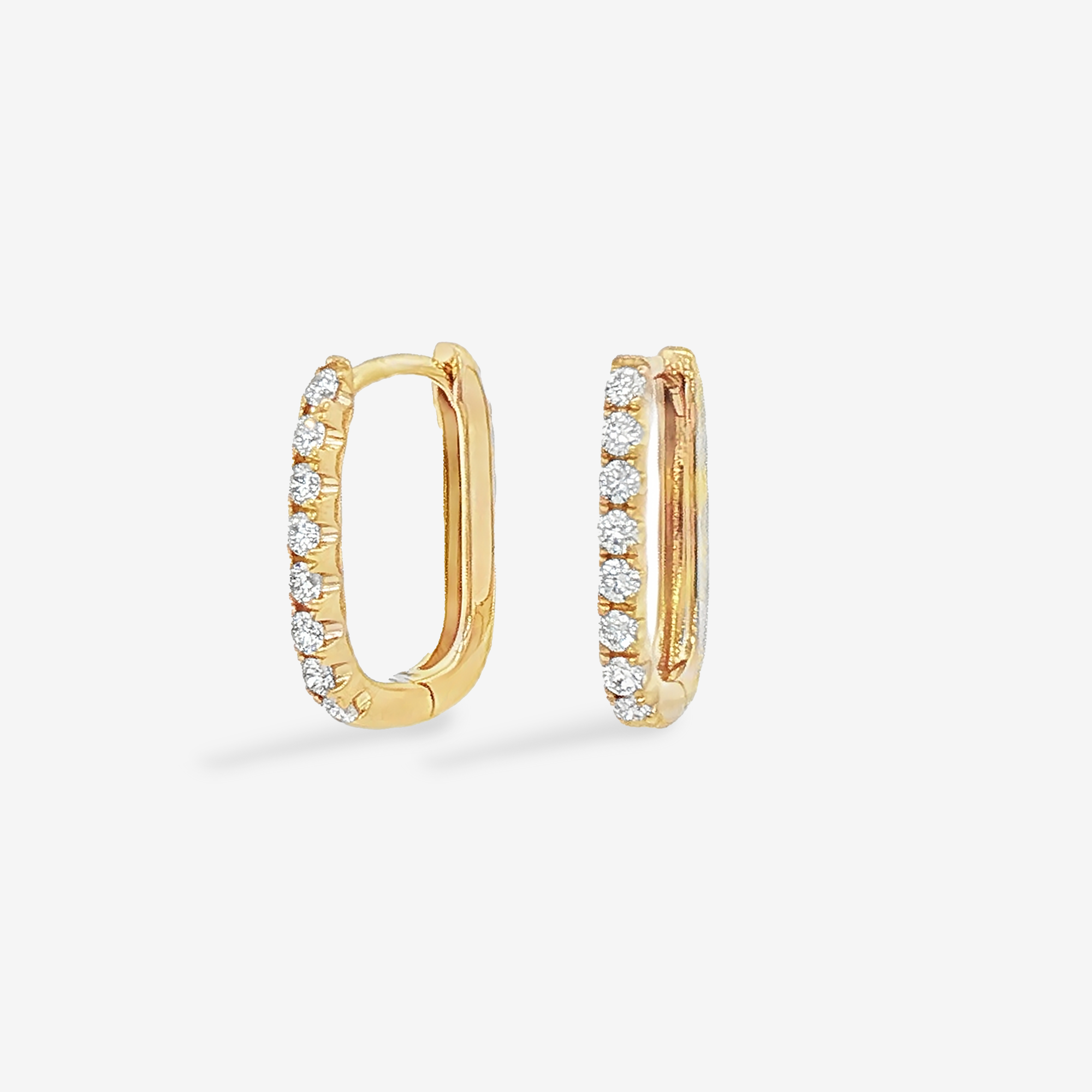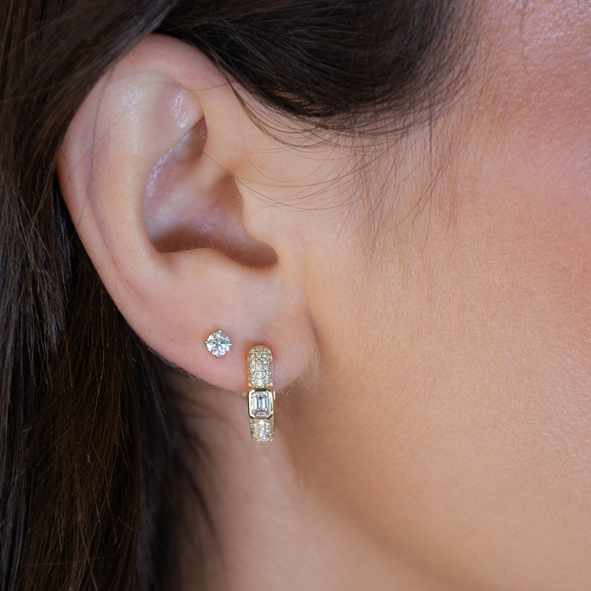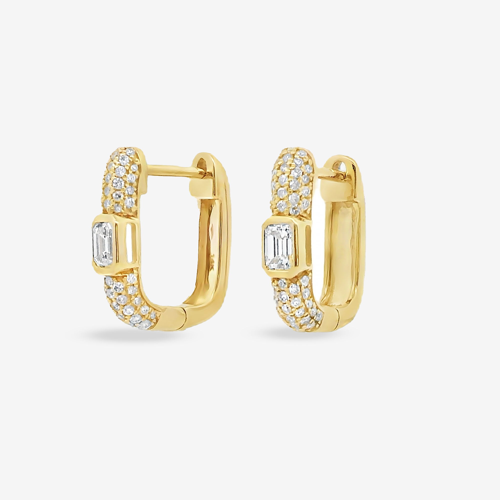 Emerald Cut Pave Diamond U Hoop Huggie Earrings