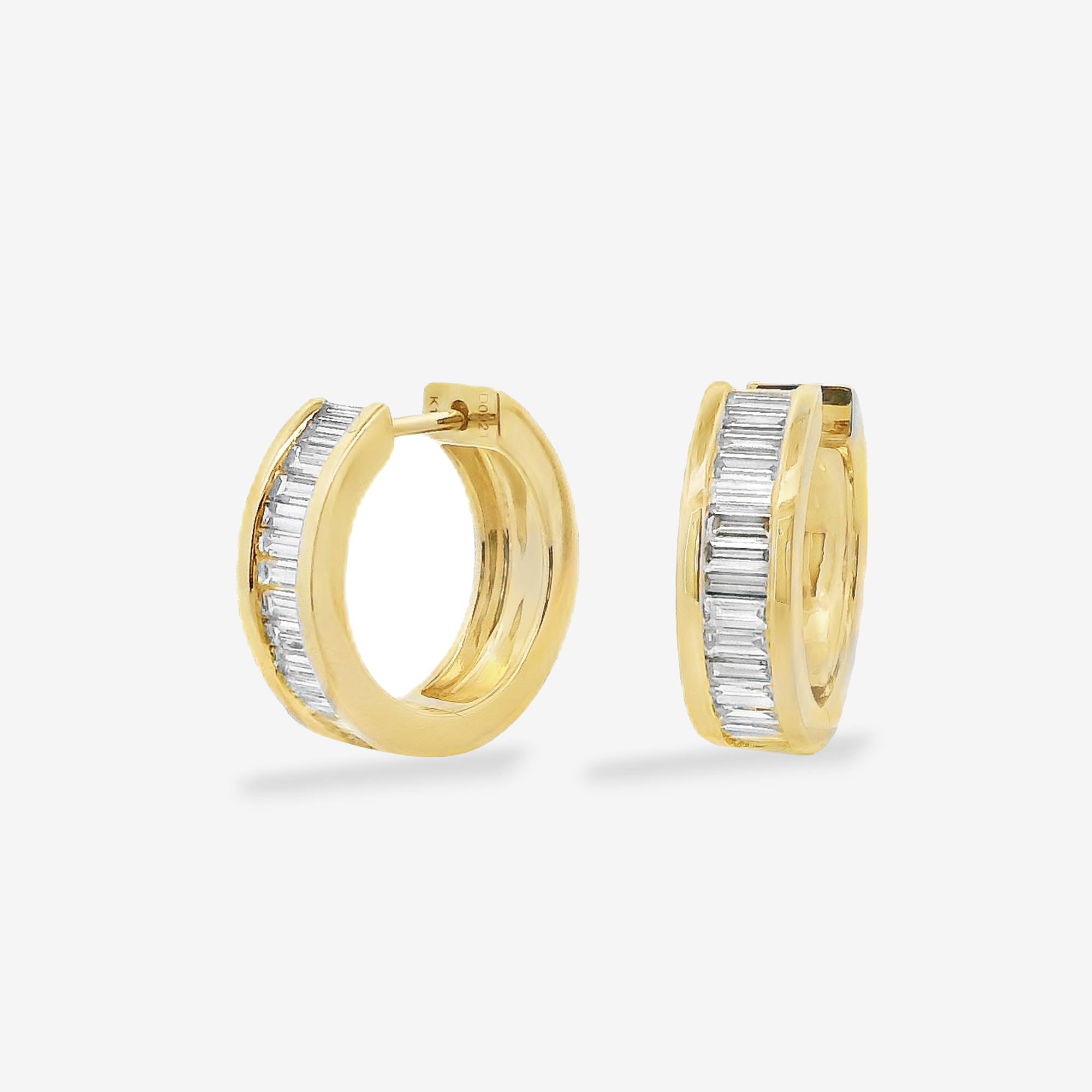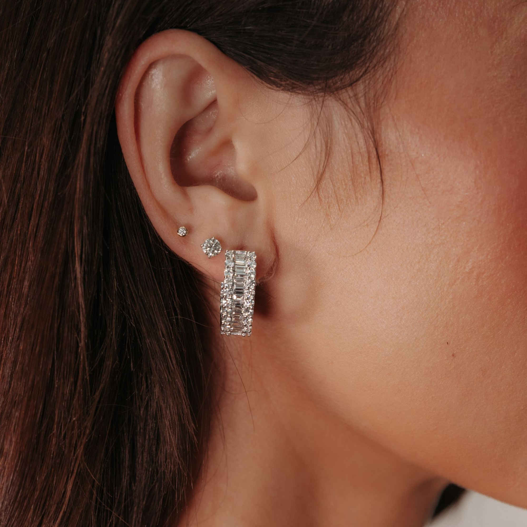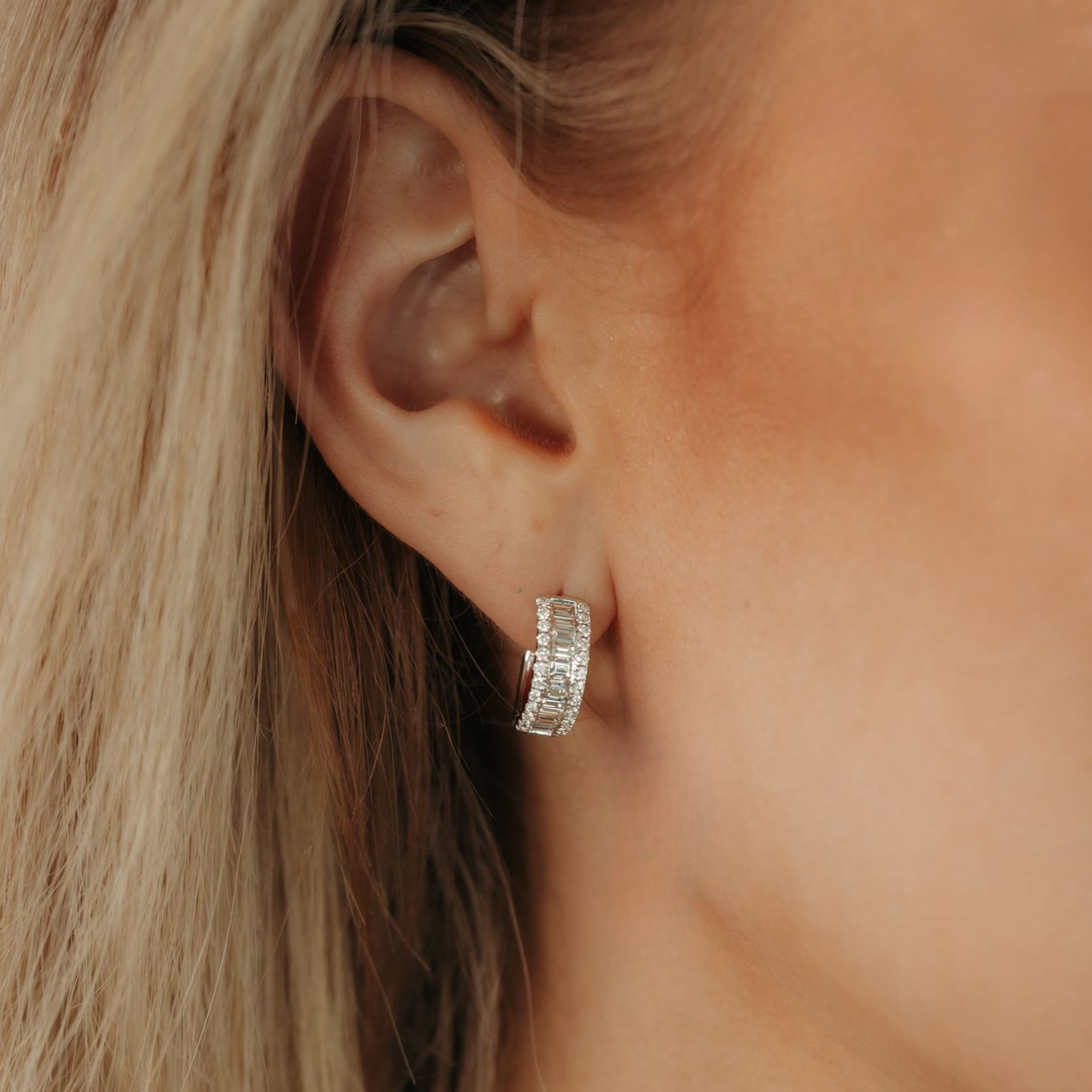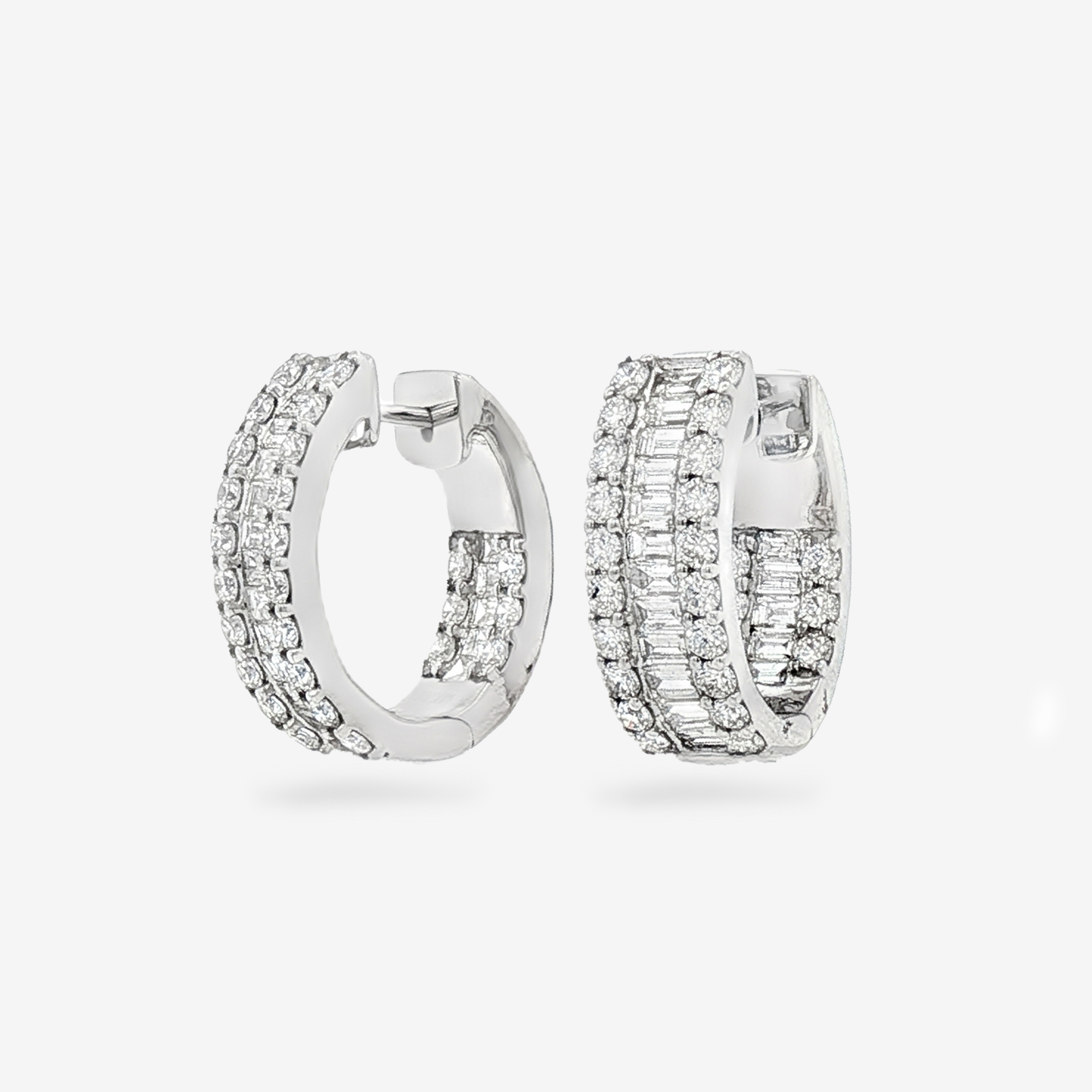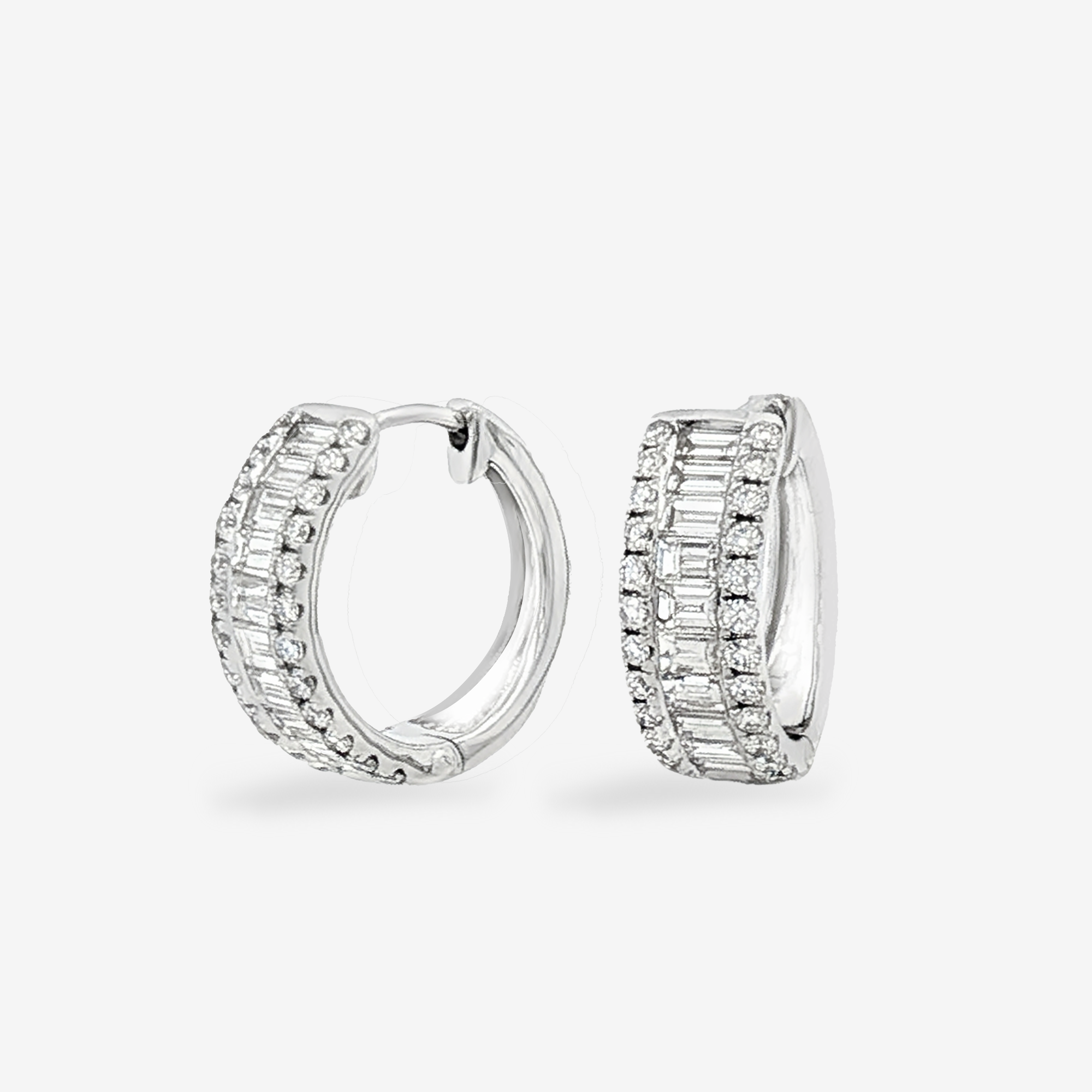 1.43CT Baguette & Round Diamond Huggie Earrings