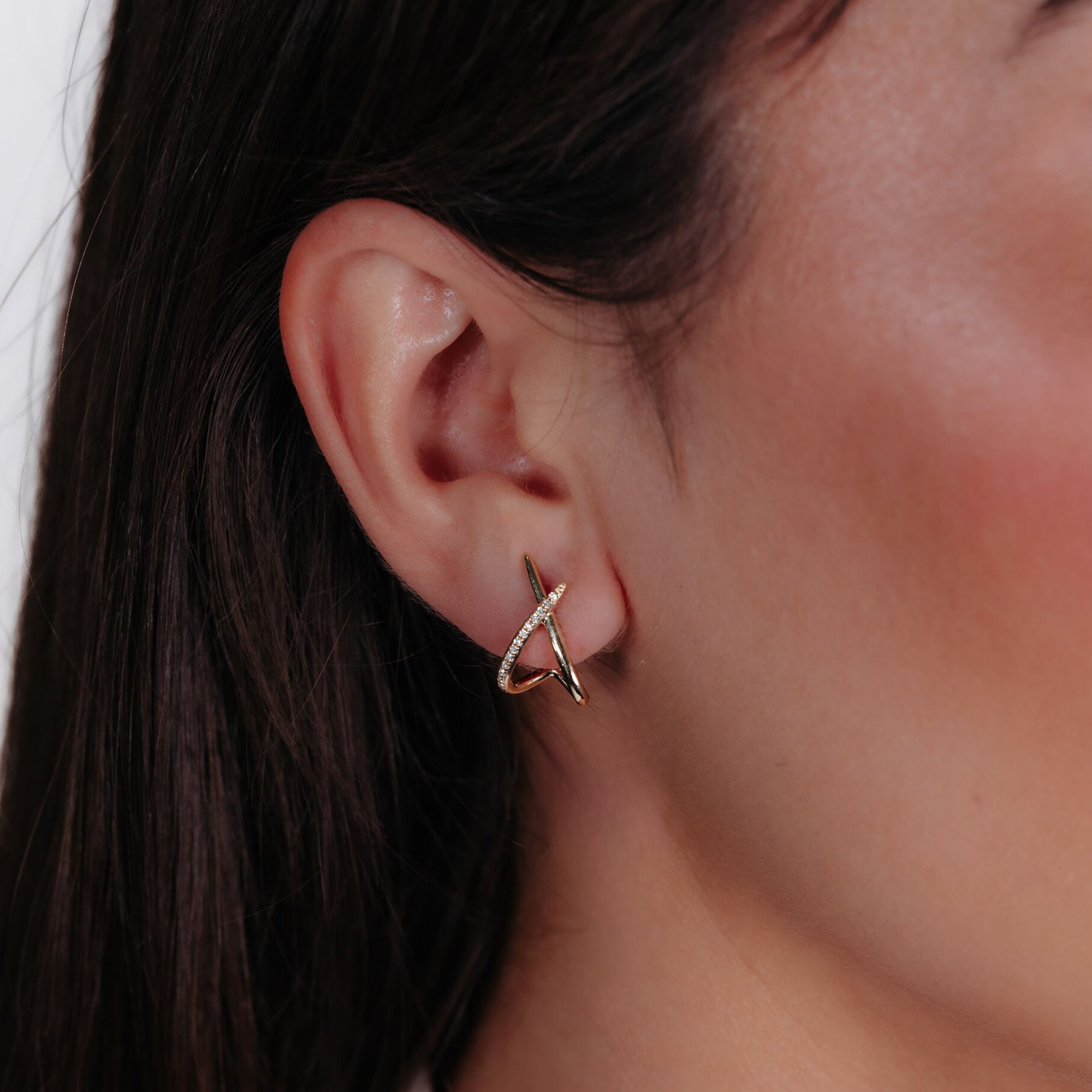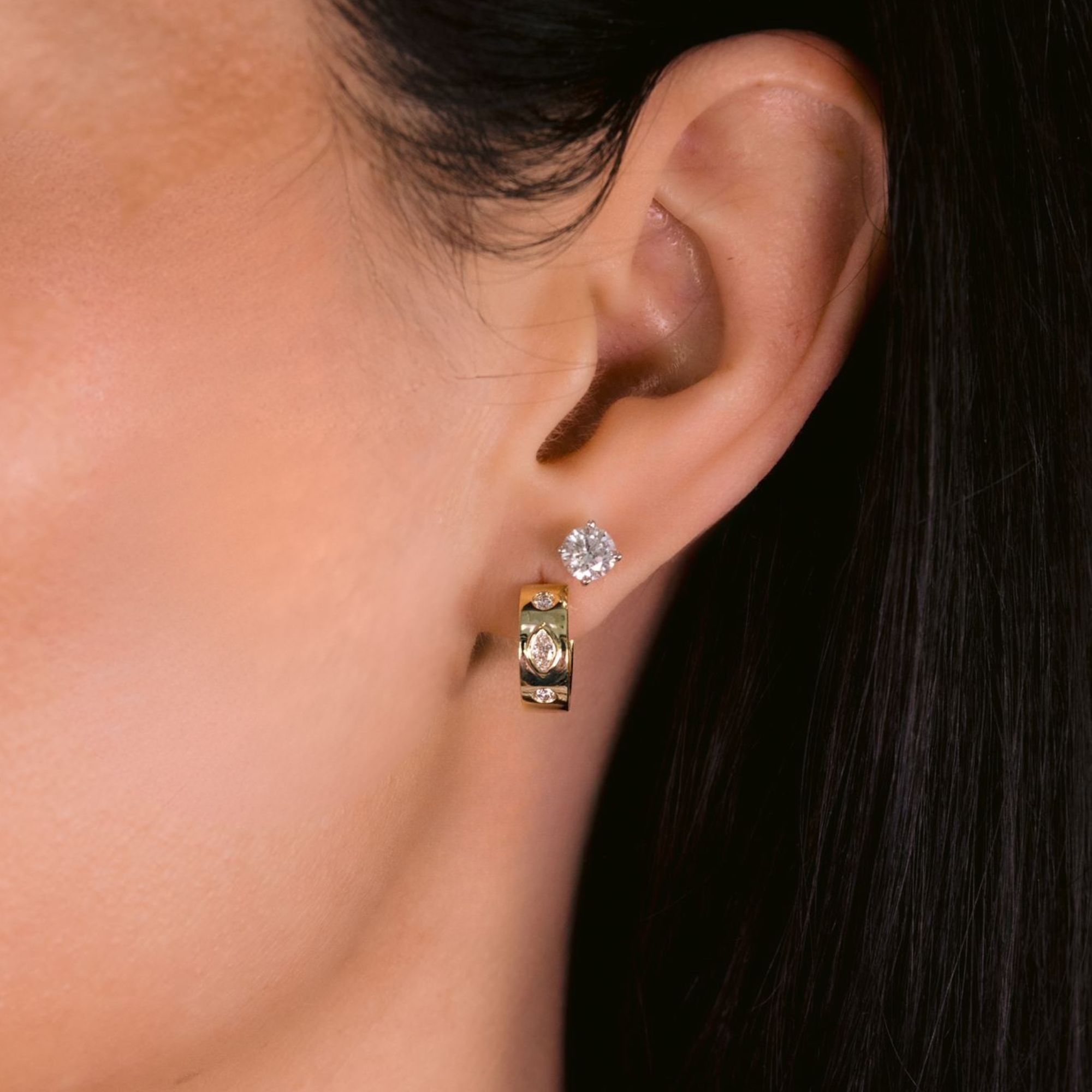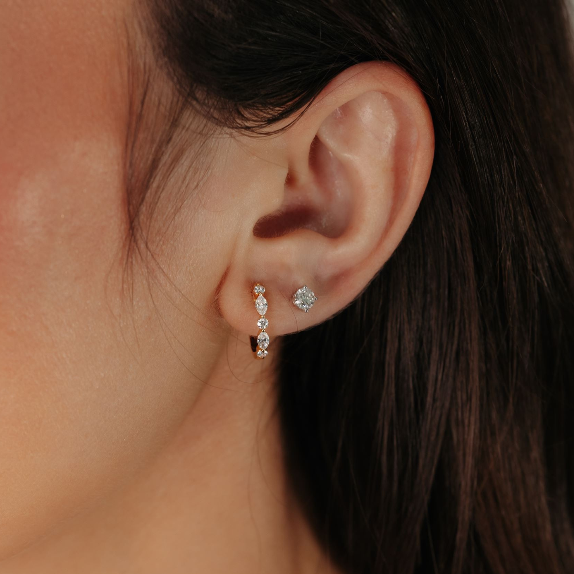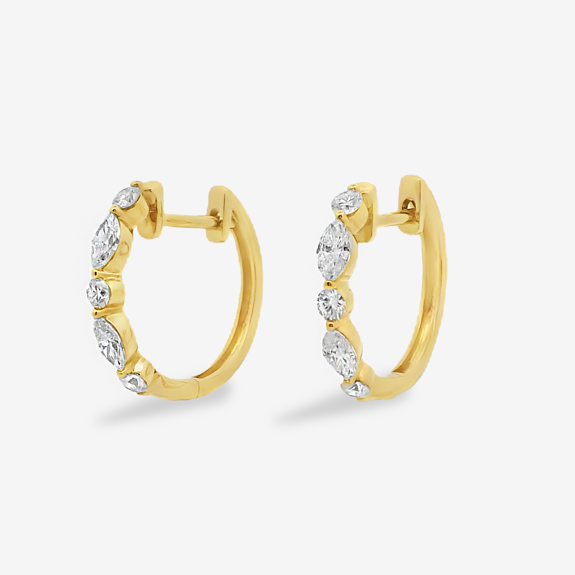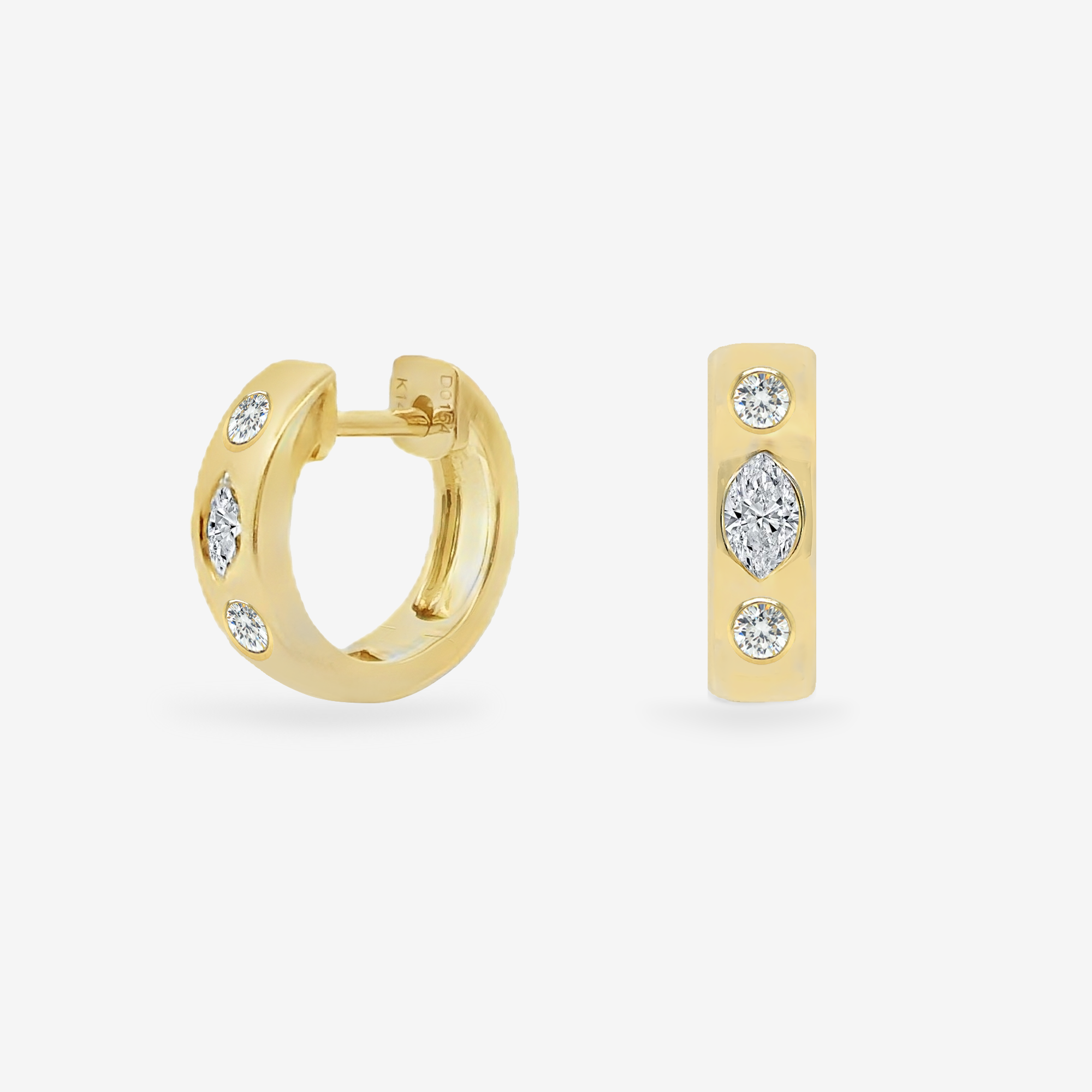 Marquise & Round Diamond Pinpoint Huggie Earrings