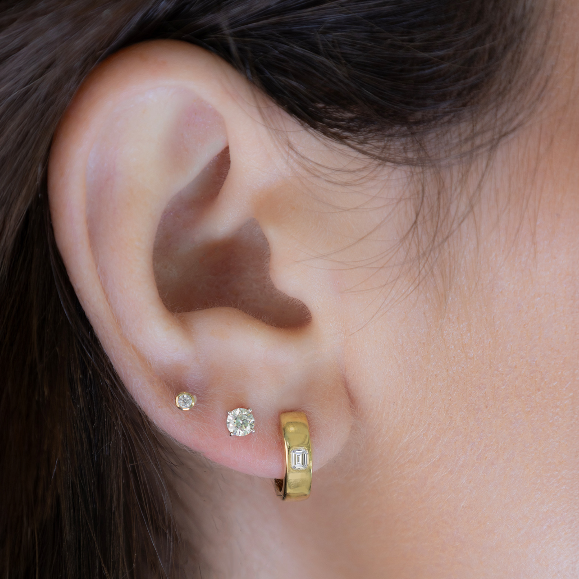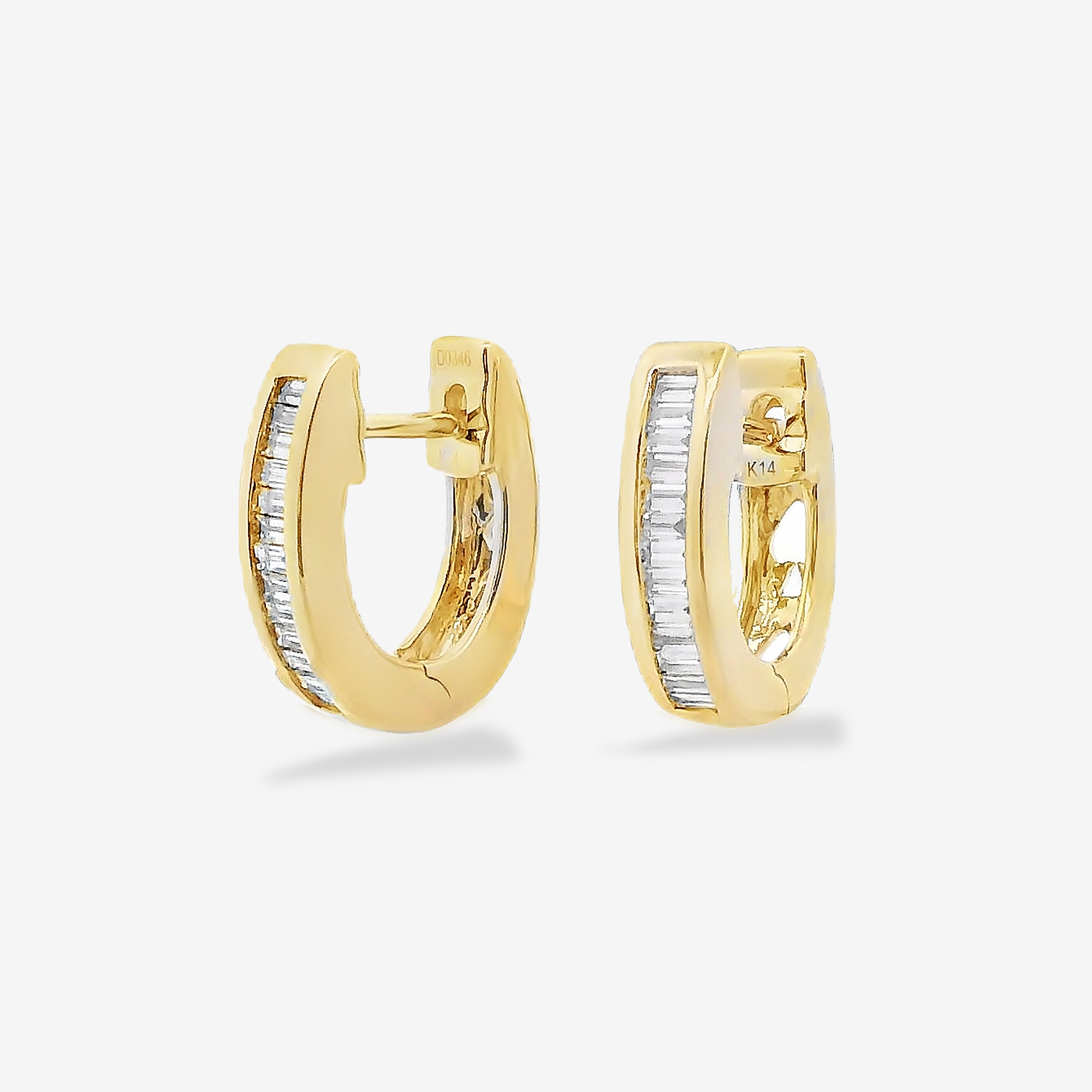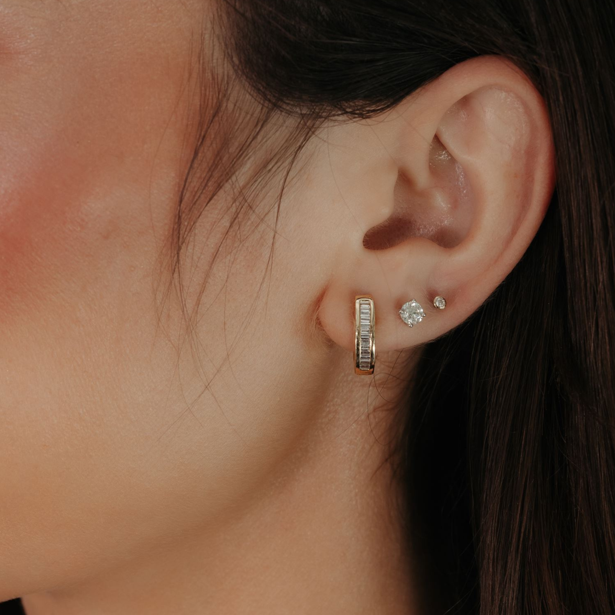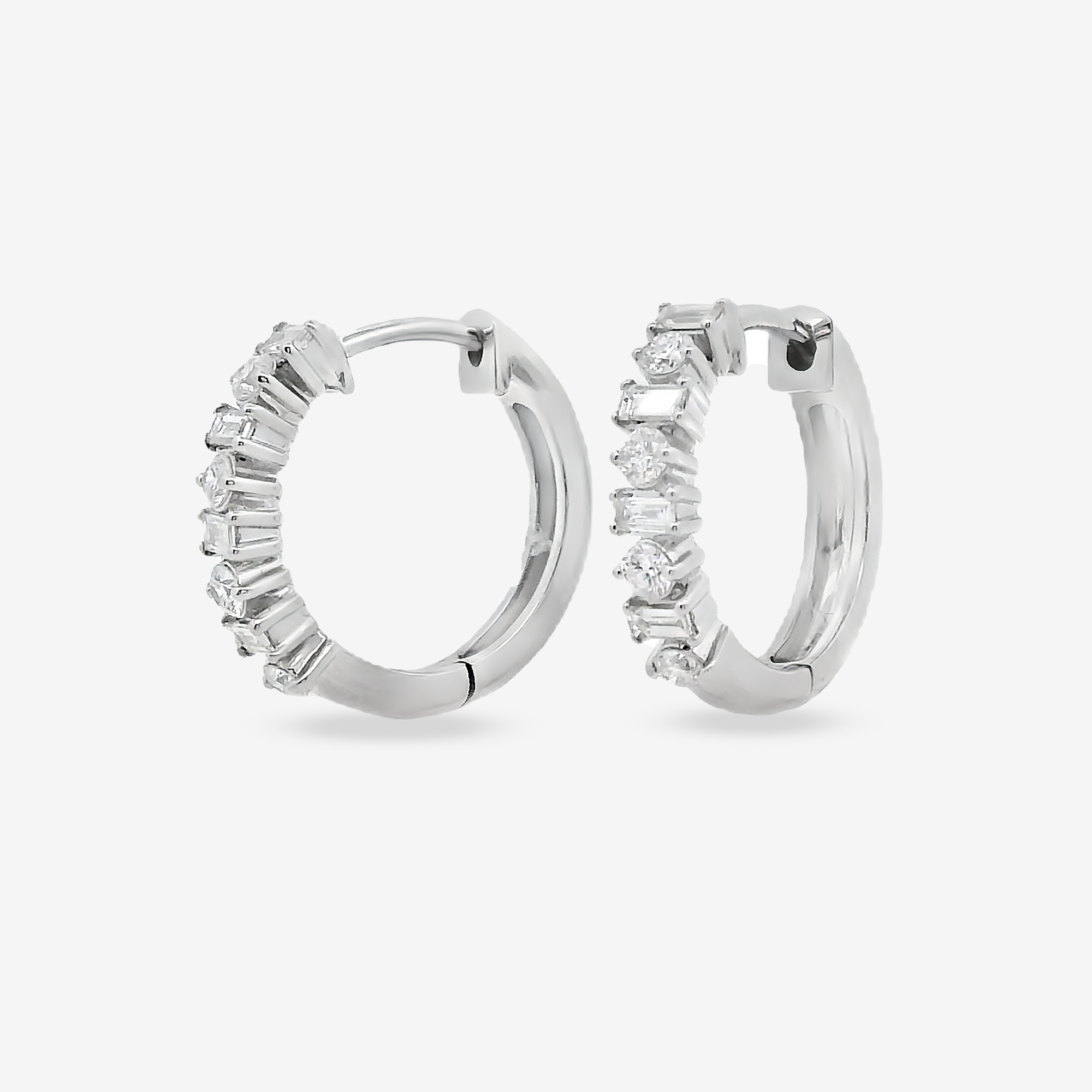 Round & Baguette 0.45CT Diamond Huggie Earrings