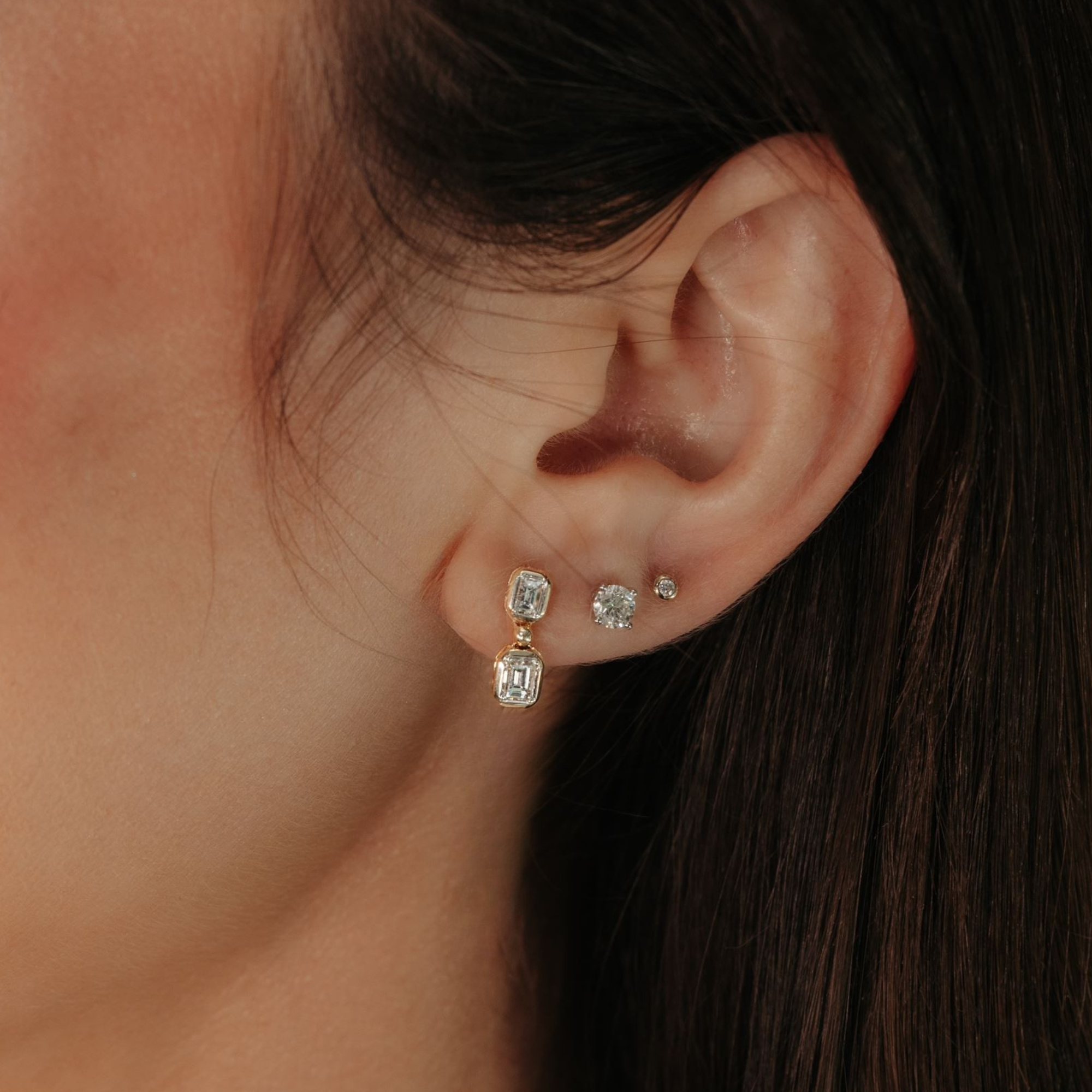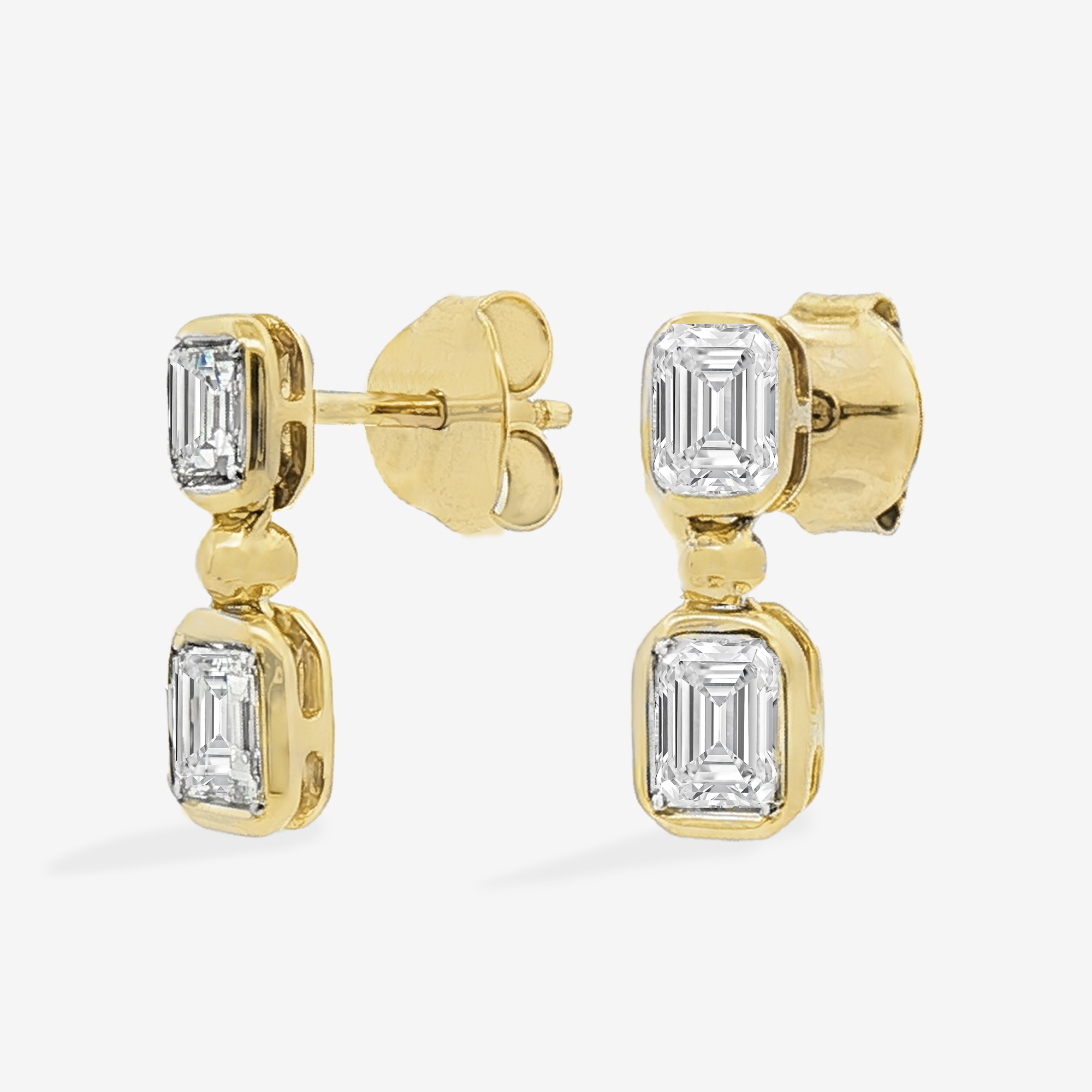 Emerald Cut Bezel Set Dangle Diamond Earrings