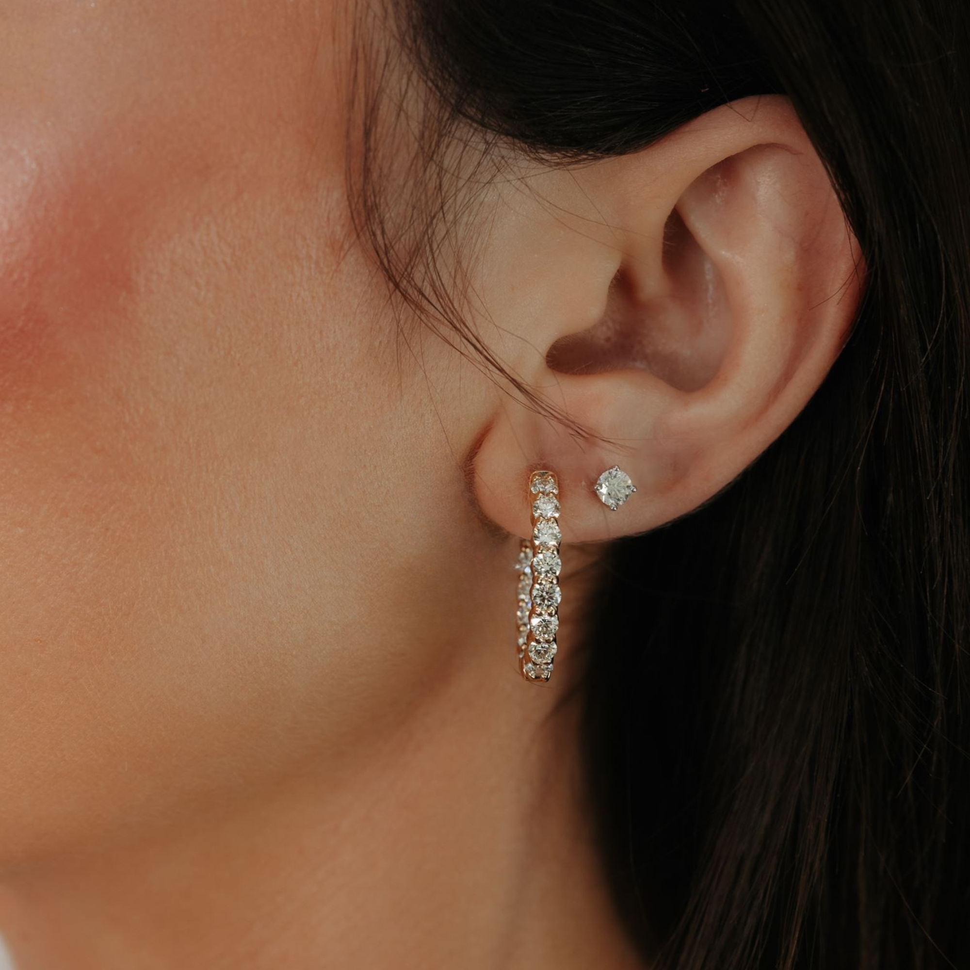 Shared Prong 1.50CT Diamond Huggie Earrings