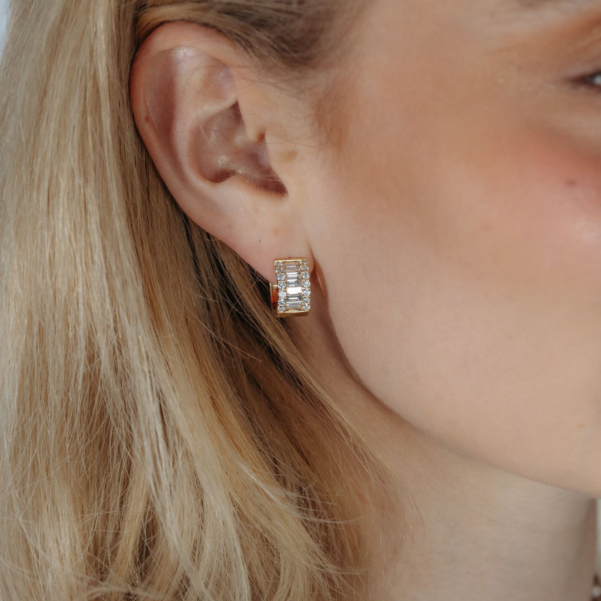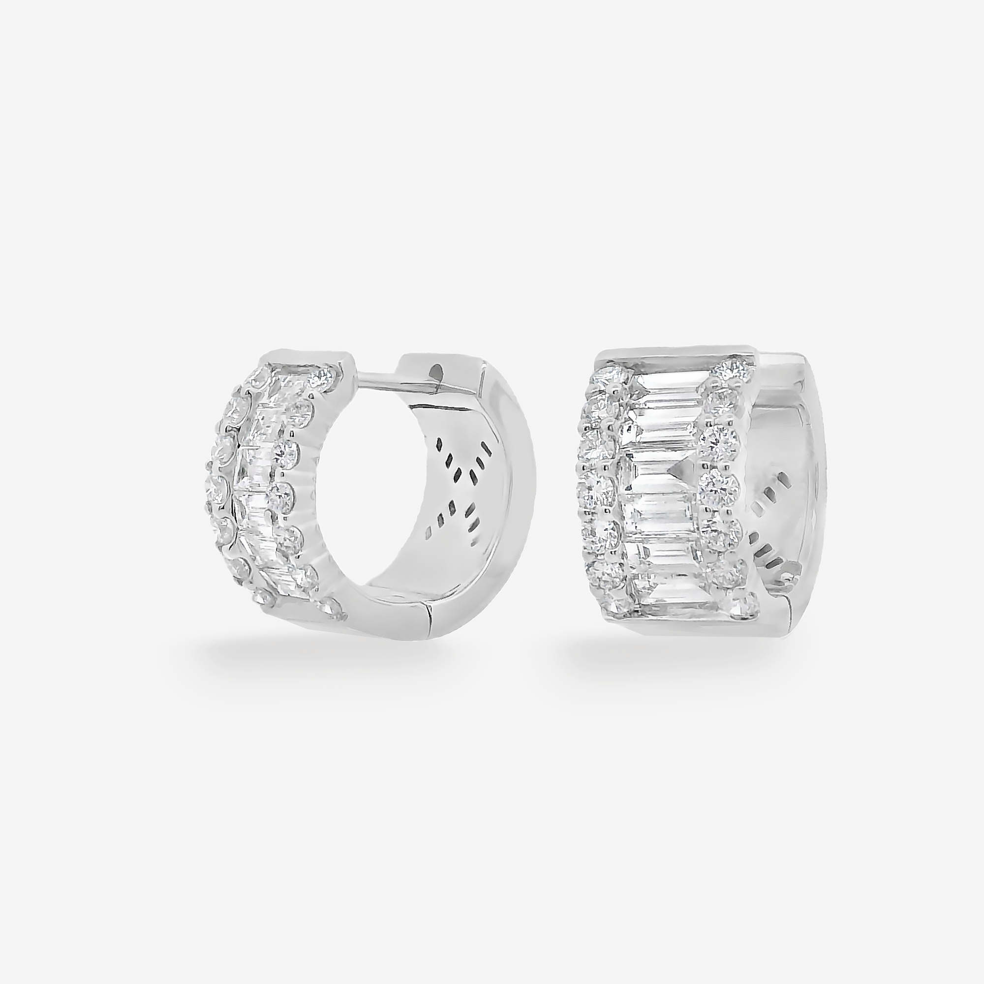0.70CT Baguette & Round Diamond Huggie Earrings