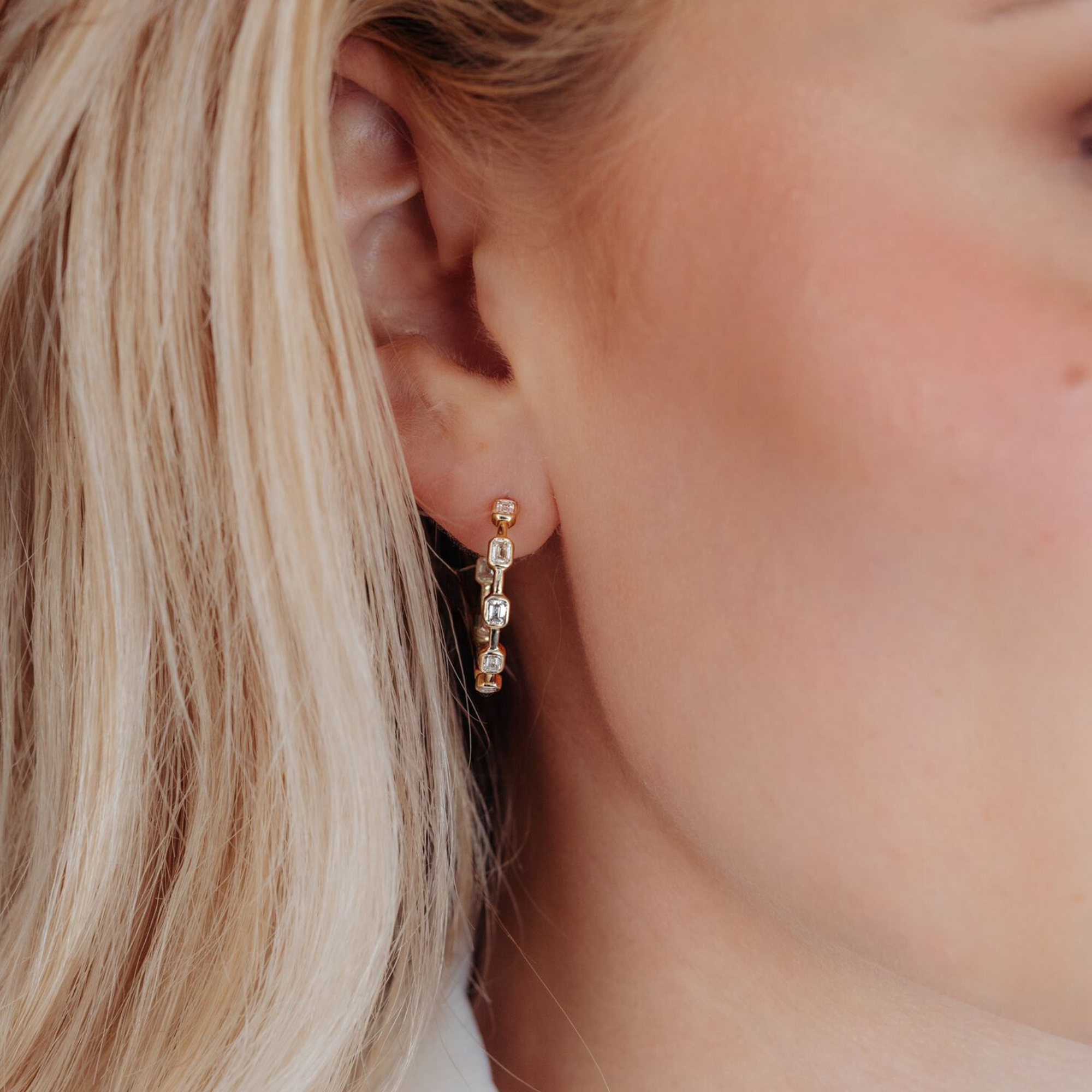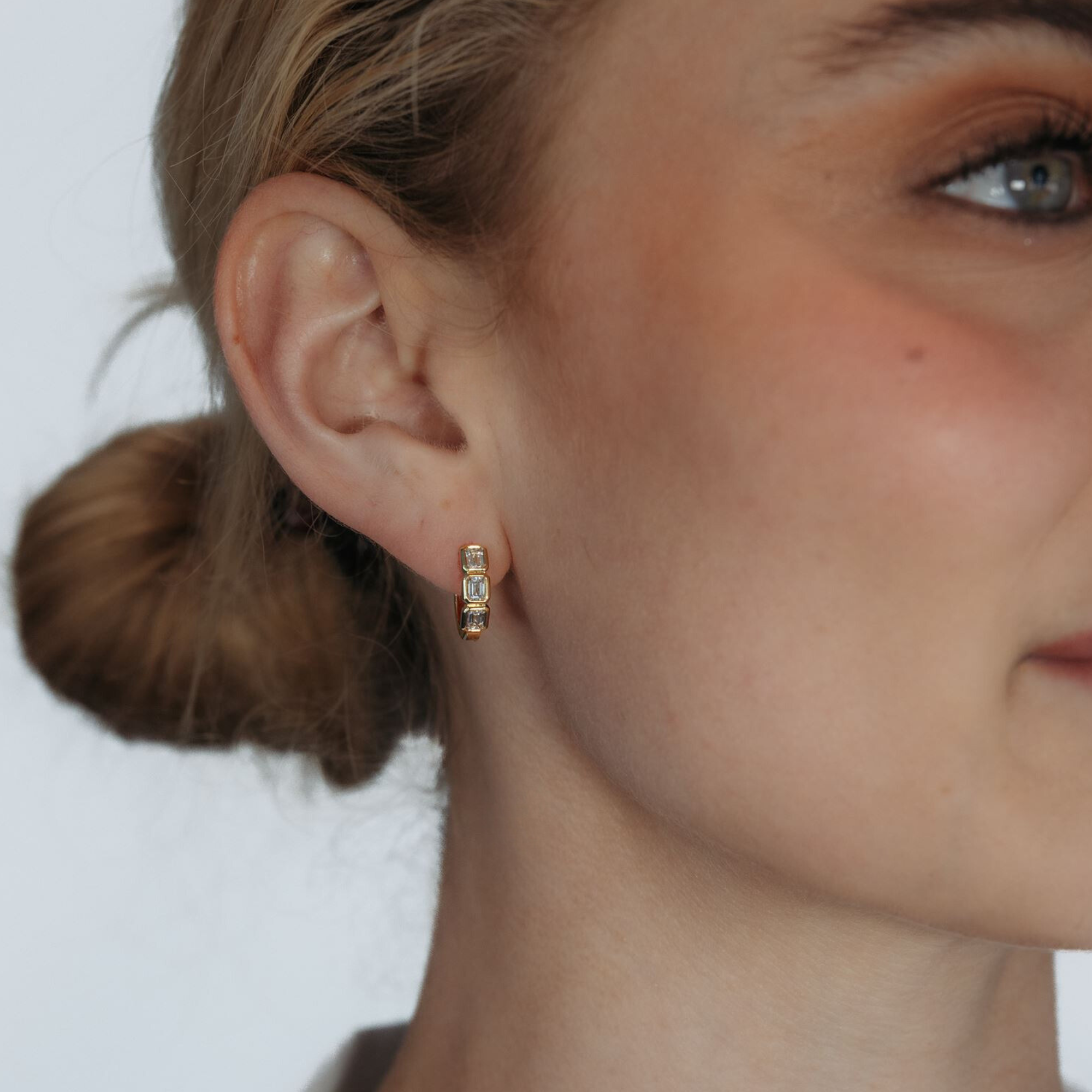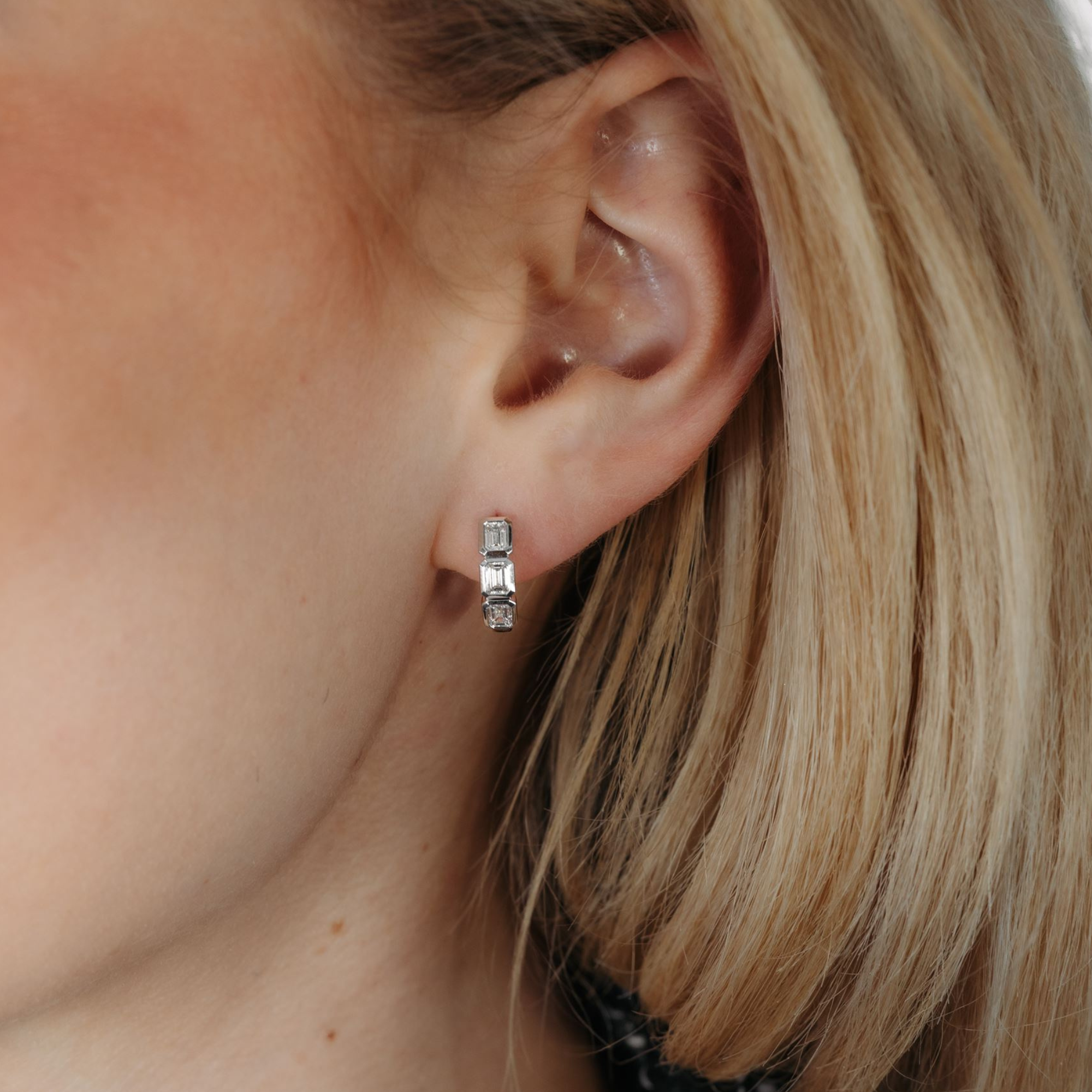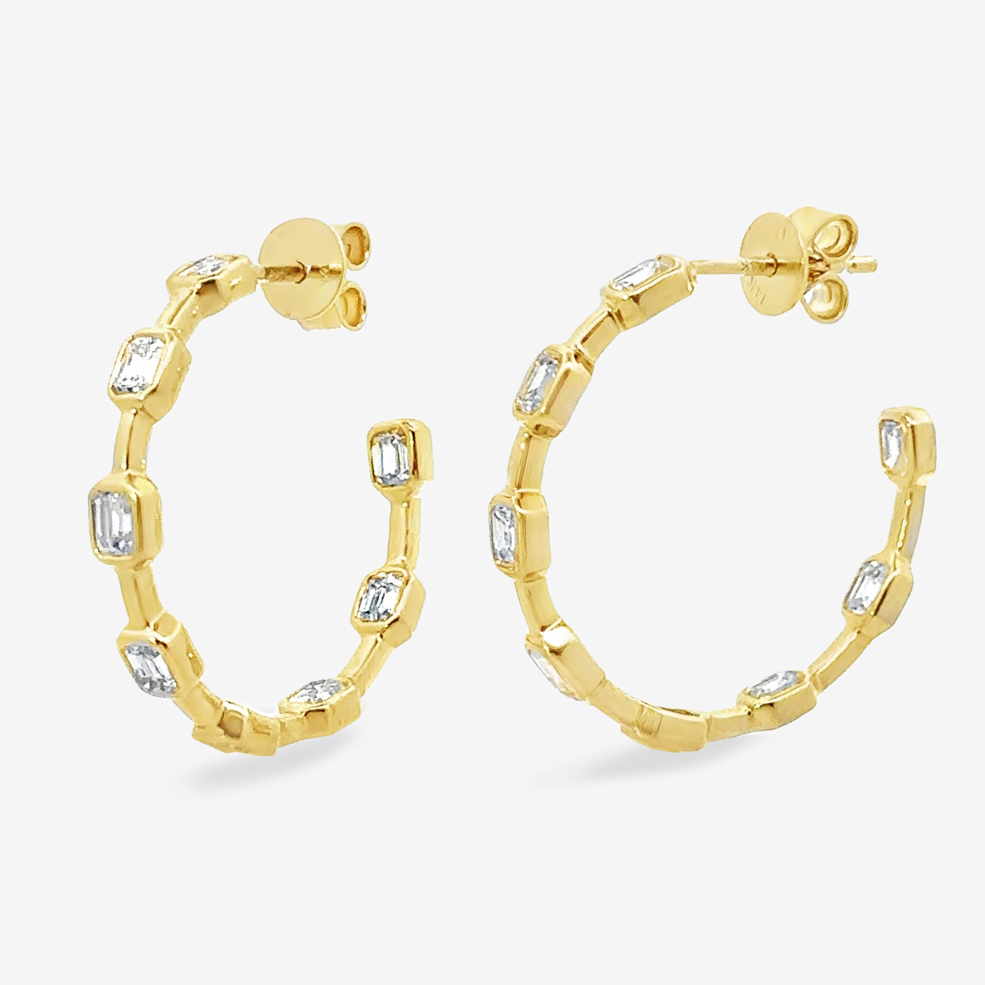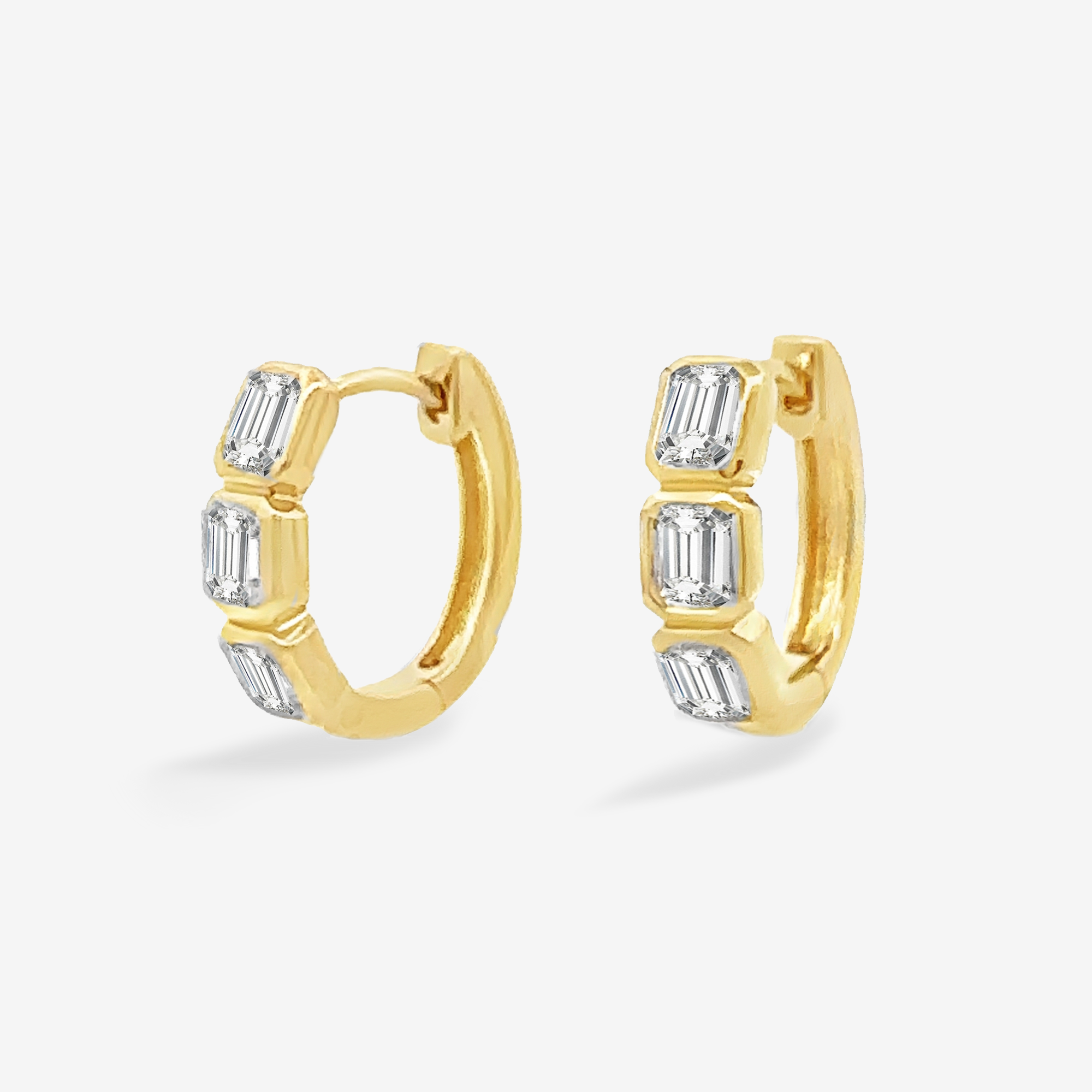 Bezel Set Emerald Cut & Round Huggie Earrings