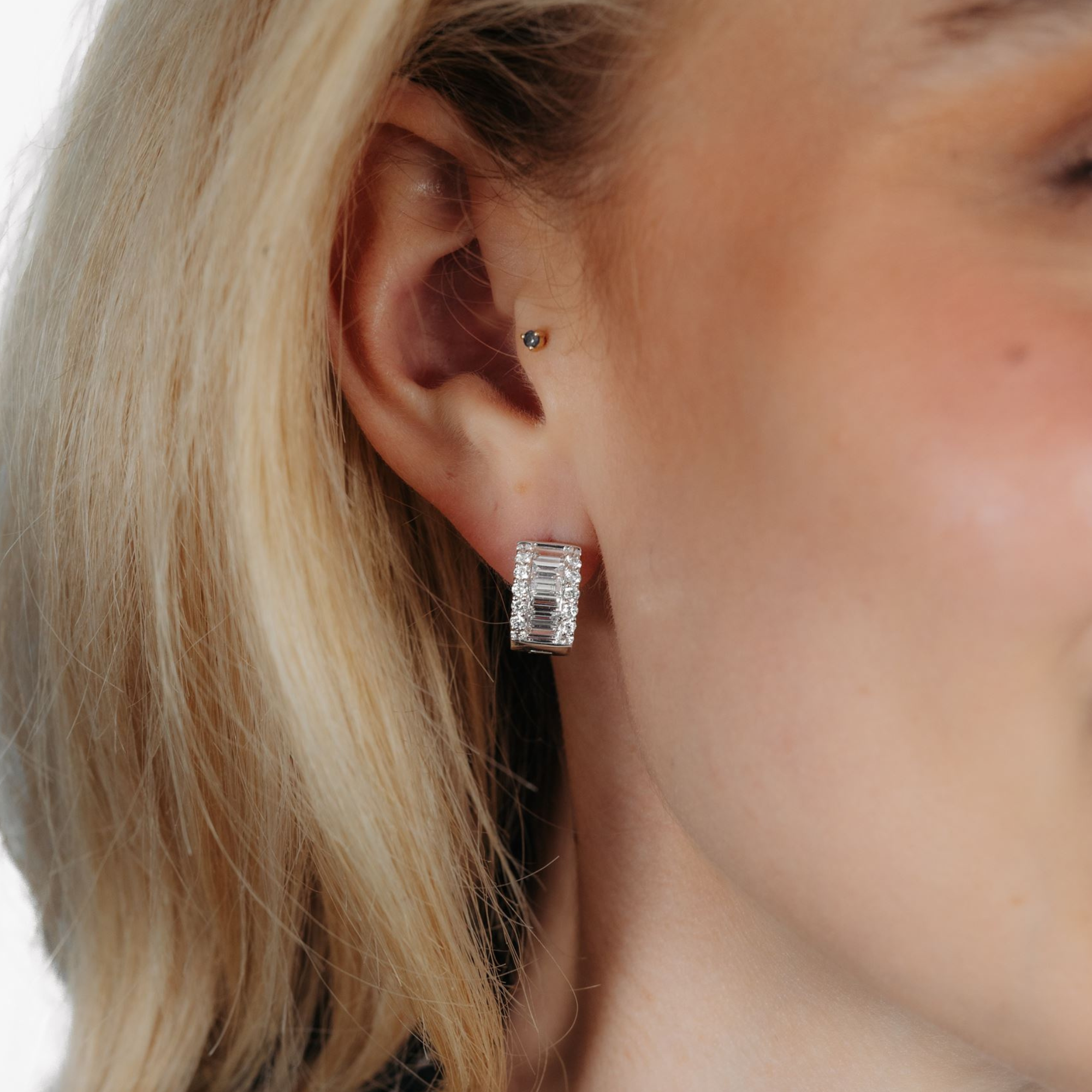 1.90CT Baguette & Round Diamond Huggie Earrings