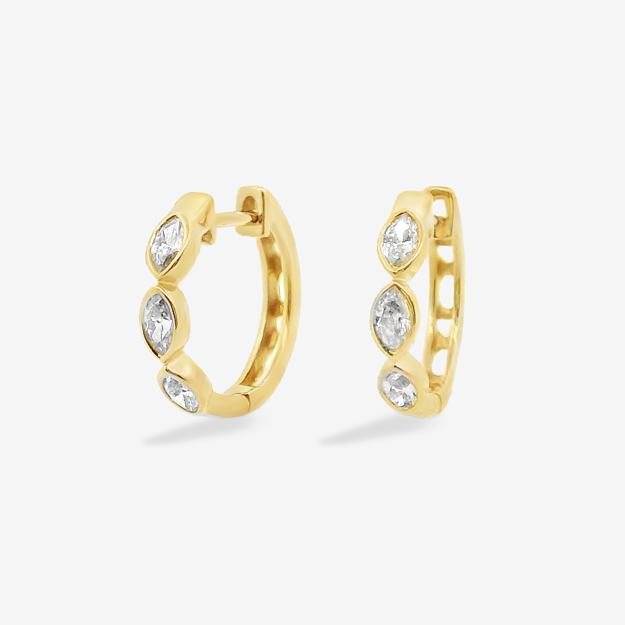 Marquise & Round Diamond Pinpoint Huggie Earrings