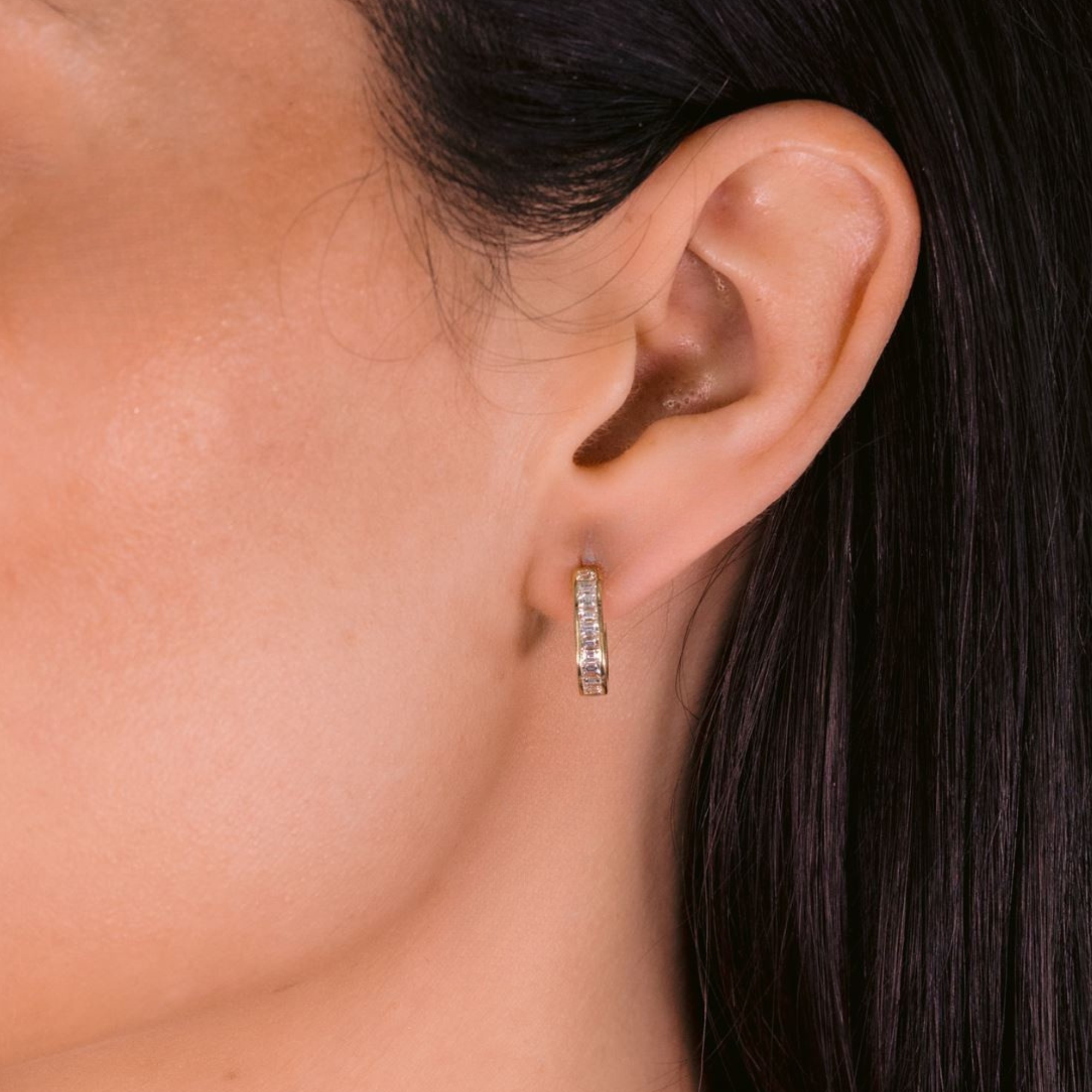 Channel Set Baguette Diamond U Hoop Huggie Earrings