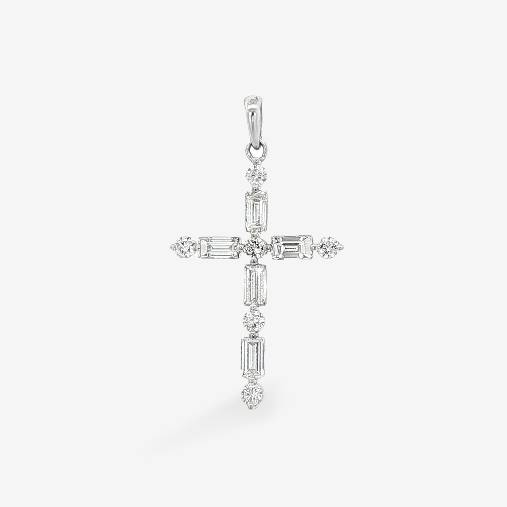 Delicate 0.85CT Baguette & Round Diamond Cross Pendant