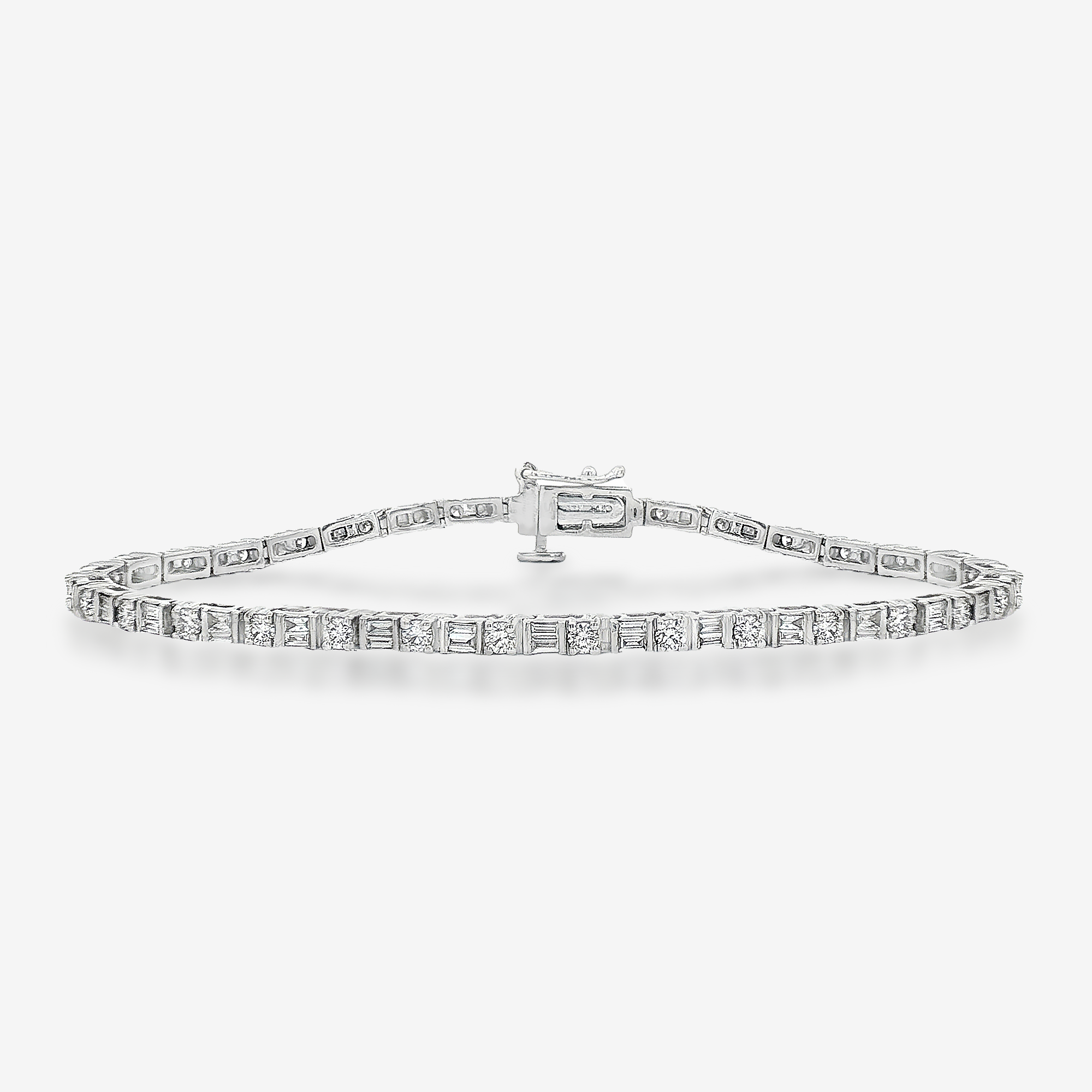 2.40CTW Baguette & Round Diamond Tennis Bracelet