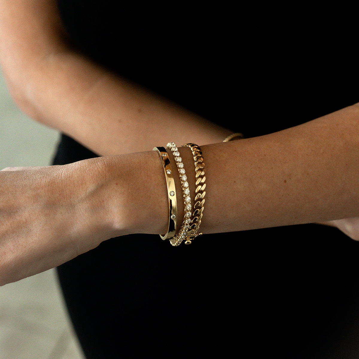 French Set Classic 1.55CT Halfway Diamond 3.4MM Bangle Bracelet