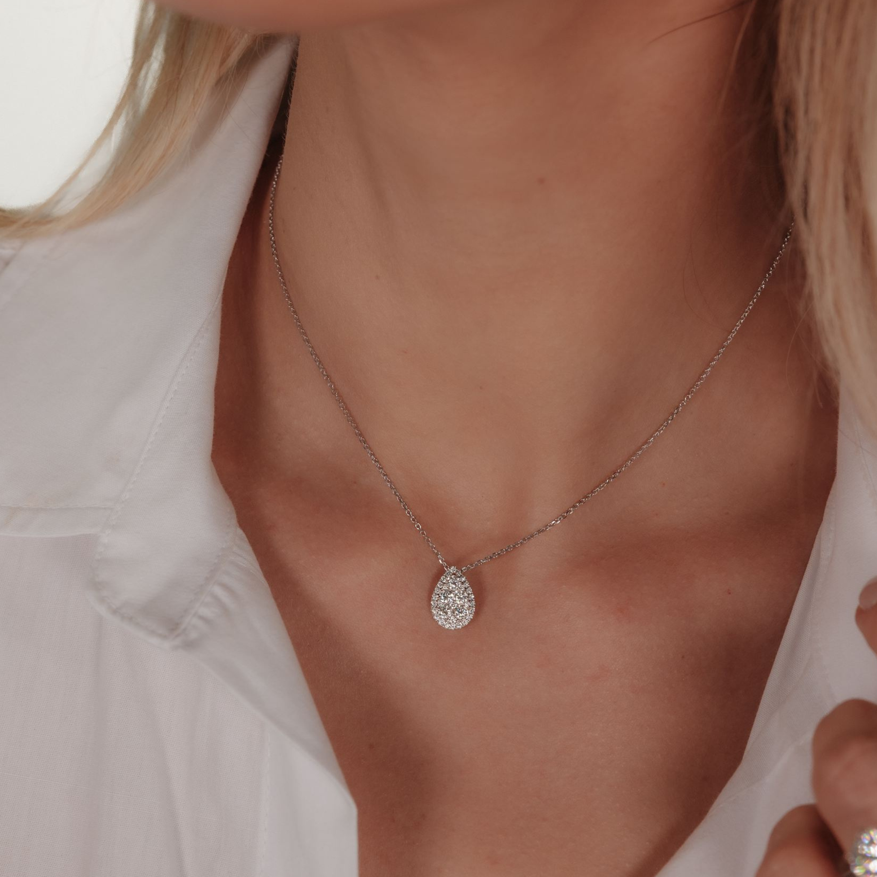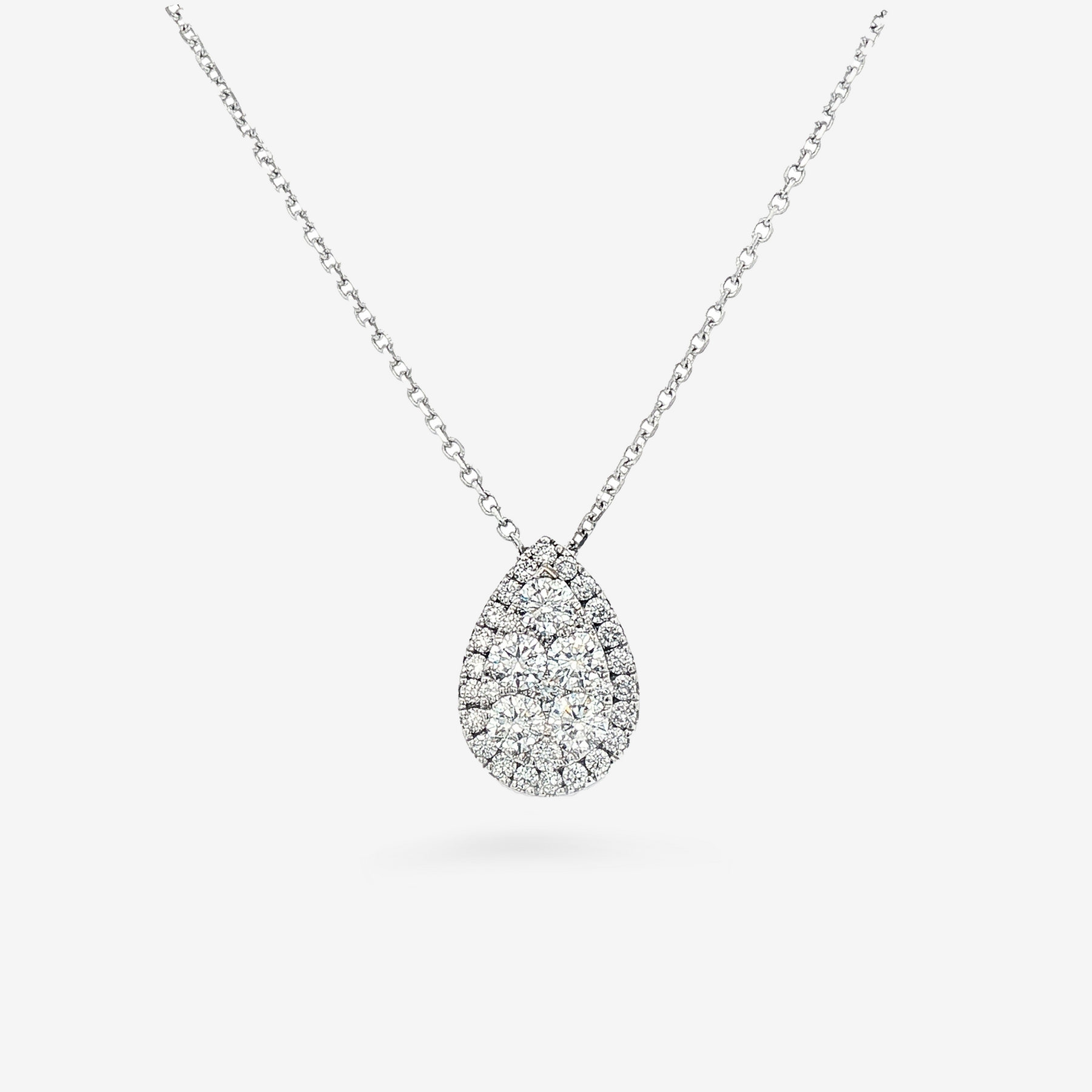 A gorgeous cluster of round diamonds forms the iconic pear silhouette at the center, while a brilliant diamond halo frames the entire design for extra pop. At 0.76 carats, this piece delivers a serious look without the serious price tag.